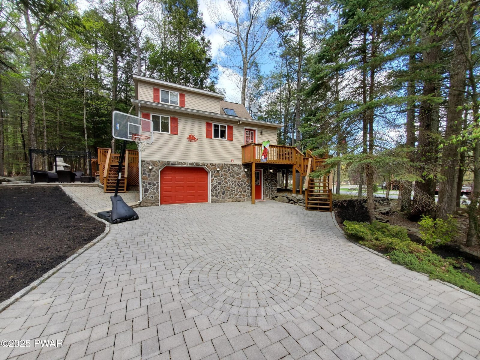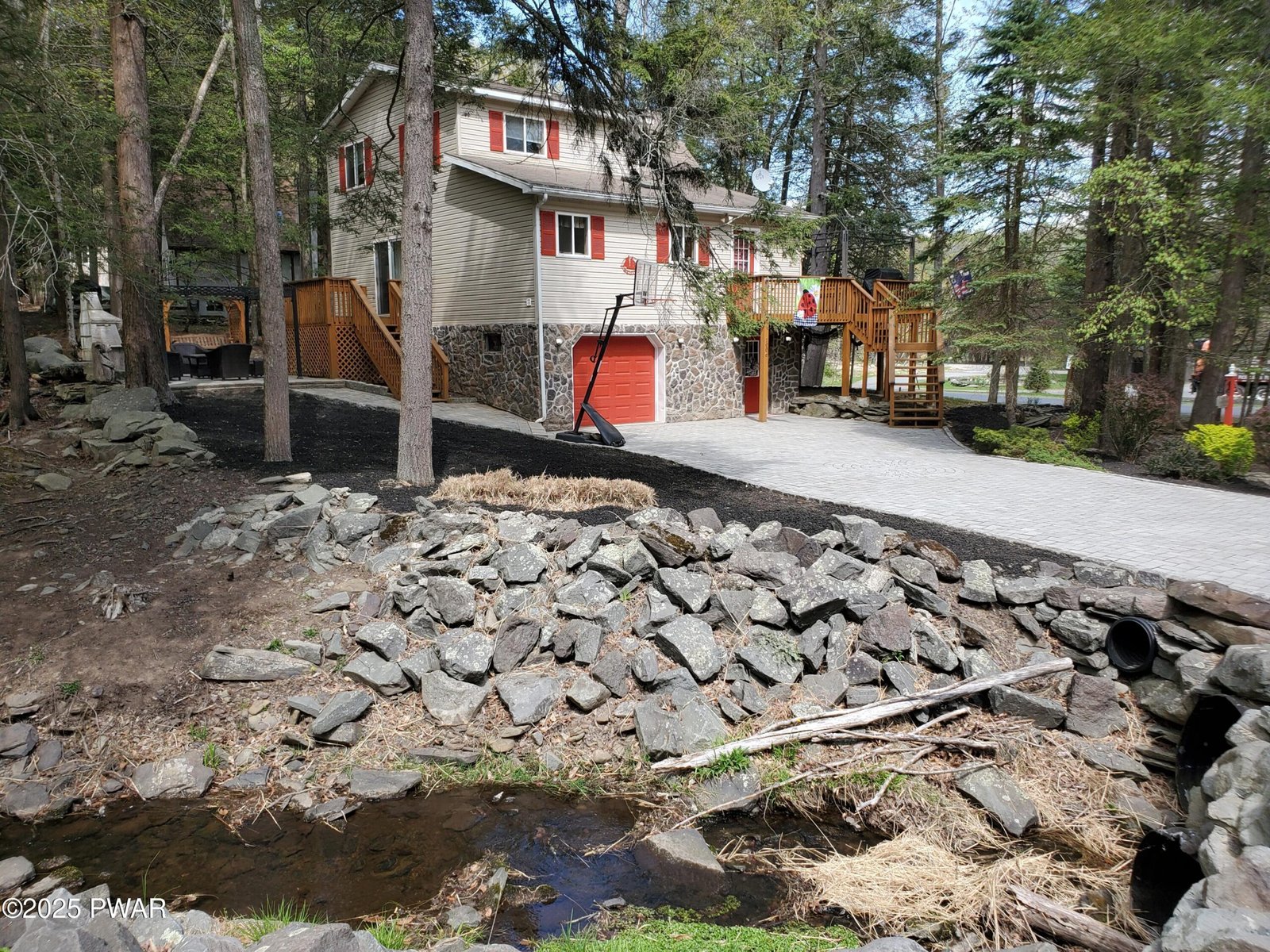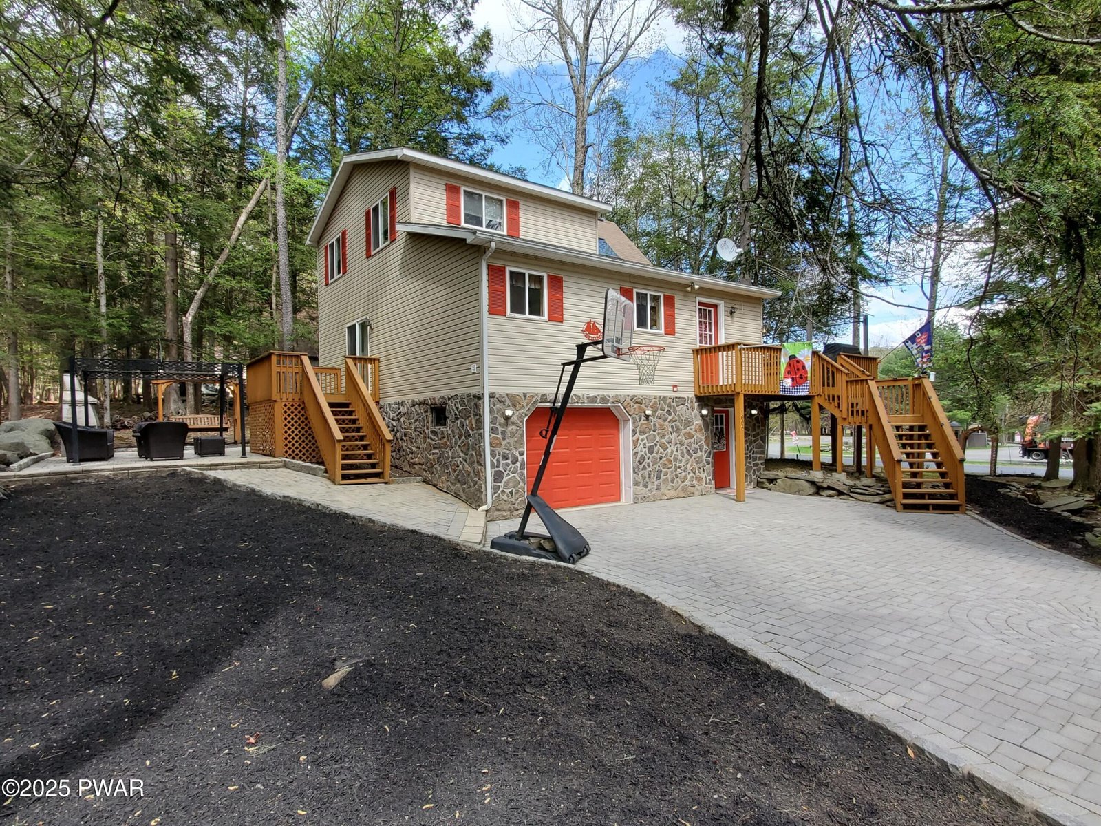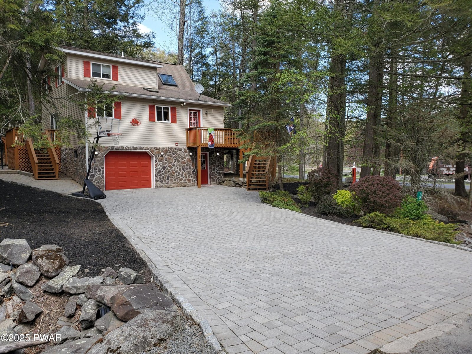 WHAT A HOME & LOCATION IN WALLENPAUPACK LAKE ESTATES! Gorgeous chalet nestled on a private corner 2nd tier lot overlooking Beaver Lake with the lake & beach just steps away and also backed by a beautiful babbling brook in the rear. Features 3 bedrooms and 3 full baths, family / game room, garage with tons of space for all the toys, loft, open floor plan w/ cathedral ceilings, stone FP and more. Upgrades include a paver stone driveway & patio overlooking the brook with a built in custom BBQ, stone faced foundation, spacious wrap around deck, hardwood floors, granite countertops plus the home interior was recently painted so all you need to do is move in and enjoy. Almost new furnishings and golf carts are NOT included, but are available to purchase seperately. Book your appointment today and you can have your own ''Lake'' home in a premier year round community with indoor / outdoor pools, beach, clubhouse, sports courts and lake rights and access to Lake Wallenpaupack!