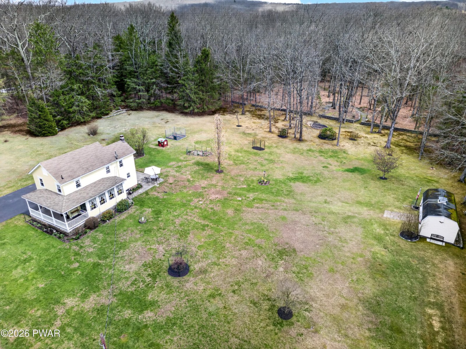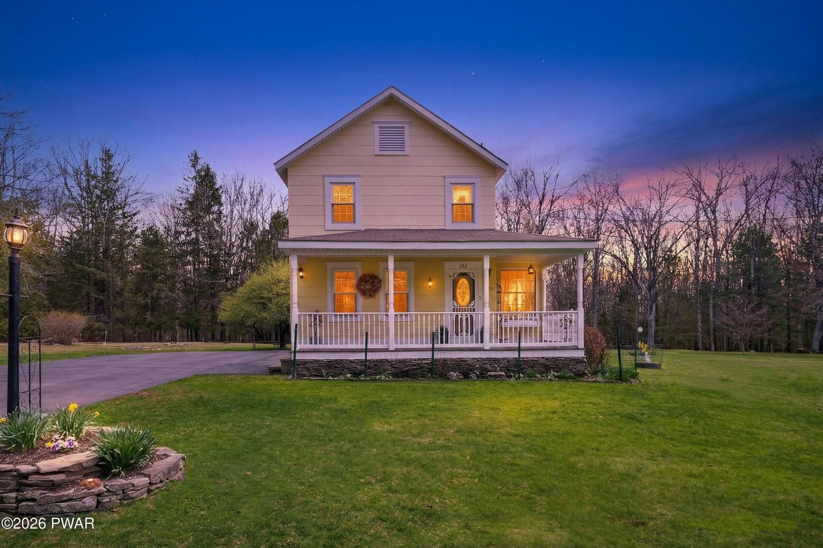 This three-bedroom farmhouse has earned its character over lifetimes of love. It is a property where original charm and thoughtful updates exist side by side. Set on 3.5 acres of mature trees, the open lawn, and stone-walled grounds feel like they've always been here.A paved driveway leads you to the covered front porch, and once you step inside, the interior strikes a balance that is harder to find than it sounds: quaint enough to feel like home, updated enough to live without compromise. The main level flows seamlessly from a welcoming foyer into a bright, renovated kitchen and dining room, a comfortable living room, and a sunroom that pulls the outside in, regardless of the season. The quality of light here is something you notice and appreciate.Upstairs, three bedrooms and a full bathroom offer a sensible, livable layout. Downstairs, the basement delivers real utility: a dedicated laundry area and a workshop space that will matter to anyone who builds, repairs, or simply needs room to work.Outside, the acreage unfolds in layers: grassy yard, rock walls, woods at the edges. A large storage shed handles the overflow. There are no HOA dues, no restrictions, no committee approvals; Just land, privacy, and the freedom to use it as you see fit. You're less than a five-minute drive from downtown Hawley, and only 10 minutes from Lake Wallenpaupack, but you still feel the secluded countryside feel that's so coveted about this area!