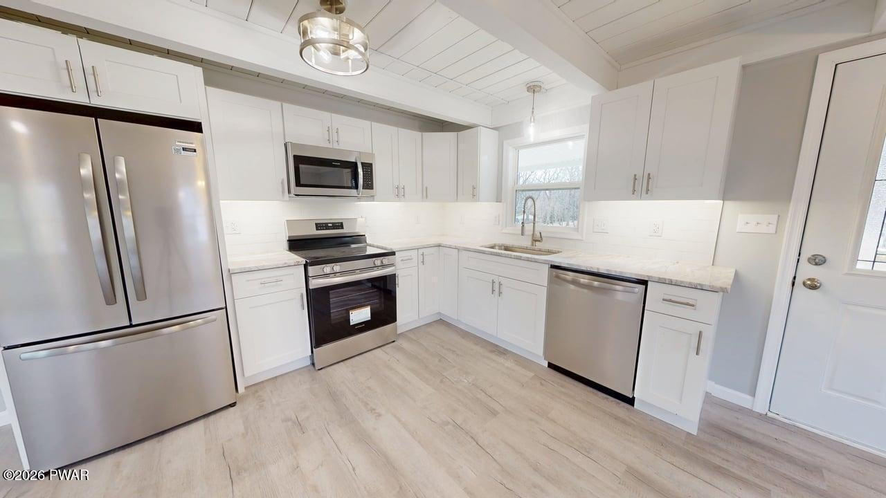 This contemporary home has been completely reimagined from top to bottom--no shortcuts, no deferred items. Major improvements include NEW siding, NEW windows, NEW roof, NEW decks (including a covered rear deck), and a BRAND-NEW septic tank.Inside, the home offers NEW flooring throughout and a fully redesigned kitchen featuring new appliances, new countertops, and under-cabinet lighting. Both bathrooms have been completely updated with new tile and modern finishes.The layout includes 3 bedrooms, 2 full bathrooms, and a full basement, providing flexibility for storage or future living space. This is a true turn-key property, with all major systems already completed for long-term peace of mind. OWNER IS A LICENSED REAL ESTATE BROKER