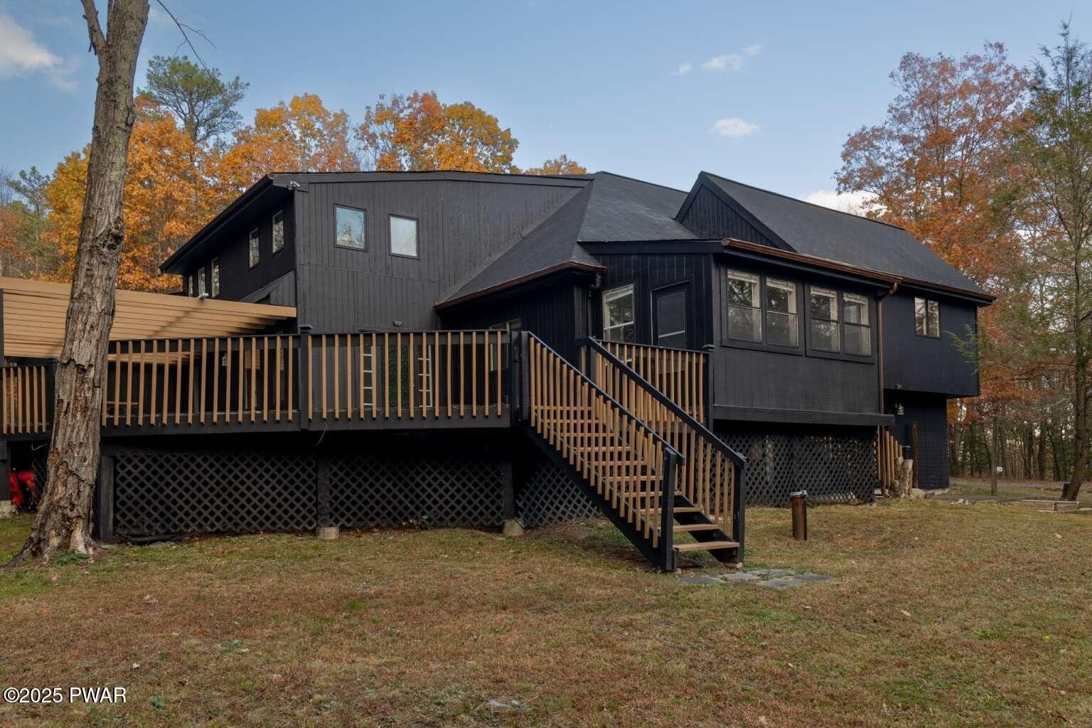 Modern 5‑bed, 3.5‑bath contemporary home on 1.57 serene acres in Dingmans Ferry. Over 5,500 sq ft with vaulted living room, loft and wood‑burning chimney. Family room with Bullerjan stove, bright sunroom and updated kitchen with modern finishes. Enjoy an approximate 1,000sq ft deck overlooking a wooded yard. Primary suite features walk‑in closet and en-suite bathroom with jet tub. Full basement includes bar, pool table and recreational space. Three‑car garage, central air and heat, generator and ample attic storage. Peaceful cul‑de‑sac, minutes from Delaware Water Gap, lakes, hiking trails and State parks with easy access to New Jersey and New York. A rare opportunity to own a statement home that blends, comfort, scale and privacy, designed for inspired living inside and out.