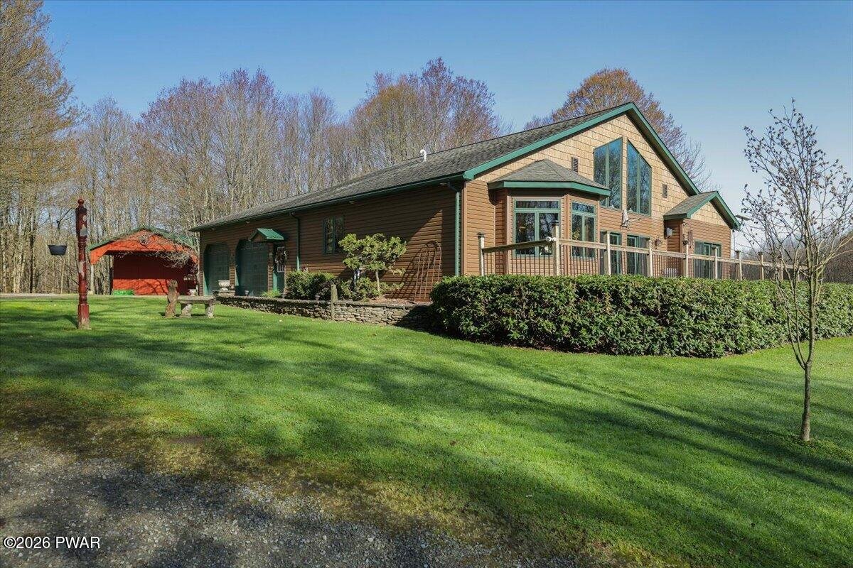 Tucked away in a serene, private setting, this stunning Country Modern Contemporary home offers the perfect blend of style, comfort, and outdoor living on 7.2 beautifully landscaped acres. Meticulously maintained, the home features 3 spacious bedrooms and 3 baths, highlighted by a striking stone fireplace that anchors the warm, inviting living space. The kitchen is a true showpiece with elegant blue stone countertops and thoughtful design throughout.Step outside and experience your own personal retreat. Entertain with ease on the canopy-covered patio complete with an outdoor kitchen, all set against the peaceful backdrop of a tranquil waterfall feature. A separate cabin with a bar creates the perfect space for guests or weekend gatherings.The property continues to impress with a large unfinished basement offering endless potential, a 1,400 sq ft pole barn, chicken house, wood shed, and a large garden for those seeking a self-sustaining lifestyle.Whether you're looking for a full-time residence, weekend escape, or private retreat, this exceptional property delivers space, beauty, and versatility in every direction.