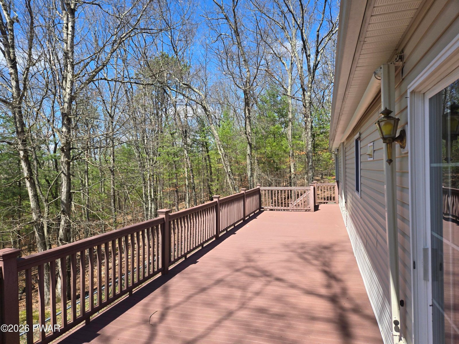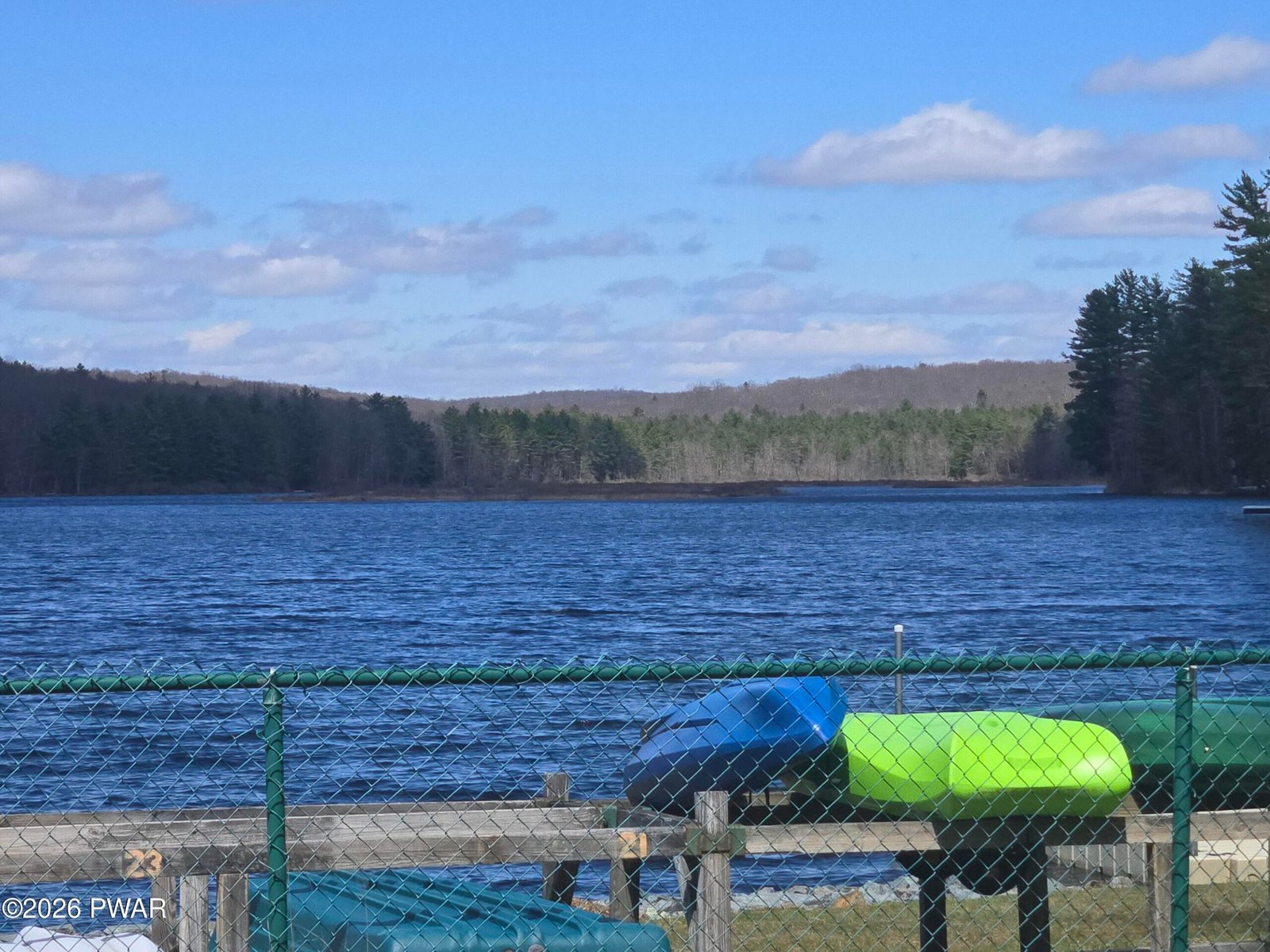 WELL MAINTAINED RANCH IN QUIET COMMUNITY...Spacious 3 Bedroom, 2 1/2 bath home. Large open main living area, kitchen with Breakfast bar and eat in area by French doors to 400 sq. ft. private deck. Sun awing, fenced in lower patio area for pets and family play area. Walk out lower area of home offers room for expansion. Easy golf cart ride to 80-acre lake for fishing and boating. Clubhouse, picnic area, inground pool and playground. Low dues. Minutes to Honesdale, Hawley and Lake Wallenpaupack.