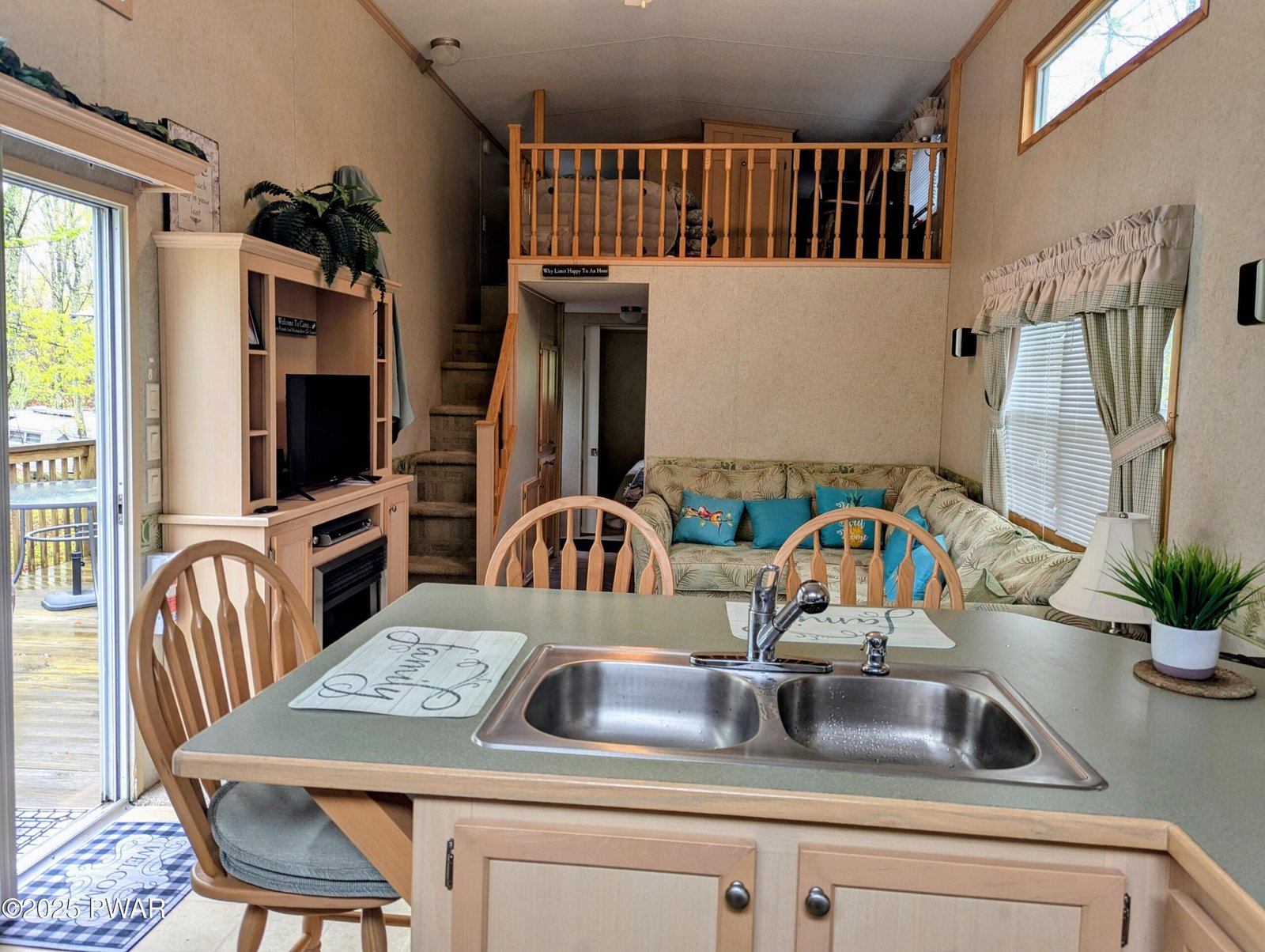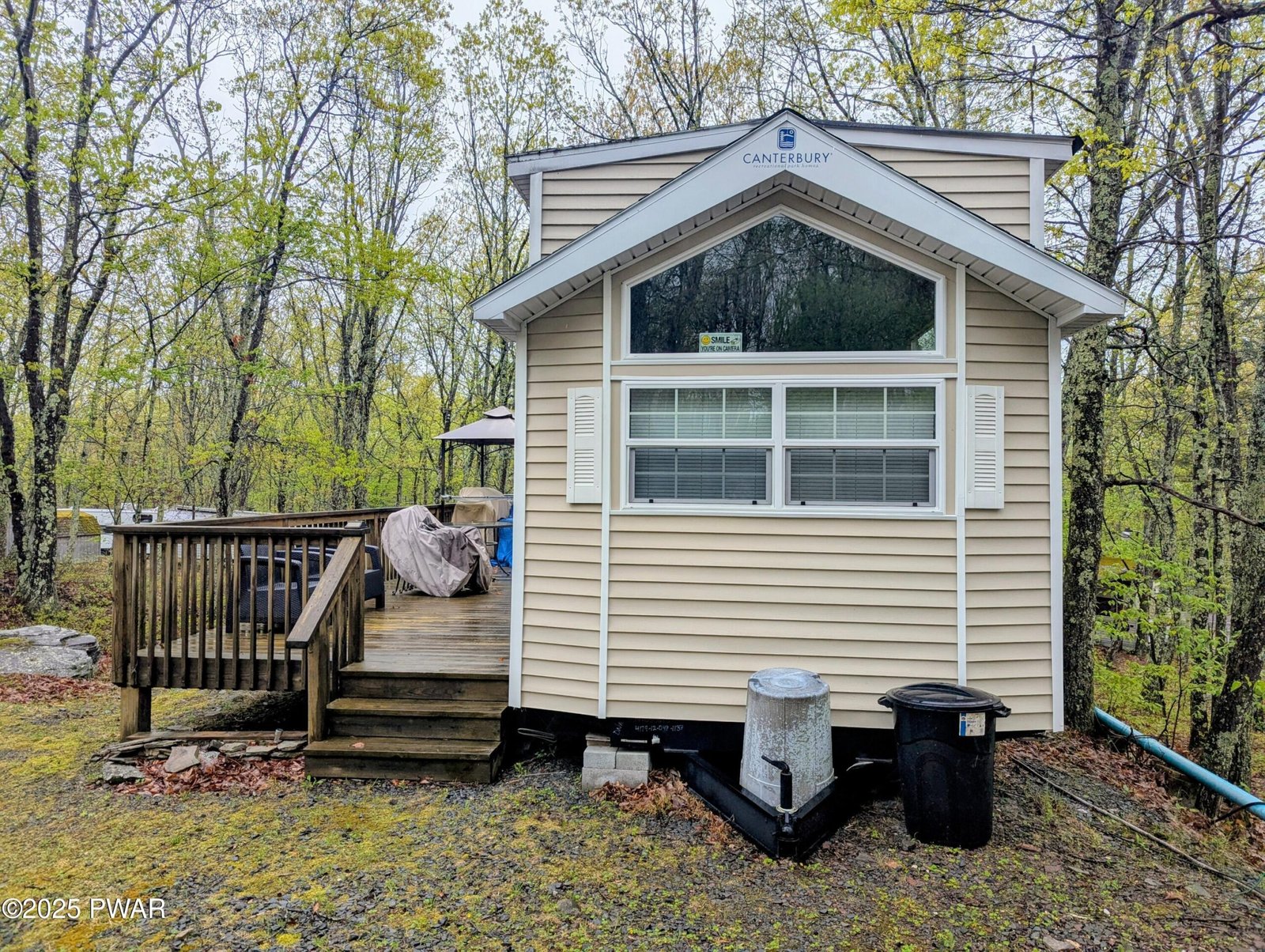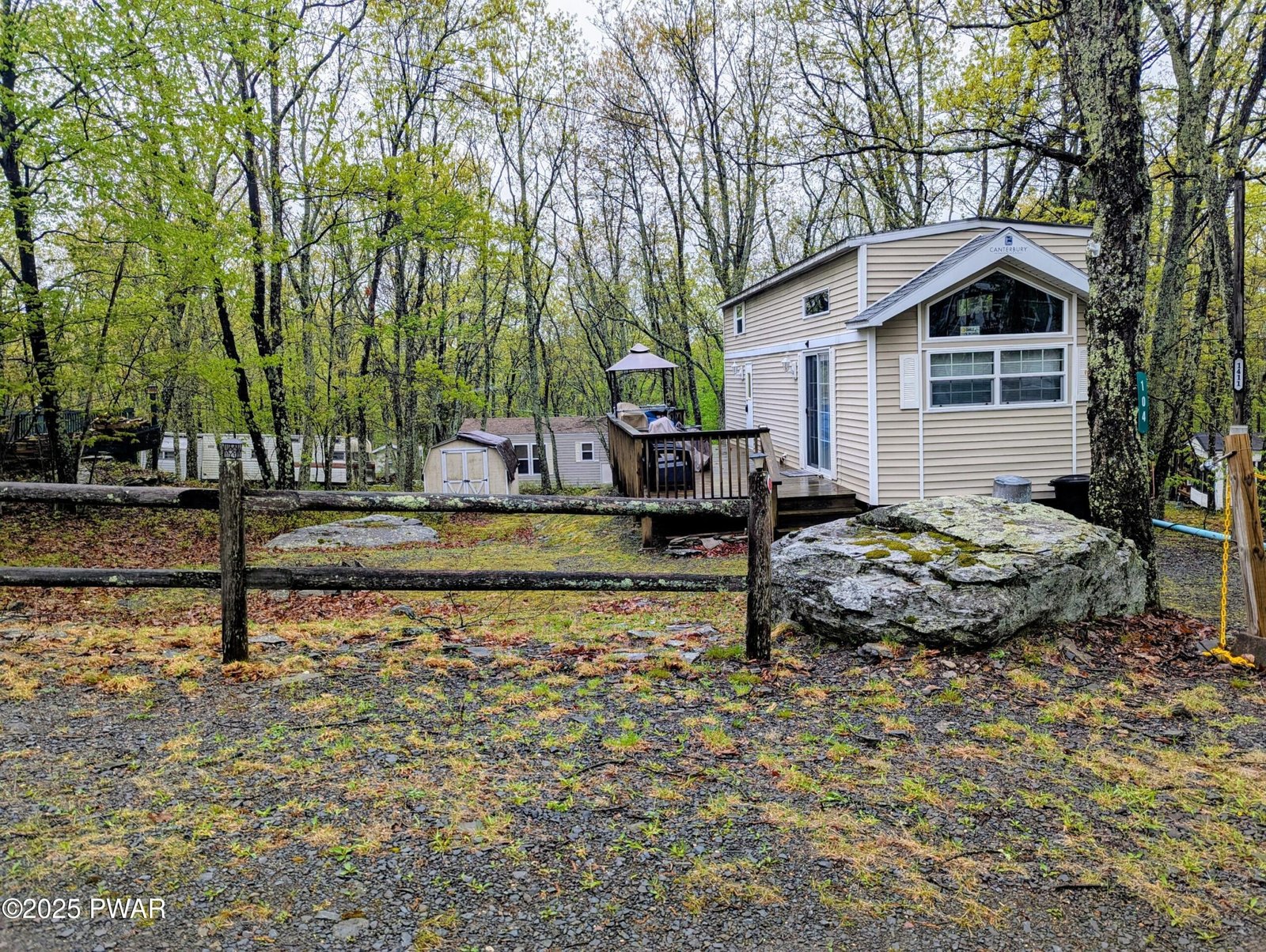 Welcome to this 2008 beautiful park model with full sized deck in Trails End! Light and airy with huge windows, allowing a great amount of natural light in your home away from home. Featuring high ceilings, a double loft, and a very different layout for the kitchen/living room. Outside deck includes the grill and furniture, allowing you to enjoy the great outdoors! Property has a fire pit, graveled driveway and shed.