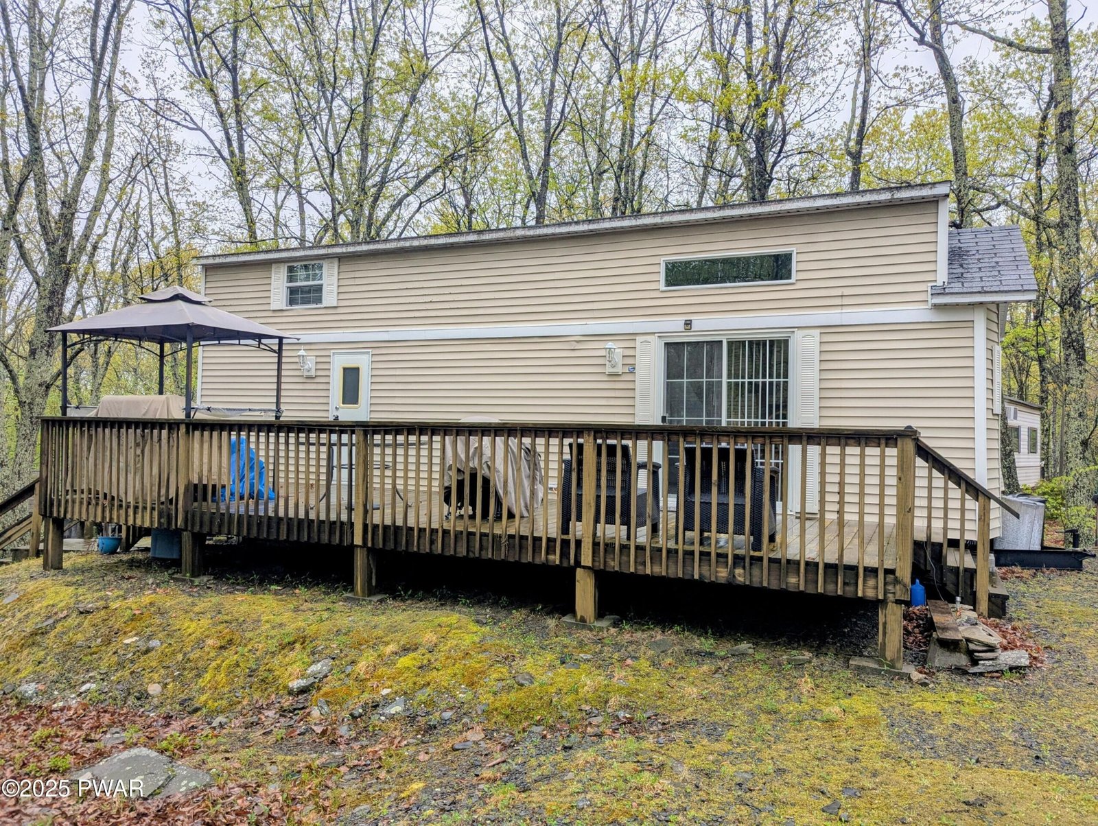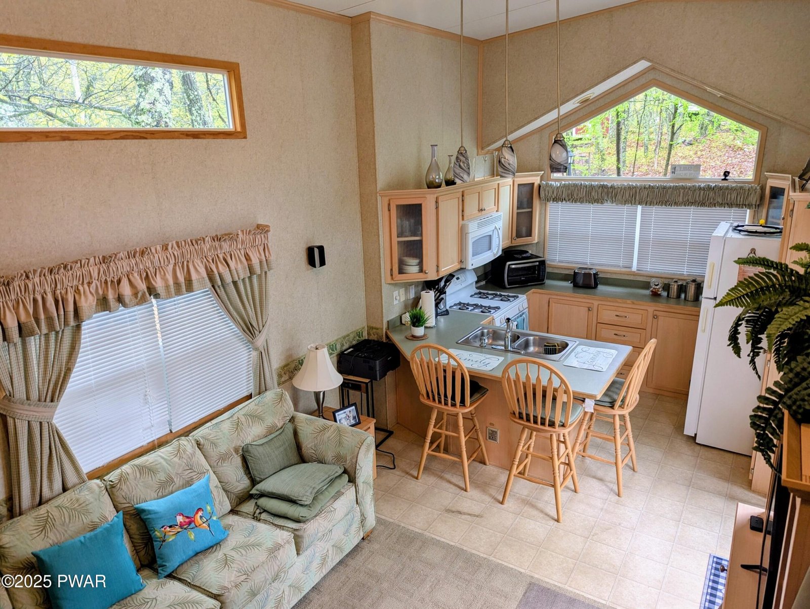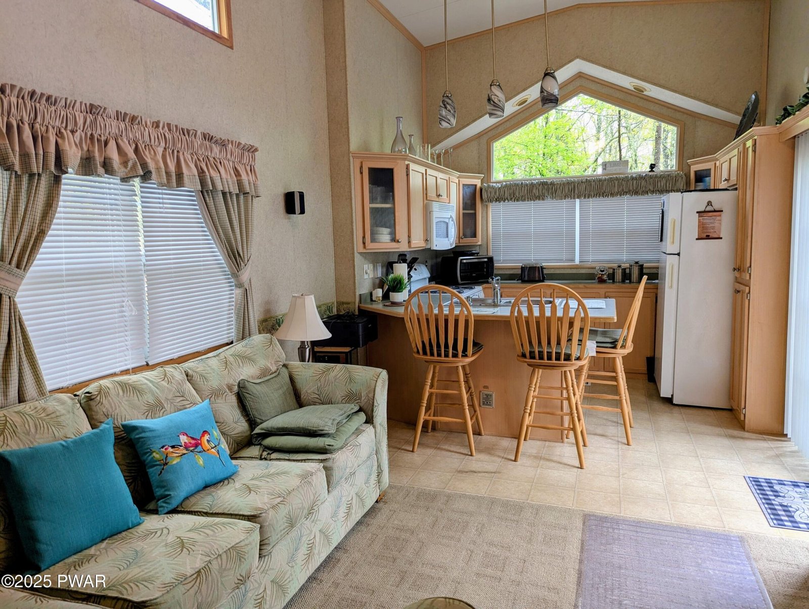 Welcome to this 2008 beautiful park model with full sized deck in Trails End! Light and airy with huge windows, allowing a great amount of natural light in your home away from home. Featuring high ceilings, a double loft, and a very different layout for the kitchen/living room. Outside deck includes the grill and furniture, allowing you to enjoy the great outdoors! Property has a fire pit, graveled driveway and shed.