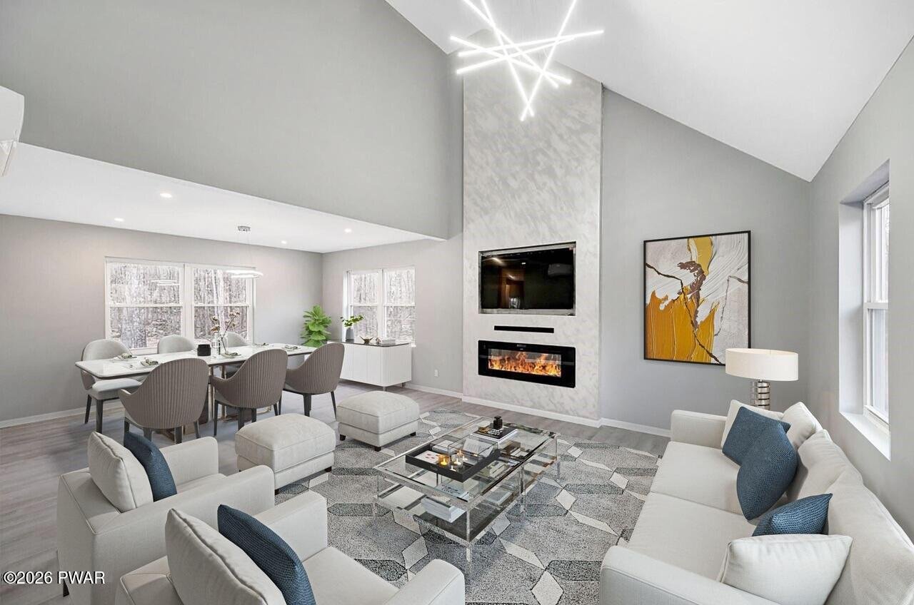 Brand-New Modern Smart Home in Prestigious Hemlock Farms - A Rare Opportunity! Discover an exceptional opportunity to own a custom-built, energy efficient modern home on a prime corner lot in the highly sought-after Hemlock Farms community. This stunning new construction blends timeless elegance with cutting-edge smart home technology, offering both luxury and convenience. Unparalleled Design & Modern Comfort This spacious 4-bedroom, 3 bathroom home with an additional den and 1,500 sq. ft. of attic space boasts an open concept contemporary style layout, perfect for effortless living and entertaining. High-end finishes and state-of-the-art features make this home truly one-of-a-kind. Key Features & Highlights Grand Living Room: Soaring ceilings, a modern SMART fireplace, and a big screen TV create a warm and inviting space. Gourmet Kitchen: Italian-inspired design with granite countertops, stainless steel high-end appliances, pantry closet, and European style cabinetry. Formal Dining Area: with modern LED lights Luxurious Master Suite: Oversized with a private modern bath, walk-in closet, and spa-inspired finishes. Radiant Heated Floors Throughout: Paired with a high-efficiency HVAC system and Wi-Fienabled smart thermostats for ultimate comfort. Smart Home Integration: Voice-activated thermostats, lighting, door locks, and a garage door opener for seamless control. Advanced Security System: Includes a video doorbell, smart lock, outdoor CCTV cameras, and a burglar alarm system. Oversized Den: Easily convertible into a fifth bedroom or home office. Laundry Room: Equipped with premium LG/Samsung stainless steel appliances and a dedicated sink. Spacious Outdoor Living: Enjoy a large back deck, perfect for relaxing or entertaining. Heated 2-Car Garage: Oversized with a circular driveway for added convenience.