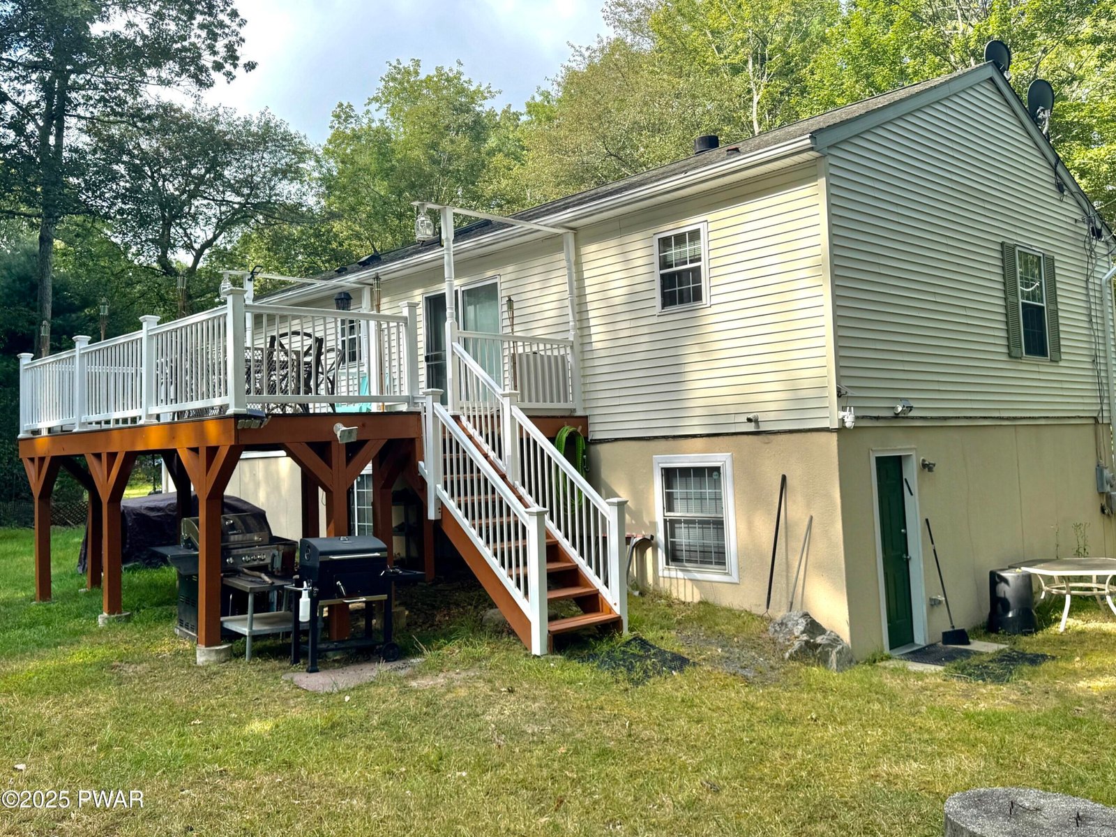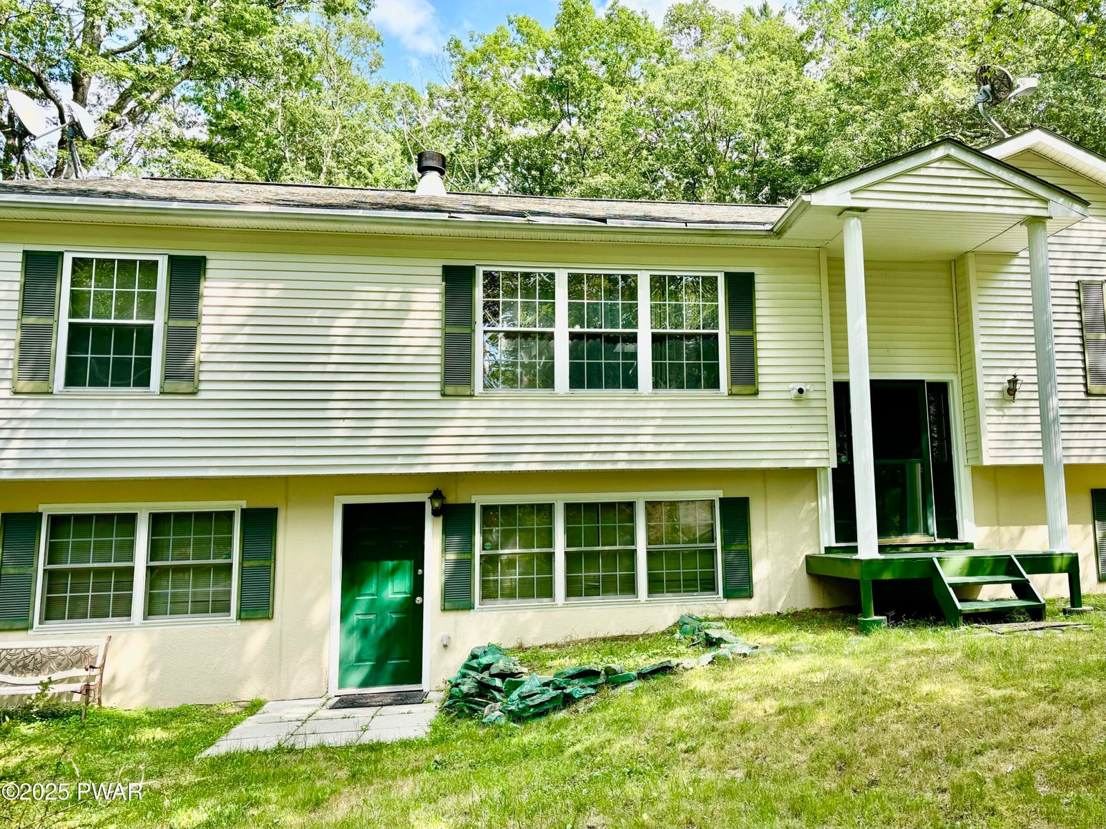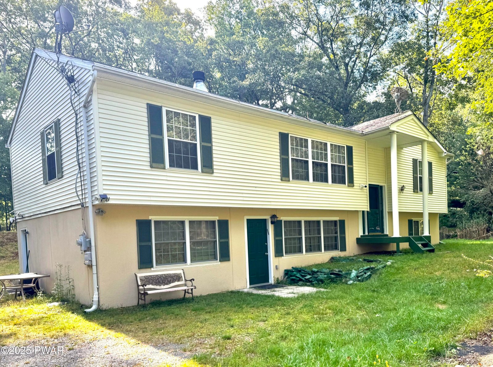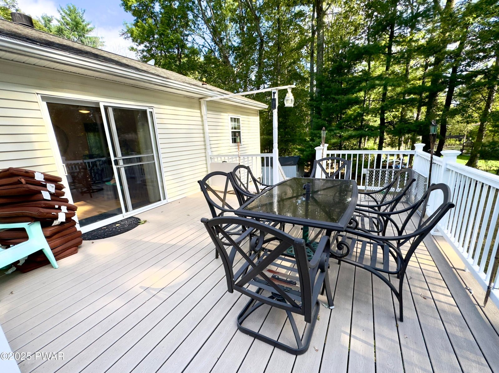 Welcome to this beautifully maintained, fully furnished home nestled on a double lot and surrounded by lush trees and wild nature, offering peace and privacy year-round. Property has 7 bedrooms, 4 bathrooms, and an extra family room with a private entrance. there's more than enough space for a large family or hosting guests. A bonus room provides flexibility for extra storage, a dining area, or a home office.Enjoy the outdoors on the expanded composite deck, perfect for summer barbecues and gatherings. The home also features a storage, a natural wood-burning fireplace for cozy winter nights.Located in the heart of the Poconos, this home is part of a vibrant community that offers exceptional amenities, including: 7 lakes, 2 tennis courts, outdoor pools, playground, dog park, and 24/7 public safety service.The community is ideally located near the Tri-State area, providing a convenient commute to New York, New Jersey, and Pennsylvania. Plus, just a 25-minute drive away, you'll find the charming town of Milford, a well-known tourist destination offering a variety of restaurants, local boutiques, and a farmers' market and county festivals.