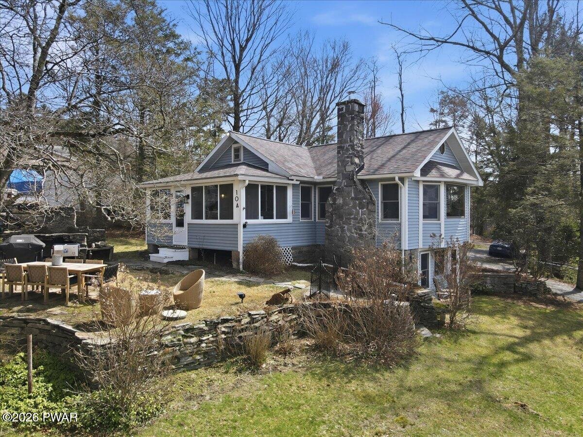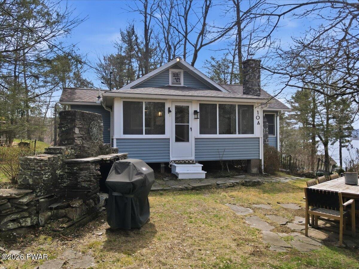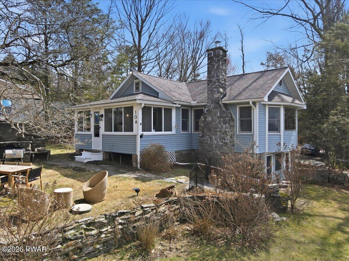 HOME WARRANTY INCLUDED!!! Stunning Lake View Retreat with many Modern Upgrades and Lake Rights! Welcome to 104 Lane Court, where breathtaking panoramic views of Lake Wallenpaupack steal the show. This property is ONE OF A KIND!!!This beautifully updated 4-bedroom, 2 bath home offers the perfect blend of comfort, style, and LOCATION!!! Roof was replaced in 2021, carefree vinyl siding, updated septic system in 2019 and a private well, give peace of mind for years to come. Inside, you'll love the fully remodeled kitchen featuring granite countertops, stainless steel appliances, and top-of-the-line finishes, perfect for entertaining or everyday living. Both full bathrooms have been tastefully renovated, (showers come with a lifetime warranty) while the newly finished hardwood flooring throughout adds warmth and timeless appeal. Take in the incredible lake views from the living room AND enjoy the beautiful screened-in porch, the perfect spot for morning coffee or relaxing evenings. With an ideal combination of modern updates and unforgettable scenery, this home is a true Lake Wallenpaupack gem.Furniture is negotiable on this home! Short term rentals are allowed in this area but would require township approval and a permit.