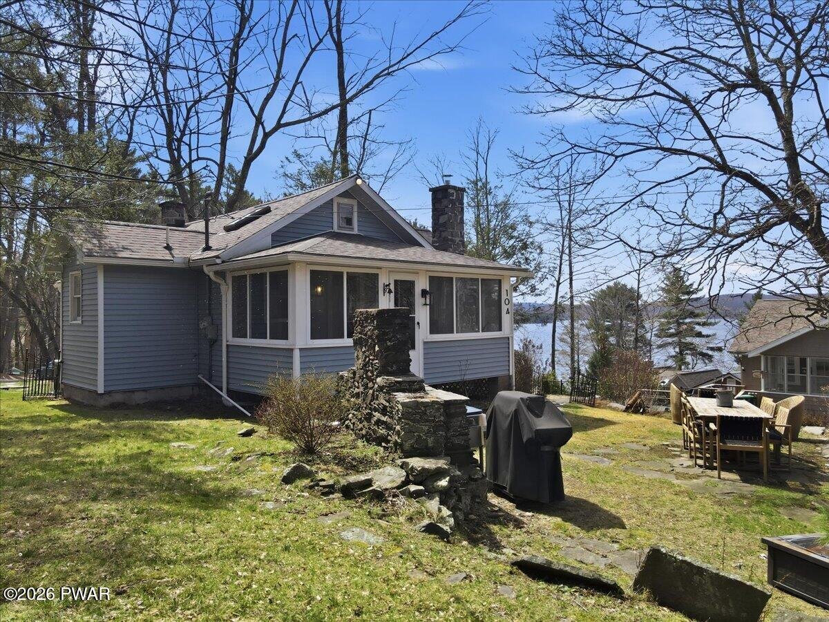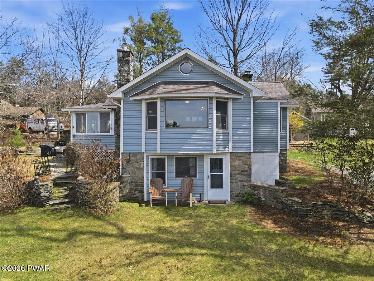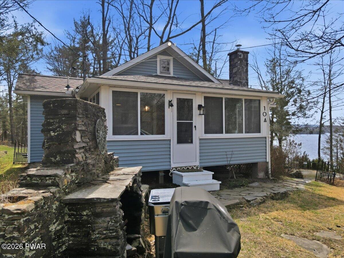 HOME WARRANTY INCLUDED!!! Stunning Lake View Retreat with many Modern Upgrades and Lake Rights! Welcome to 104 Lane Court, where breathtaking panoramic views of Lake Wallenpaupack steal the show. This property is ONE OF A KIND!!!This beautifully updated 4-bedroom, 2 bath home offers the perfect blend of comfort, style, and LOCATION!!! Roof was replaced in 2021, carefree vinyl siding, updated septic system in 2019 and a private well, give peace of mind for years to come. Inside, you'll love the fully remodeled kitchen featuring granite countertops, stainless steel appliances, and top-of-the-line finishes, perfect for entertaining or everyday living. Both full bathrooms have been tastefully renovated, (showers come with a lifetime warranty) while the newly finished hardwood flooring throughout adds warmth and timeless appeal. Take in the incredible lake views from the living room AND enjoy the beautiful screened-in porch, the perfect spot for morning coffee or relaxing evenings. With an ideal combination of modern updates and unforgettable scenery, this home is a true Lake Wallenpaupack gem.Furniture is negotiable on this home! Short term rentals are allowed in this area but would require township approval and a permit.