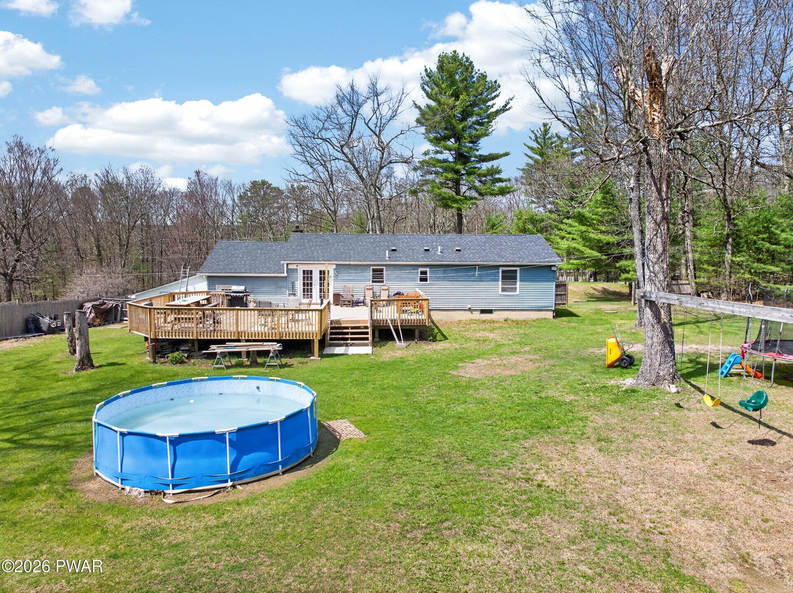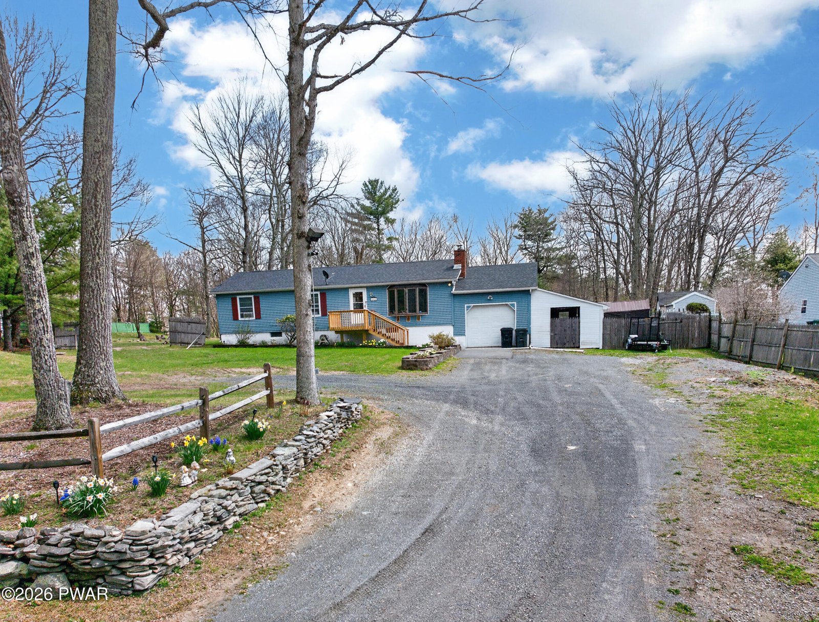 PRIVACY, CHARM AND LOCATION -- THE BEST OF THE POCONOS! This one truly checks all the boxes folks. Welcome to this beautiful 3-bedroom, 2-bath ranch set on over an acre of meticulously landscaped property in the highly sought-after Pocono Mountain Water Forest - Section 6. Offering exceptional curb appeal, this home features a full walkout basement, a one-car garage, and ample parking for guests, recreational vehicles, or even that new boat you've had your eye on. This unique location provides the perfect balance of privacy and community living, granting access to all neighborhood amenities while enjoying a more peaceful, tucked-away setting outside of the main development. Step inside and you'll find wide plank knotty pine hardwood floors that bring warmth and character throughout, complemented by a spacious, functional layout designed for comfortable one-level living. The basement woodstove adds both charm and efficiency, keeping the home cozy throughout the winter months. Recent updates, including a new roof and brand new front and rear decks, provide peace of mind and enhance both the interior and exterior living experience. Step out of your french doors onto your massive back deck, which is the perfect place to entertain and barbecue all summer long! This is your own private retreat, complete with an above-ground pool, over-sized fire pit, and beautifully landscaped grounds. Whether you are looking to relax or enjoy time with friends and family, you'll never even have to leave home. Located in the highly desirable Delaware Valley School District and just minutes from Milford Borough, Route 84, and the NY/NJ border, this property offers the perfect combination of convenience, comfort, and lifestyle. Whether you're searching for a full-time residence or a weekend escape, this home delivers exceptional value in one of the area's most desirable communities. This one will not last! Call today to schedule your own private showing!