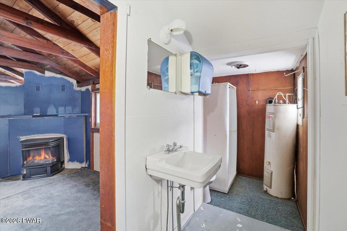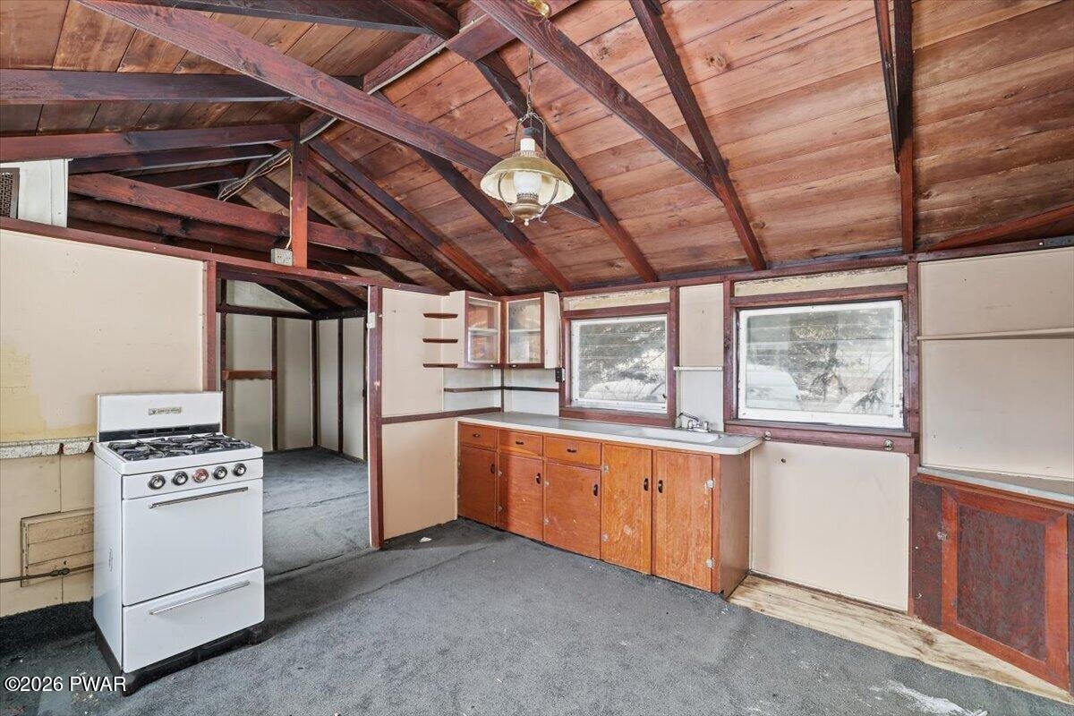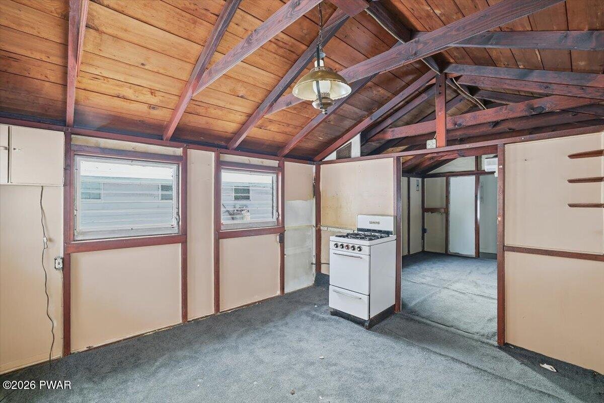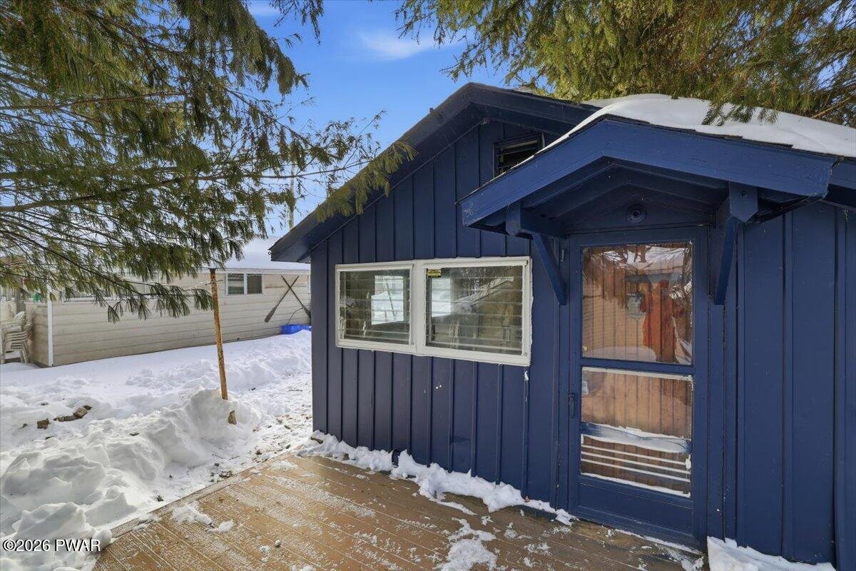 Just minutes from Promised Land State Park, this classic Pocono cabin offers an affordable entry point into recreational ownership--ideal as a hunting camp, weekend getaway, or simple off-grid-style retreat. Set on a quiet lane with a wooded backdrop, this property delivers the kind of simplicity and character that's getting harder to find at this price point. Inside, exposed wood beams, vaulted ceilings, and a wood-paneled interior create an authentic cabin feel. The open living area is anchored by a fireplace, perfect for warming up after a day outdoors or settling in for quiet winter nights. The layout is efficient and functional, with a kitchen area, living space, and sleeping quarters that make smart use of the footprint. Outside, the property includes a storage shed, ideal for firewood, hunting gear, or tools, along with space to relax and enjoy the surrounding nature. With hiking, fishing, boating, and state land nearby, this cabin works perfectly as a seasonal base camp or a low-cost Pocono escape. A rare opportunity to own a Pocono retreat under $80,000 - Schedule your showing today!