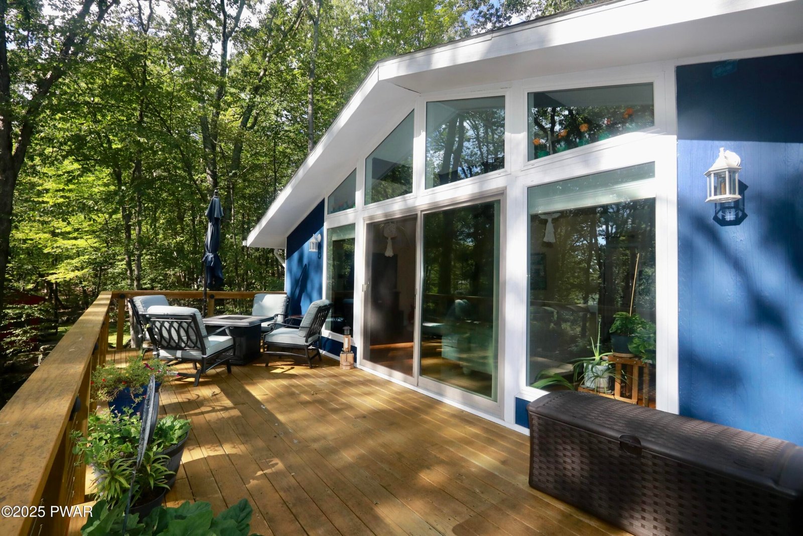 Move-in ready home with a motivated seller! 3 Bedroom/2 Bathroom...Enjoy breathtaking wooded views and year-round sunsets from this bright, airy home filled with natural light. Features include a screened-in porch, large entertaining deck, upgraded kitchen with granite countertops, white cabinets, gooseneck faucet, gas range, and custom finishes throughout. Home offers Heat/AC split units, new 2024 hot water heater, custom window treatments on every window, and low-maintenance landscaping. Also, plenty of storage, a workshop, and an insulated crawl space for maximum energy efficiency. Perfect location--easy walk or bike to Elm Beach, Little Camp Beach (Hemlock Lake), and just steps to the mailroom. Community amenities: indoor/outdoor pools, fitness center, hot tub, sauna, steam room, pickleball, tennis, bocce, dog park, playground, private beaches, lakes, 24/7 security, on-site fire department & EMTs, social clubs, and year-round events. Turn-key living in Hemlock Farms schedule your private showing today!