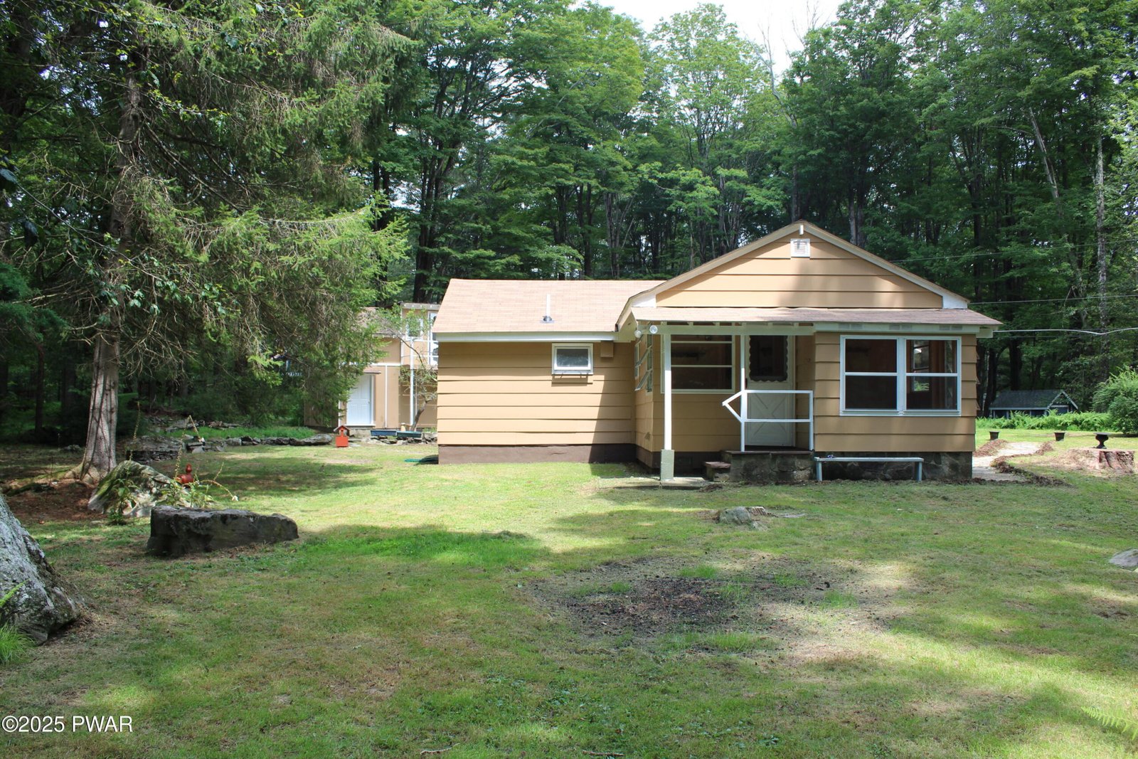 Quiet solitude!!! Not a state cabin and you don't have to be a PA resident to own this piece of paradise near Promised Land State Park. This very private location with two buildings in which to live as well as have a workshop and a garden is the perfect place to bring your family and friends to enjoy the great outdoors. The garage will be cleaned out by closing. A storage shed is included. HOA is road maintenance only.