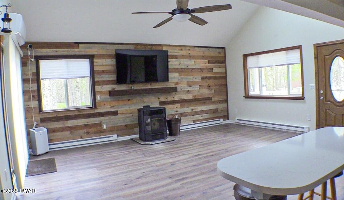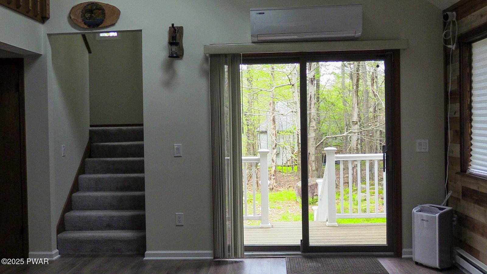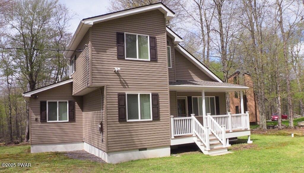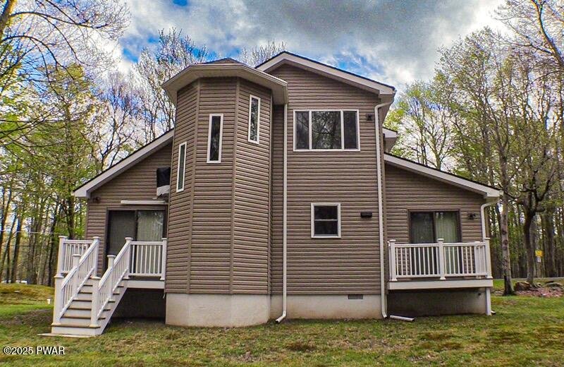 A beautiful, newly remodeled home in the sought out community of Pocono Springs. Welcomed by lush greenery surrounding and an everlasting Trex deck, this house has several highly desired features within. Upon entry you are welcomed by high cathedral ceilings, a hand-laid wood wall, with a mounted 65'' flat screen TV. Underneath is a wood pellet stove to keep you warm during the colder months of PA. With quartz countertops around the kitchen, you are able to sit at the breakfast bar and enjoy your early mornings in peace. View your wooded backyard from the back patio in the dining area right off the kitchen.With cathedral windows on the staircase and skylights to allow for natural sunlight, this house welcomes you!The loft upstairs allows you a cozy space to getaway and overlook your beautiful living room.Both bathrooms have solid wood vanity's and soft closing drawers, paired with beautiful marble counters. 360 mirrored vanity mirrors and industrial lights make the ambiance of the bathroom warm and subtle. Each bedroom has ample room for your choice of bed size, the primary with double closets to house your wardrobe. Pocono Springs has quite a bit to offer, from a pool island surrounded by Crystal Lake where you can paddle around and fish out of. An ATV track to let all your energy out of, access to the game lands, and trails to walk around the lake. This community allows golf carts and ATVs to be driven around on the roads! Don't miss this hidden gem in The Poconos!