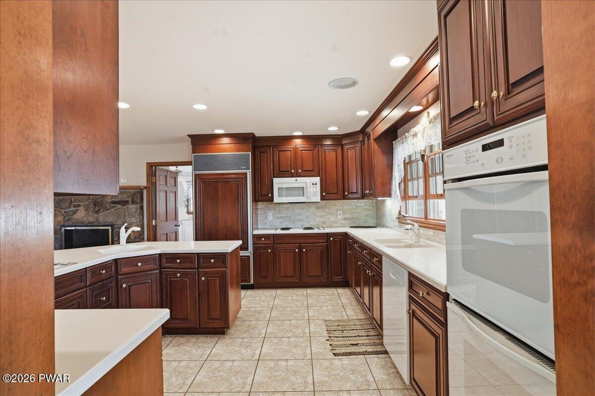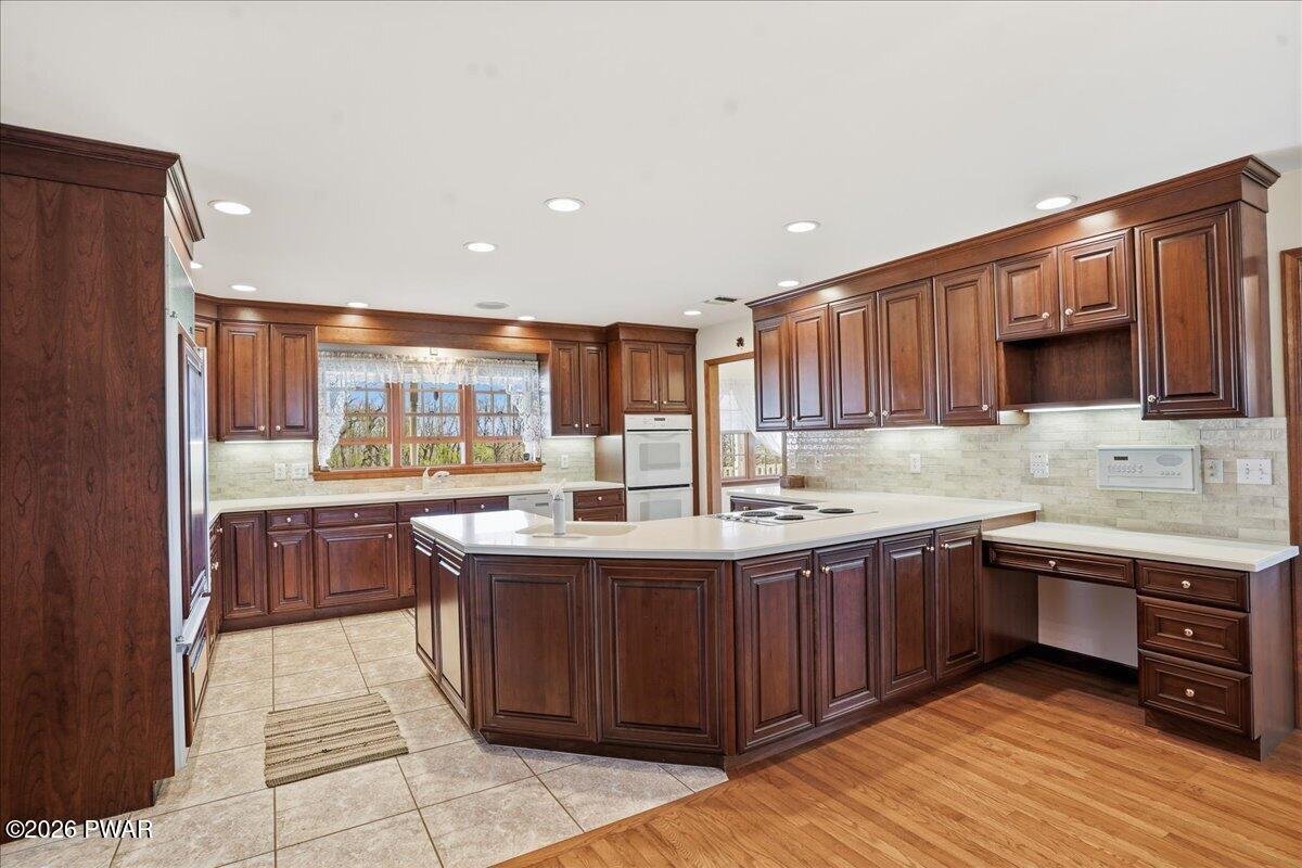 Everything you've ever wished for and it's all right here in this Grand center hall colonial offering 6 car garage. 3 car attached (heated) 3 car detached 2 story garage, Corian kitchen & baths/craft room. 2 fireplaces, Spectacular views & sunsets from oversized porches. Hardwood floors. Formal dining room and 1st floor family room. 4th bedroom on main floor. Laundry/craft room offers an abundance of counter space & cabinets, freezer & sink. Kitchen has sub zero refrigerator, 2 range tops, double wall oven & 2 sinks. This is a one of a kind
