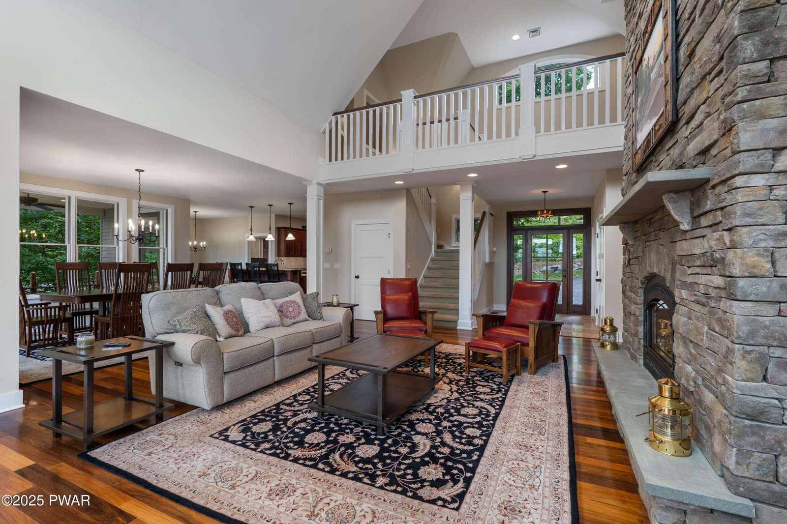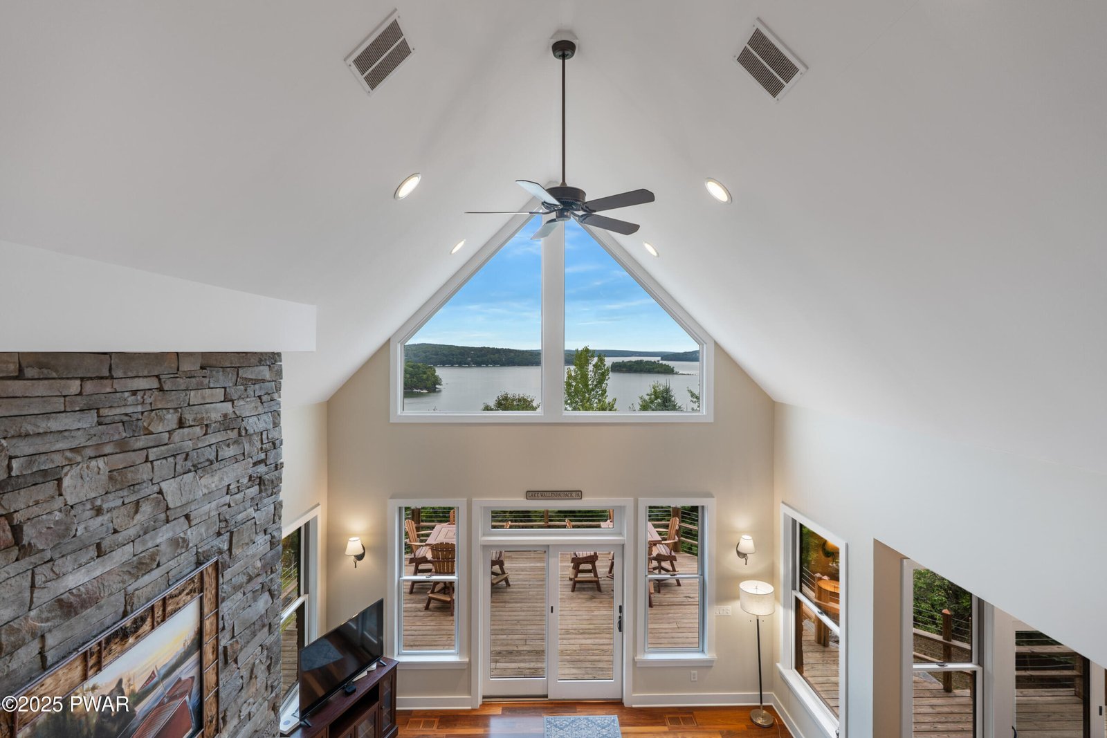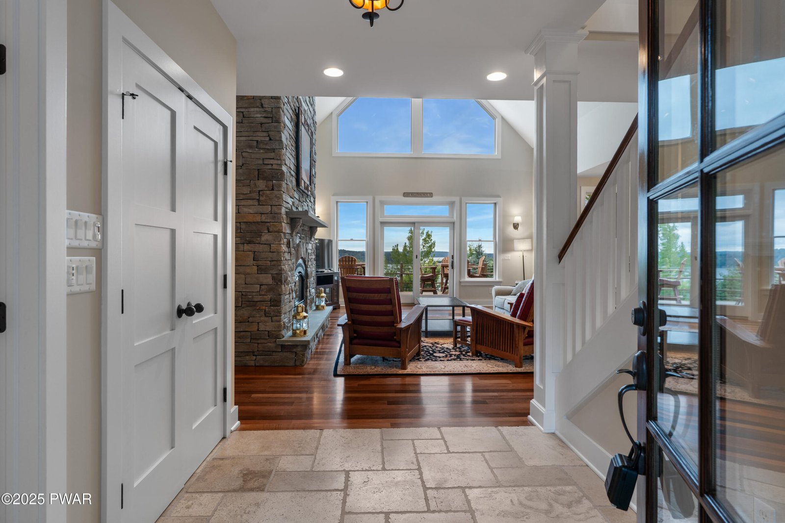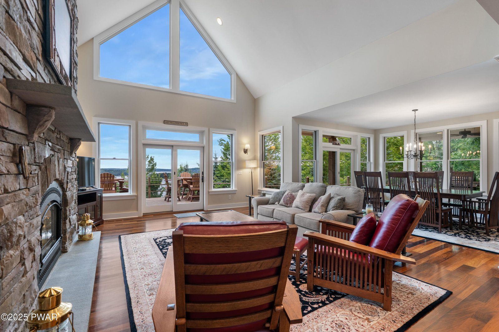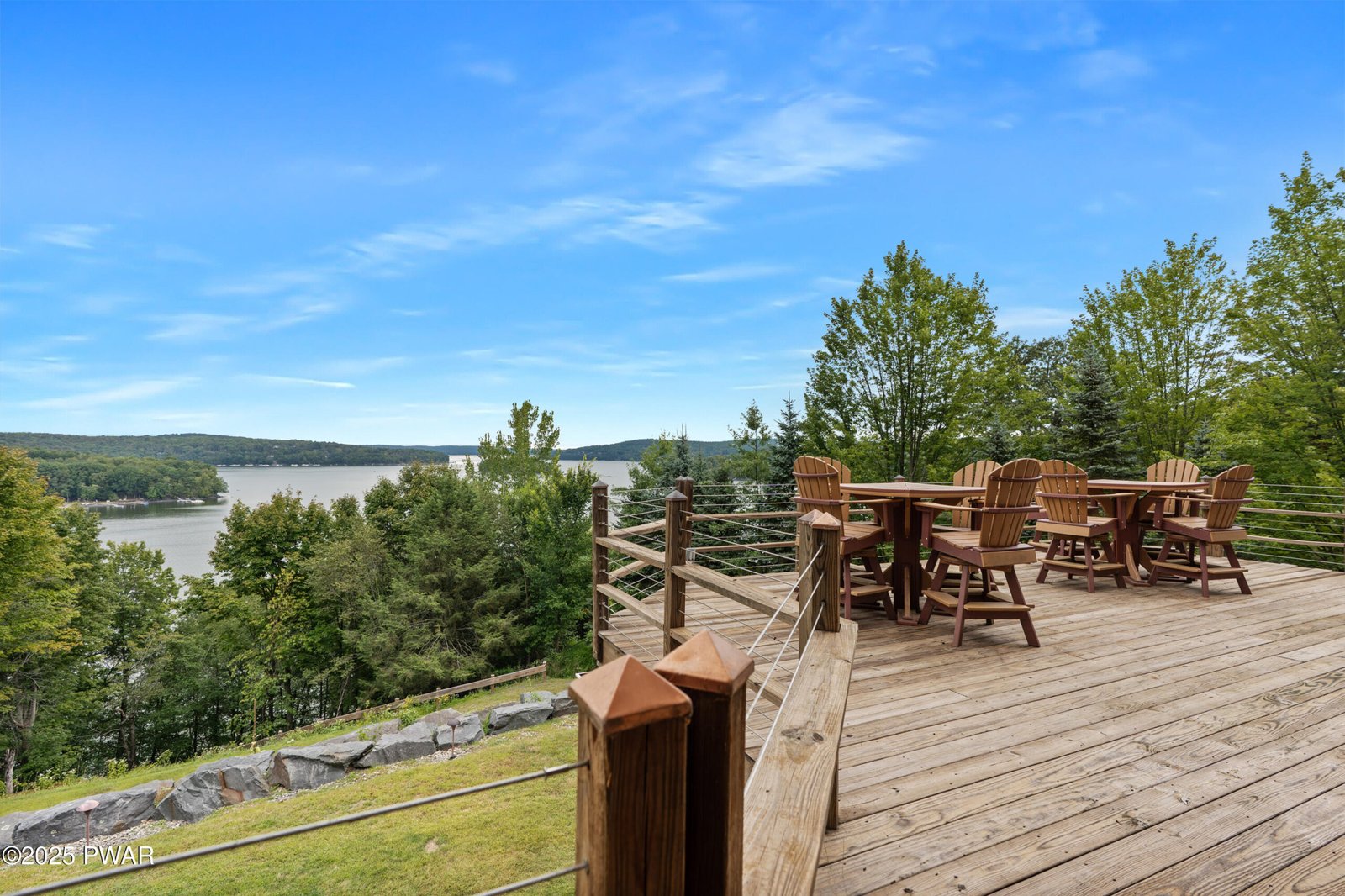 Out-Of-This-World Lake Wallenpaupack Views!Experience breathtaking vistas from this spectacular Joybeck-built lakefront home. With three private bedroom suites, an open floor plan, and a striking floor-to-ceiling stone fireplace, this residence seamlessly blends luxury living with incredible lake scenery.The gourmet kitchen features high-end stainless steel appliances, while the finished lower level offers a bar, kitchenette, and plenty of space for entertaining. A large bonus room above the attached three-car garage provides endless possibilities.Enjoy the outdoors from the expansive deck or the covered stone patio, both perfect for relaxation and entertaining. This property includes a boatslip on the community dock--making it the ultimate Lake Wallenpaupack retreat.