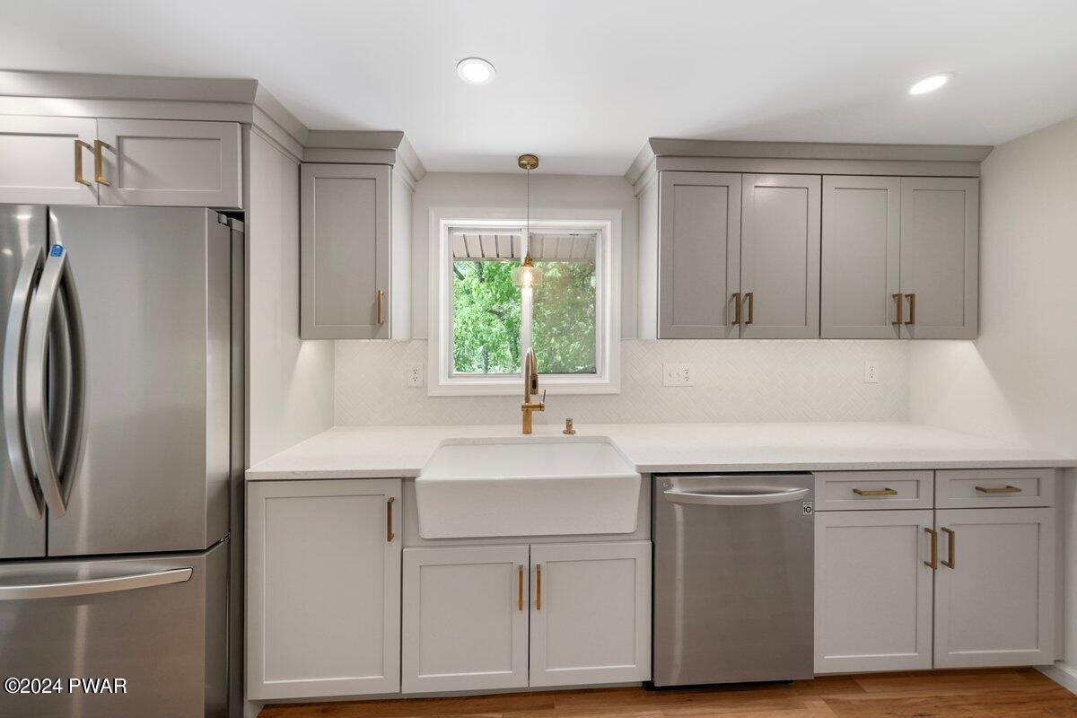 Discover this impeccably renovated residence in the desirable community of Hemlock Farms, where every detail has been carefully considered. With ample space for both family living and entertaining, this home boasts a complete overhaul from top to bottom, featuring new windows, new vinyl siding, new roof, new sheetrock, newly paved driveway, and decks throughout. The main level welcomes you with expansive areas for socializing, seamlessly transitioning from one space to another. A freshly designed kitchen equipped with modern appliances enhances the entertaining experience. Retreat to the serene owner's suite, complete with a private bath for ultimate relaxation.For leisurely moments, unwind in the airy family room or game room, complete with a wine fridge for hosting memorable gatherings. Step outside onto the generous deck, perfect for outdoor entertaining and soaking in the refreshing atmosphere.Conveniently located just a short stroll from Little Camp Beach and in close proximity to Fawn Hill Family Park, where relaxation by the pool awaits. Explore all that Hemlock Farms has to offer, including three beaches, two outdoor pools, an indoor pool, sauna, steam room, hot tub, and a wealth of recreational amenities such as tennis, pickleball, and bocce ball. Additionally, a state-of-the-art gym caters to fitness enthusiasts.Don't miss the opportunity to experience the splendor of this home and the array of amenities Hemlock Farms has in store. Schedule your private viewing today to witness the epitome of modern living in this idyllic community.