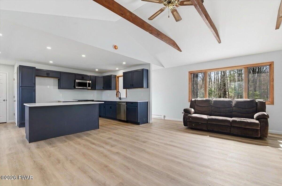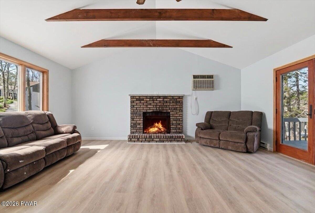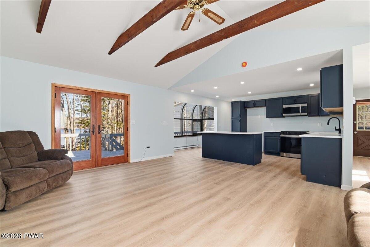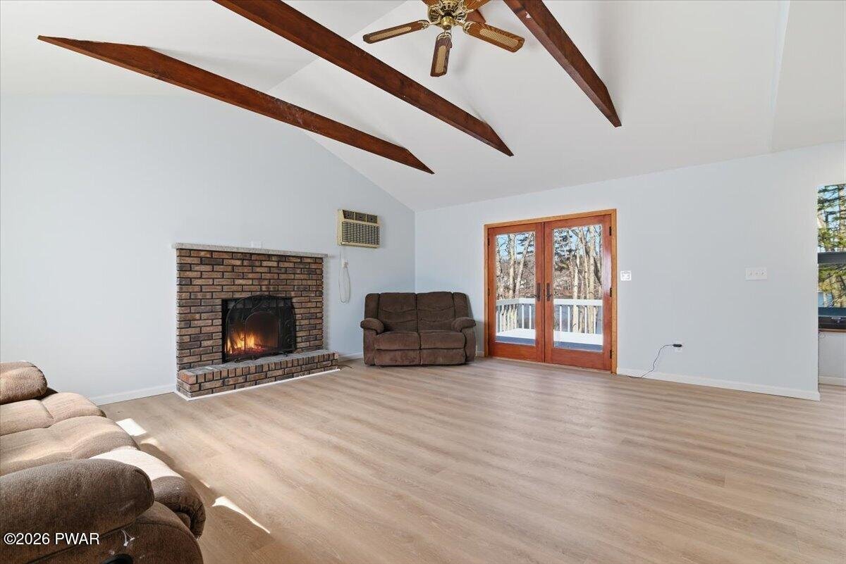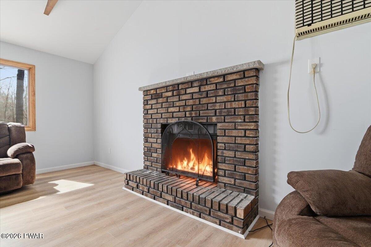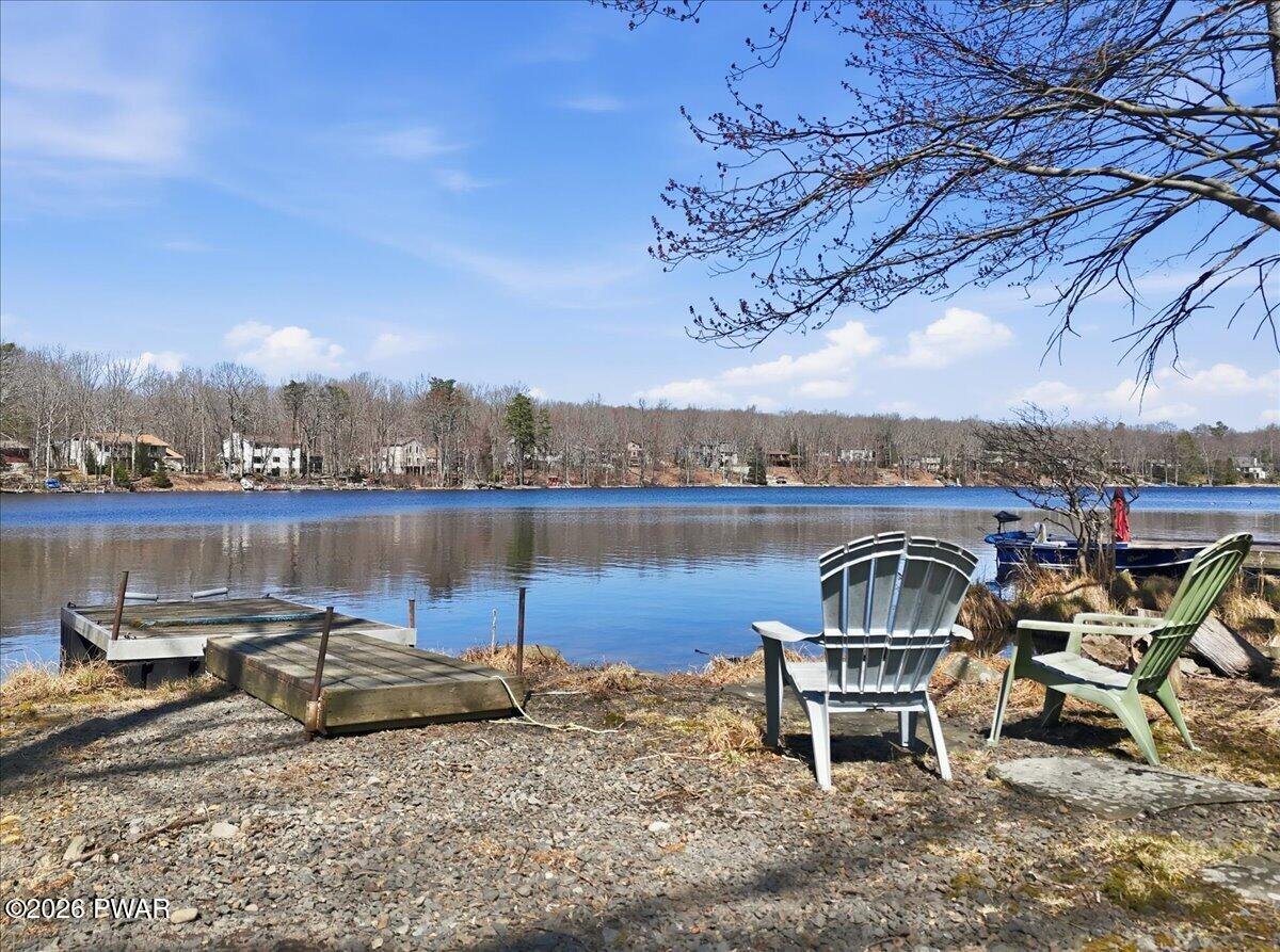 Lakefront | Renovated | Open Floor Plan | Private Dock | Level Yard | Big Lake ViewsSet on 86 feet of shoreline along Spruce Lake, this beautifully renovated lakefront home is all about the view and the lifestyle. With a large deck overlooking the water, a level yard to the shoreline, private dock, and peaceful lake views from every room, this 3-bedroom, 2-bath home offers the kind of setting buyers dream about.Inside, the home has been renovated down to the studs and redesigned with an open floor plan, new flooring, updated finishes, and natural light throughout. The main living space is warm and inviting with vaulted ceilings, exposed beams, a brick wood-burning fireplace, and French doors leading to the oversized deck overlooking the lake.The renovated kitchen opens beautifully to the living area and features stylish dark cabinetry, solid-surface counters, stainless steel appliances, and a large center island perfect for entertaining. A window-lined dining area brings in even more light and captures peaceful lake views.The main level includes a bedroom and beautifully updated full bath, while upstairs you will find two additional bedrooms, both with lake views, along with another renovated full bath. The walk-out lower level adds even more usable space with laundry, storage, and easy access to the backyard and shoreline.Outside is where this property truly shines, with a spacious deck, firepit area, picnic spot by the shore, and private dock for kayaking, fishing, swimming, or simply relaxing by the water. With a circular driveway, private septic, new well, underground utilities and close proximity to the community pool, lakes and playground, this move-in ready lakefront home offers both comfort and the peaceful lake lifestyle buyers are hoping to find.