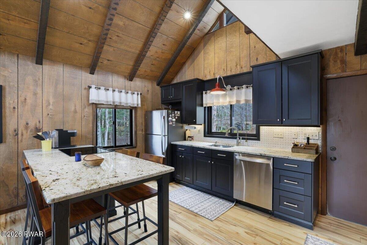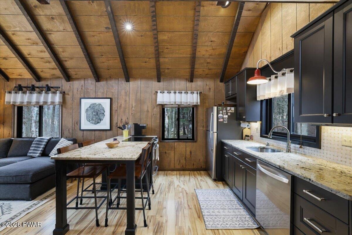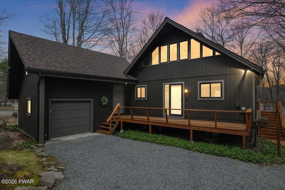 Panther Lake Perfection | A Private Lakefront Retreat Designed for Living WellWelcome to a rare offering on pristine Panther Lake--where thoughtful design, meticulous care, and natural beauty come together to create an extraordinary lakefront lifestyle.Tucked away on a private, wooded 3/4-acre setting, this 3-story contemporary chalet is more than a home. It's an experience. From the moment you arrive, there's a sense of calm... the kind that only comes from being surrounded by water, trees, and intention.Inside, soaring vaulted ceilings and expansive windows draw the outdoors in, filling the open-concept living space with light and tranquil lake views. The warmth of native stone, a and wood-burning stove create the perfect balance of rustic charm and modern comfort, while a beautifully updated kitchen with granite surfaces and stainless appliances invites connection, conversation, and effortless entertaining.With four distinct sleeping areas, including a loft that overlooks the main living space, this home is designed to host and gather, yet still offer privacy and retreat. Every detail has been carefully considered, from remodeled baths to smart systems, whole-house generator, and upgraded finishes throughout.But it's outside where this property truly comes alive. A stunning sequence of outdoor spaces unfolds as you move toward the water. An expansive lakeview deck for dining and sunset evenings, a terraced hot tub tucked among evergreens, a walkout paver patio and finally... a bluestone lakeside setting that feels like your own private resort.Here, mornings begin with coffee by the water. Afternoons are spent swimming, kayaking, or lounging in the sandy-bottom cove. Evenings gather around the fire pit under dark, star-filled skies. And with a four-season dock already in place, the lake is always yours to enjoy.