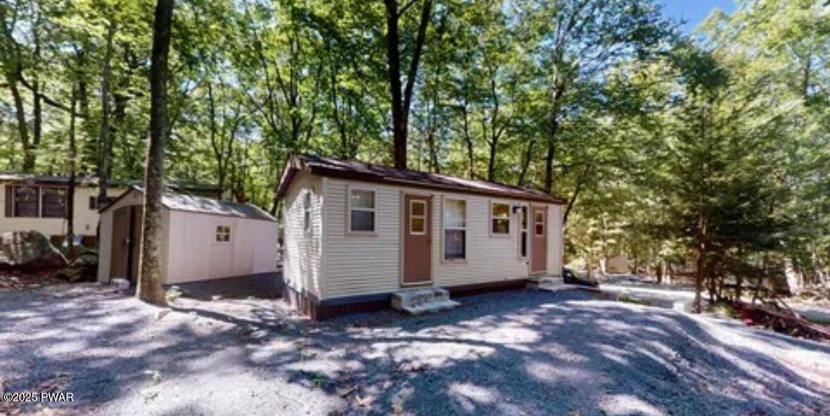 NATURALLY HARDSCAPED and bordered by boulders, trees and ferns, this very manageable 2000 trailer features a BUNK ROOM plus BEDROOM and FULL-SIZED BATHROOM. RECENTLY RENOVATED, it is TURN-KEY and ready for year-round usage. Outdoor conveniences are a GRAVELED DRIVEWAY and Rubbermaid 7x7 storage SHED. Trails End allows 180 day residency on this privately owned lot, close to skiing, lakes, waterfalls, Delaware river, and Pocono outdoor life. This cannot be used to establish permanent residency (ie for voting, licensing, etc. as it is a ''camping community,'') Amenities include 2 outdoor pools, kiddie pool, Clubhouse with seasonal activities, Concession stand and bar, Recreation Building, Non-Denom Chapel, baseball field, basketball courts, catch and release kiddie pondand large playground. Close to State parks and Shohola Falls, 15 minutes to Lake Wallenpaupack and Historic Milford. 90 minutes from NYC!
