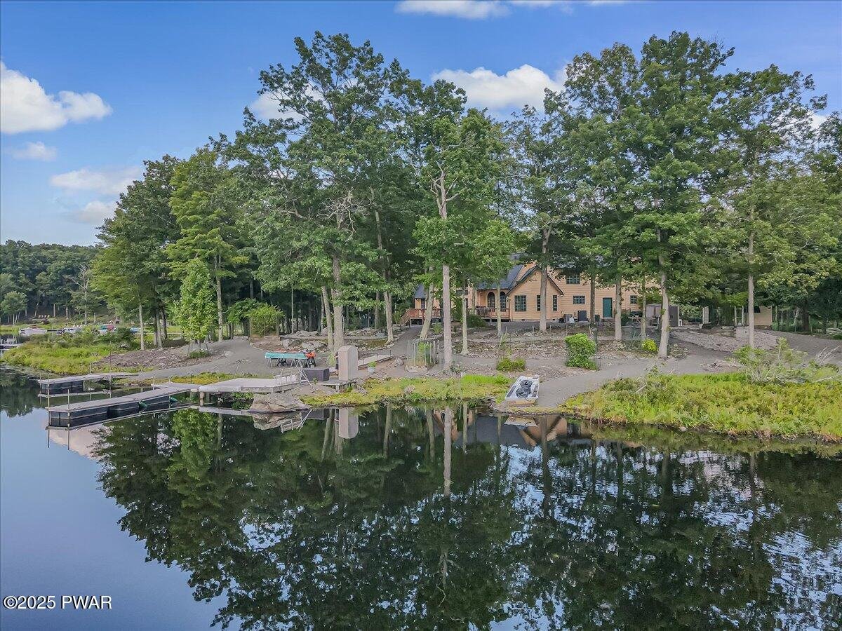 Huggable 4100ft Custom Cape Lake Front Contemporary Multi Gable Architectural Design on a Secluded Cul-de-sac. Detached enclosed 225 ft. Spa House with an Infared Electric Dry Sauna, 5-Person Hot Tub, Electric Heated Baseboard, De-Humidifiers in Ceiling & Crawl Space, Ceiling Fan, Pella Architectural Windows, Premium Finished Pine Tongue & Groove Ceiling and Walls. Home Was Featured in Eastern Pennsylvania Builder/Architect Magazine 64th Edition. Custom Built Home Offers Attached 2 Car Garage, 5BD/3Full BA, Open Floor Plan, Custom Kitchen w/ Viking 8 Burner Double Oven Self-Cleaning Stove, Silestone Quartz Counter Tops, Kichen Aid & Whirlpool Appliances, Enormous Walk in Pantry & Foot Sweeper, Pella Windows/Doors, Beautiful Premium Tongue & Groove Throughout, Wet Bar Room w Ceiling Fan, Entire Home has Central Vac, Tankless Hot Water on Demand, CAC & Heat, Main Floor Primary Suite w/ Vaulted Ceilings, Jacuzzi Tub, 2 Double Closets & Gas Fireplace, Great Room w/ Vaulted Ceilings & Floor to Ceiling Stone Gas Fireplace, 2 New Furnaces & 2 New AC Units, New Generator, New Roof, New Washer & Dryer, Wi-Fi Remote Controlled Thermostats, State of the Art Security System w/8 High Definition Cameras, and Amazing Lakeview's. There are so many special and unique features to list, check out the attached special feature list. Picturesque Property with 170 Ft of Level Lake Frontage, with multiple paths to the Lakefront. Lush Landscaping & Hard Scaping w/ Perennial Flowers, Ornamental Shrubs and Trees. Lakefront was dredged to accommodate gas engine motor crafts up to 18ft, 3 Floating Docks to accommodate a Canoe, Kayak & 12ft Electric Engine Bass Tracker Boat, 1 Launch Area, Spacious Back Yard, Paved Circular Driveway, Relaxing Private Setting, Imagine Yourself Sitting on Back Deck Watching the Sunset Over the Lake with a Glass of your Favorite Wine. Showings Are by Appointment Only. Pre-Approval &/or POF required for a showing. NO Drive By's / Security Cameras.