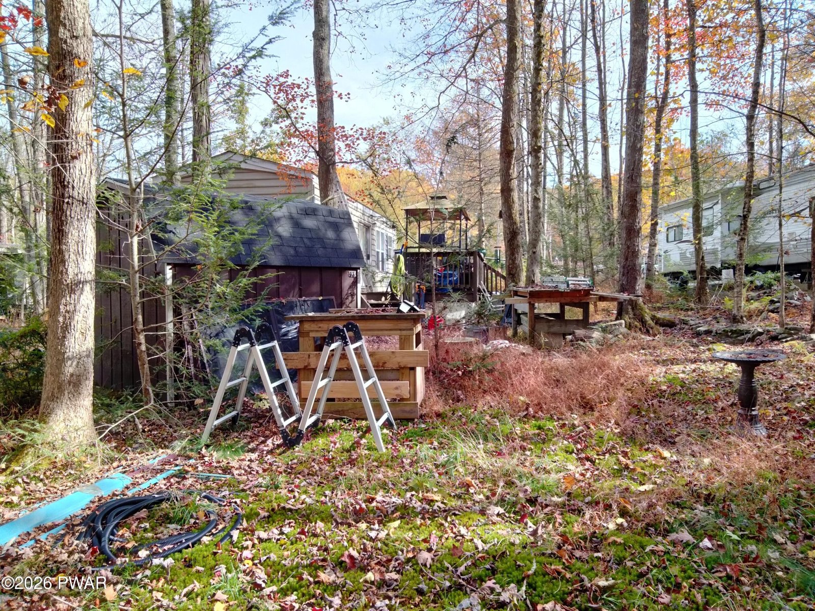 CHOICE LOCATION ABUTING OVER 11,000 ACRES FOR STATE FOREST FOR HUNTING, HIKING AND MUSHROOM PICKING. WILDLIFE ABOUND AT THIS LOCATION DUE TO SMALL NONFLOODING SEASONAL STREAM AT THE REAR OF THE PROPERTY. THE PARK MODEL HAD A NEW ROOF IN 2018. BUT THERE IS A SMALL PERMANENT ROOF REPAIR THAT NEEDS TO BE DONE WHERE A TREE LIMB WENT THORUGH THE ROOF AFTER THE NEW ROOF WAS INSTALLED. A TEMPORARY PATCH IN IN PLACE AT THE MOMENT. THE PARK NEEDS A NEW CEILING AS WELL. THE PARK MODEL WITH A LARGE DECK AND WOODEN SHED IS THE PERFECT PLACE TO START YOUR CAMPING JOURNEY IN LAKE ADVENTURE FOR A SMALL PRICE.