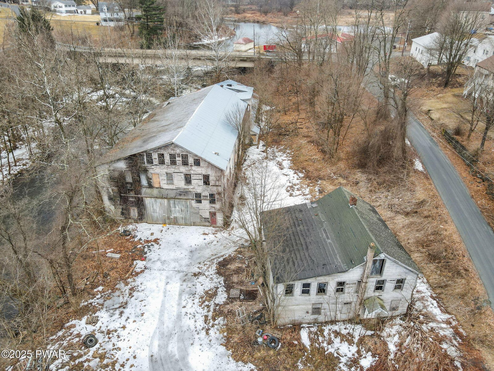 HISTORIC BIRDSALL KNITTING MILL WITH 500 FEET OF DIRECT LACKAWAXEN RIVER FRONTAGE ONLY 1 MILE FROM DOWNTOWN HONESDALE! Own a piece of history with the iconic Birdsall Knitting Mill, a remarkable historic warehouse brimming with potential! Located in Seelyville, just one mile west of Honesdale, this extraordinary property boasts 500 feet of direct Lackawaxen River frontage and breathtaking views of a cascading waterfall. The stunning natural setting combined with the building's historic charm makes this a rare investment opportunity with limitless possibilities. With multiple levels of usable space, this warehouse is ready for transformation into an incredible wedding venue, art gallery, brewery, market, event space, loft-style residences, or mixed-use commercial hub. Whether you envision a boutique hotel, creative workspace, or luxury riverfront retreat, this property offers a blank canvas for your entrepreneurial dreams. A true fixer-upper with historic architecture and industrial character, the Birdsall Knitting Mill exudes vintage appeal. Opportunities like this are rare! The combination of history, riverfront beauty, and prime location makes this property an exceptional investment. Bring your vision and restore this magnificent landmark to its former glory while creating something truly spectacular!