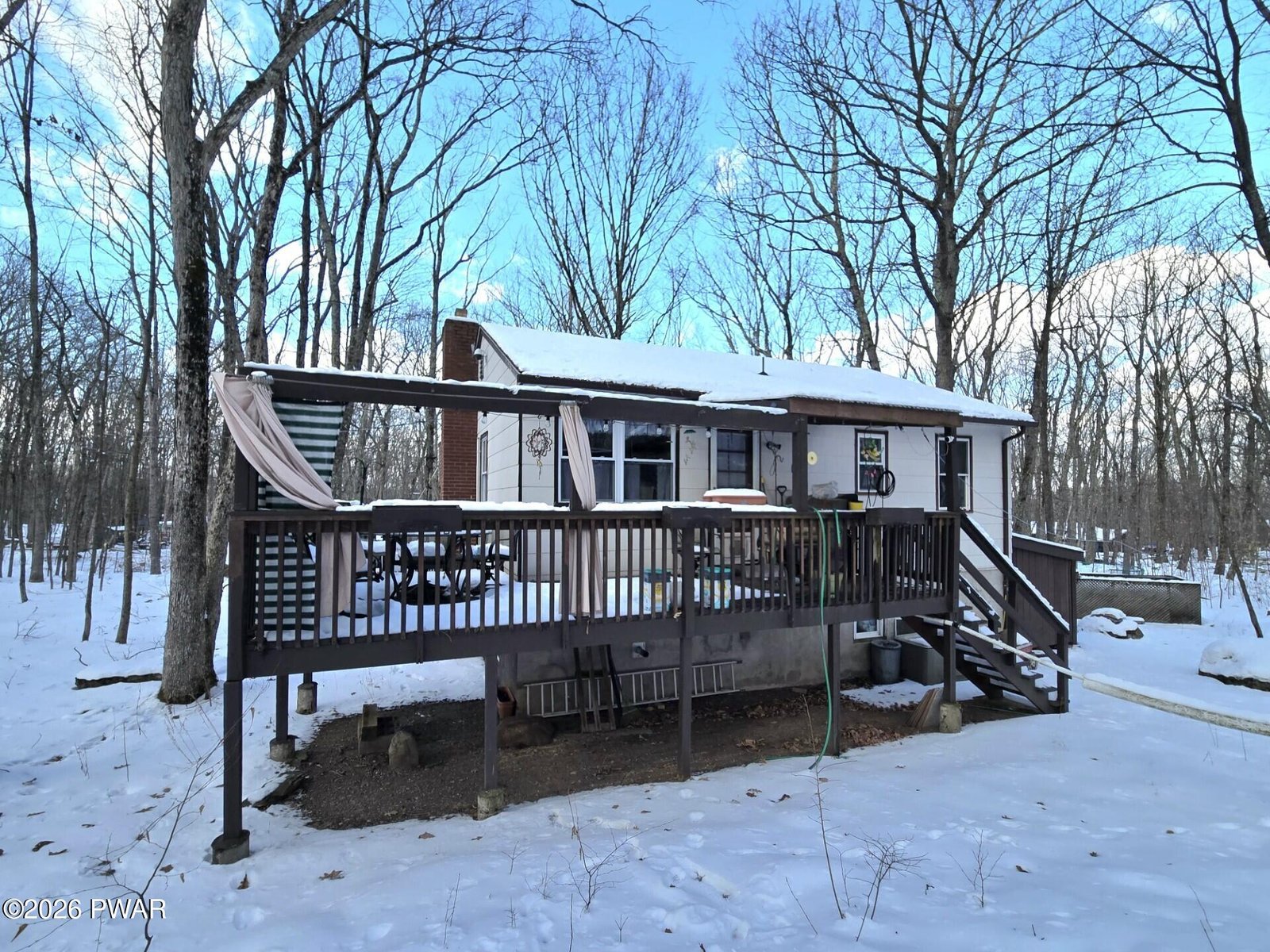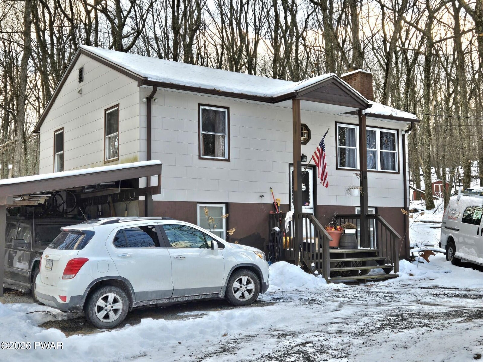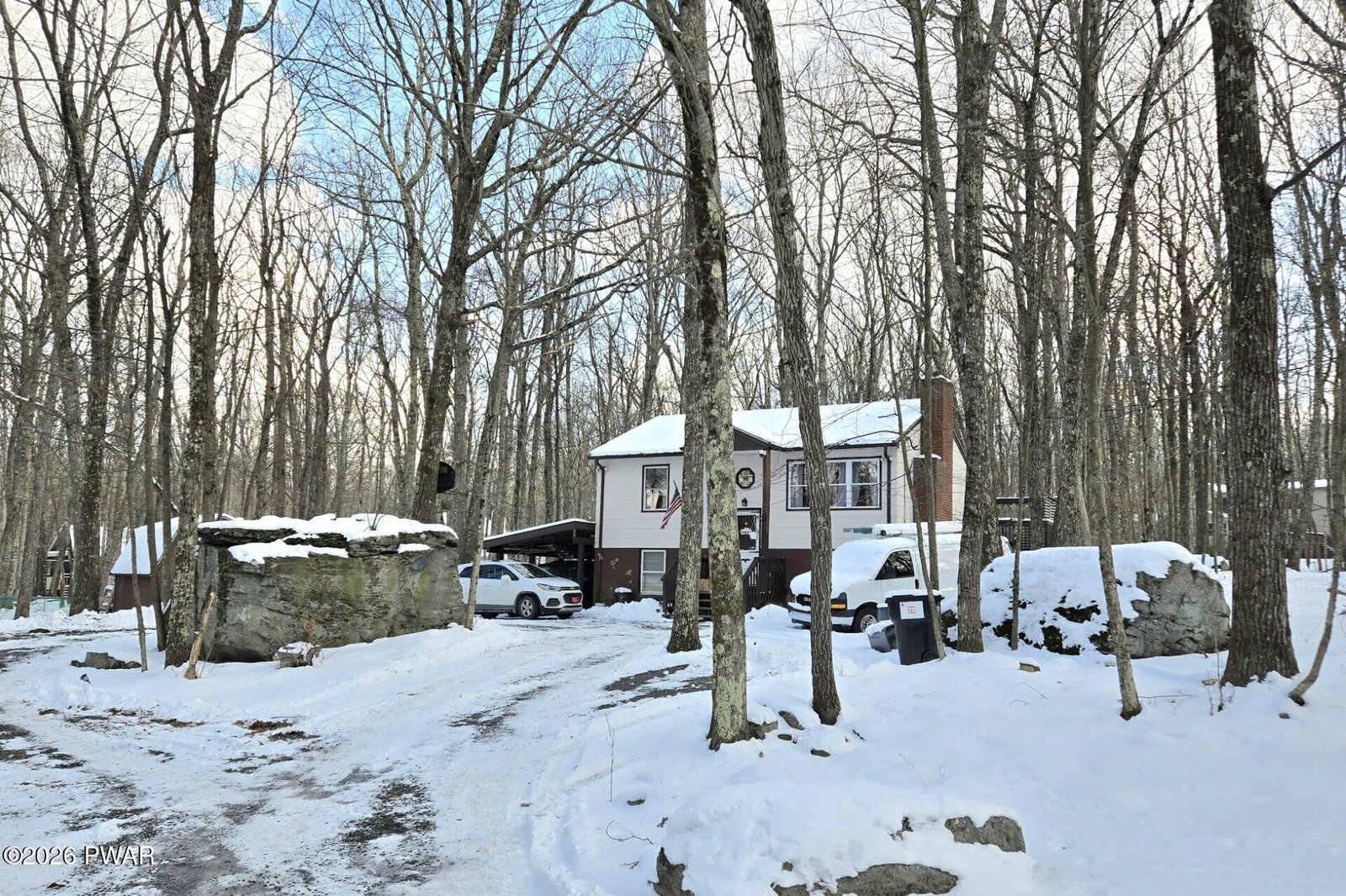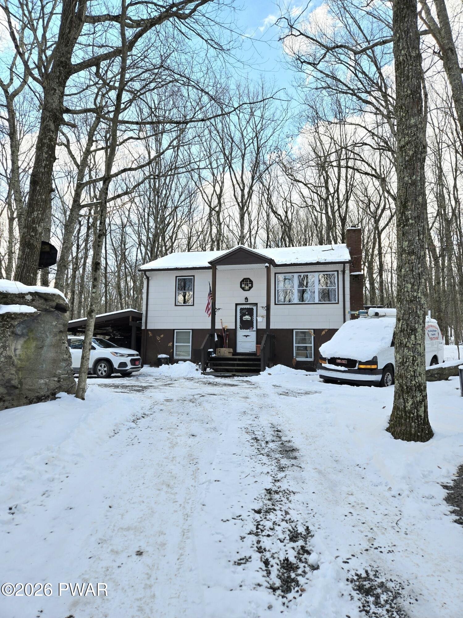 Welcome to this unique bi-level residence! This charming two-bedroom, one and a half bath home offers over 1300 sq ft of inviting living space. It is situated on over a half acre leveled lot with a circular driveway and natural surroundings. Upon entering the home, you'll find a split-level design with stairs leading to both the main and lower levels. The main level showcases the kitchen, abundant with cabinets and counter space, perfect for culinary endeavors. Bask in the natural light and take in the serene backyard views while dining in the kitchen, or step out onto the back deck to enjoy meals outdoors with the beauty of nature. The living room, a cozy haven, invites you to unwind by the warmth of a crackling fire, providing an ideal setting to relax with family or entertain guests. On the opposite side of the home, two spacious bedrooms feature beautiful hardwood flooring, offering a peaceful retreat for rest and relaxation. Additionally, beneath the kitchen and living room's laminate flooring lies the original oak flooring, adding a touch of classic charm.A beautifully tiled bathroom, complete with a tub and shower, along with a window for natural lighting, is conveniently situated near the bedrooms. The lower level of the home expands your living possibilities with three versatile rooms, adaptable to suit your lifestyle needs. Whether you envision a home office, exercise room, hobby area, or workshop, these spaces are ready to accommodate your desires. The utility and laundry room on this level comes equipped with an extra uninstalled water heater, complementing the existing water heater connected to the furnace and propane system. Outside, the property offers ample parking space, including a carport for added convenience. A spacious shed provides additional storage options, enhancing the practicality of this delightful home. With numerous bonuses and unique features, this property truly stands out as an exceptional opportunity.