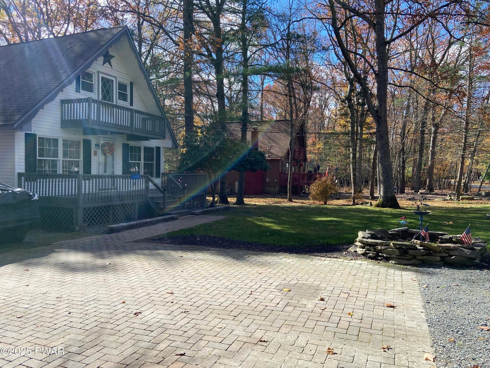 Classic Pocono Charm pours out of this chalet style home tucked away on a cul-de-sac in Marcel Lake Estates. This home has new flooring through much of the house, exposed beams, updated bathrooms, butcher block counter tops in the kitchen, 4 decks, a storage shed, and a 10X20 fenced in garden area in the back yard for the gardening enthusiast. This home is sure to make both the full or part time resident fall in love with Pocono life!