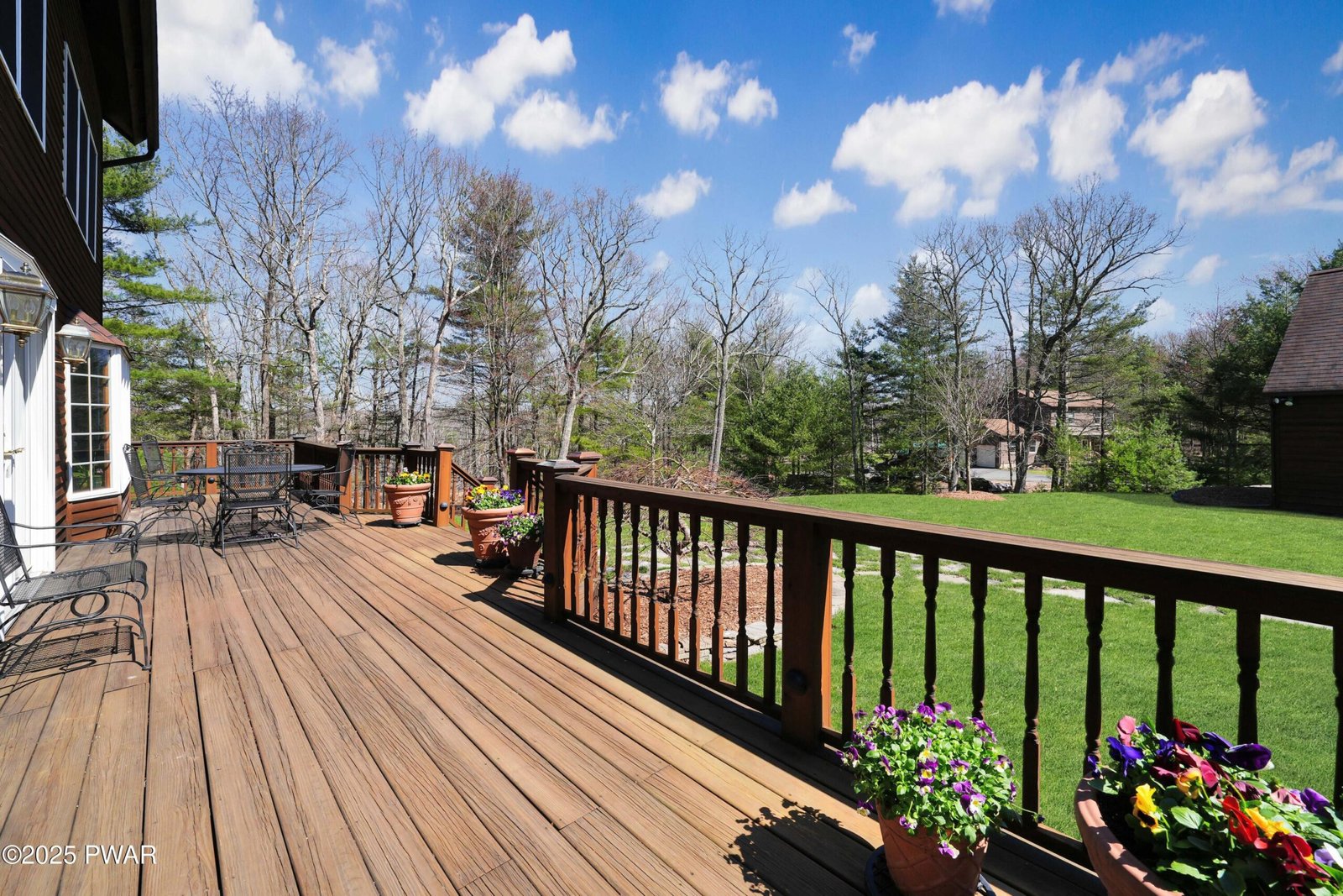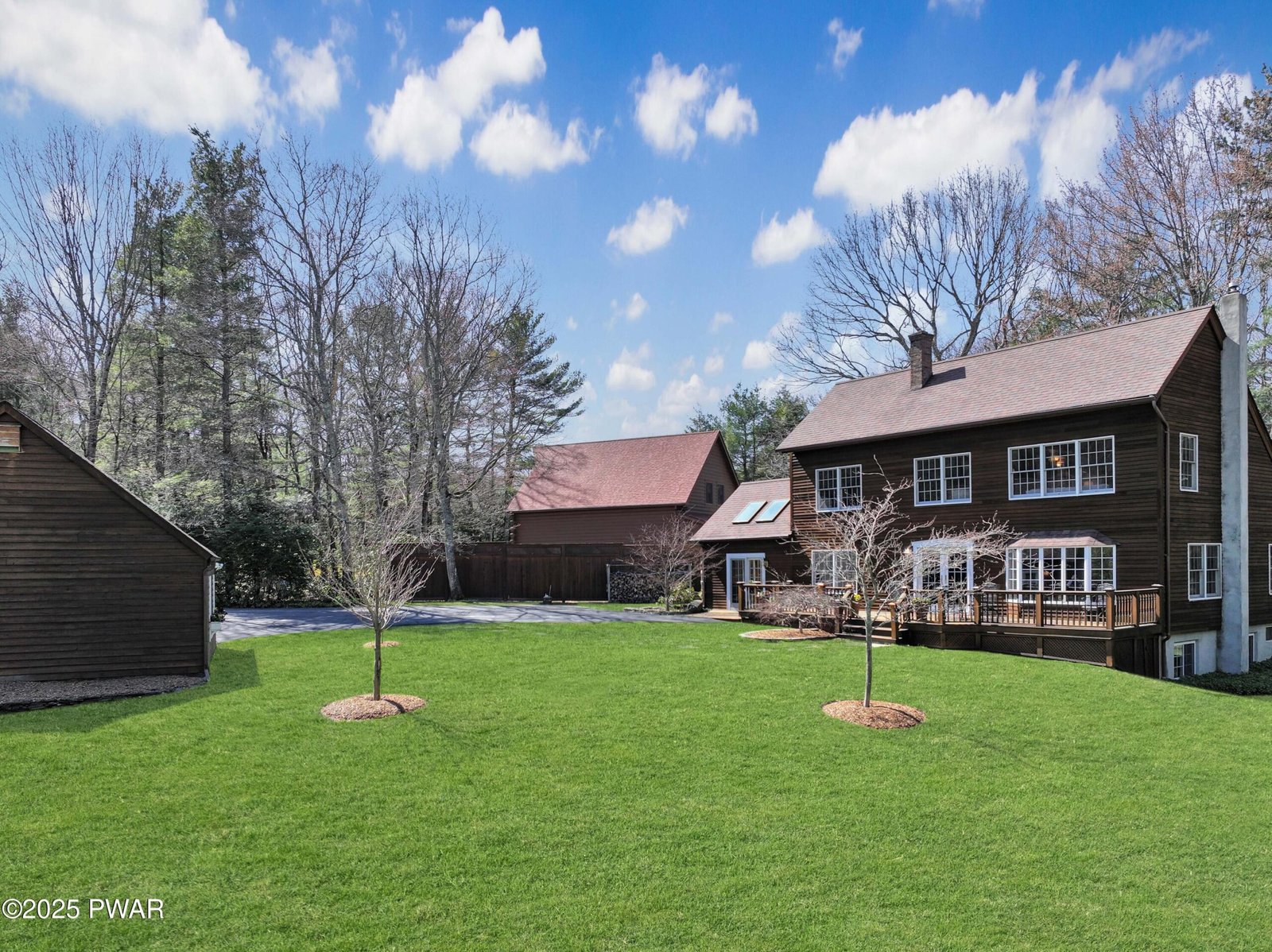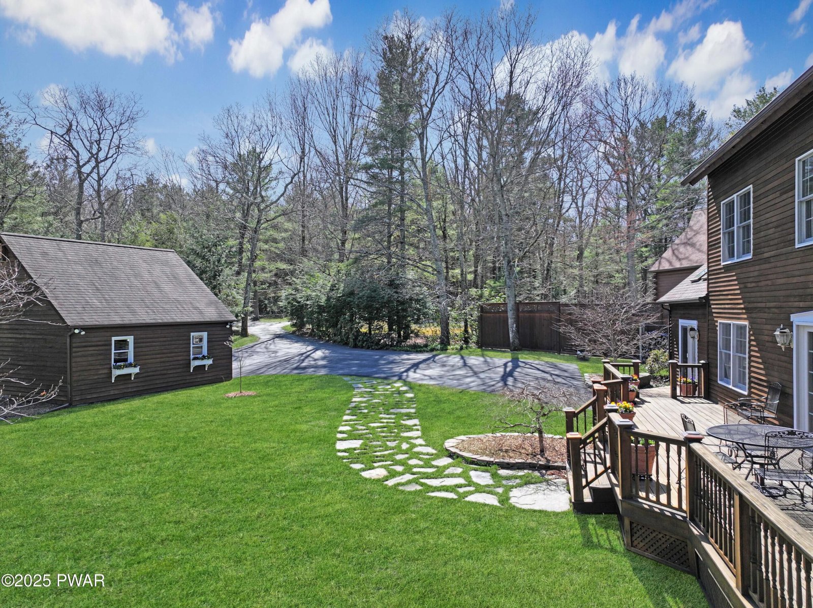 STUNNING POST & BEAM MASTERPIECE-THE PINNACLE OF POCONOS LUXURY! Welcome to this exceptional 3 bed, 2.5 bath custom-built post & beam home, a rare gem tucked away amongst the unmatched tranquil beauty of Shohola. Designed with timeless elegance & built with craftsmanship that's second to none, this residence embodies luxury mountain living at its finest. Set on lush, park-like grounds, the home is wrapped in rich cedar siding that immediately captivates as you travel down the paved driveway, passing a striking two-story detached garage built in matching post and beam style. This private oasis is nestled among towering trees & vibrant gardens, offering peace, privacy & a constant connection to nature. Step into the four-season sunroom, where wall-to-wall windows & two oversized skylights bathe the space in natural light. Kept perfectly comfortable year-round with an energy-efficient mini-split system, it's the ideal spot for morning coffee as you watch the seasons change. The heart of the home unfolds in the open-concept living room, dining area, & farmhouse kitchen, all framed by handcrafted exposed wood beams. The double-sided brick fireplace adds both warmth & charm, casting a soft glow across the hardwood flooring & drawing the eye to every carefully curated detail. The kitchen is a charming chef's delight & the intuitive layout that makes entertaining a joy. A finely appointed guest bedroom & full bath round out the main level. Upstairs, an open loft with soaring ceilings elevate the ambiance of your home office or library nook. The second guest bedroom features a generous walk-in closet, while the primary en-suite is a true sanctuary with knotty pine cathedral ceilings, panoramic windows, & a spa-inspired bath with a jacuzzi tub, skylight, & steam sauna shower. A massive walk-in closet completes the sanctuary. Downstairs, the fully finished basement boasts a family room with propane stove, half bath & full 2nd kitchenideal for an in-law or guest suite.