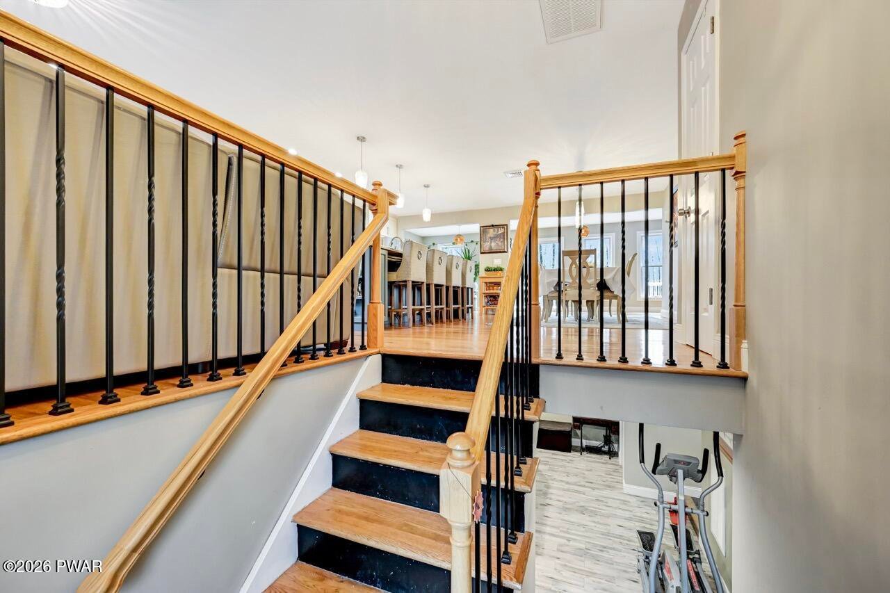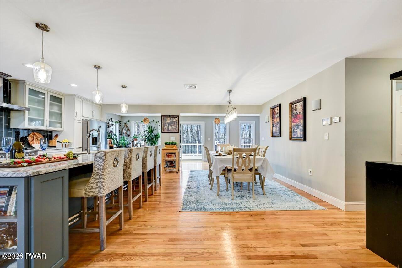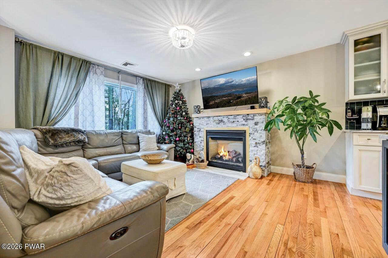 Welcome to a home where comfort, style, and well-being come together seamlessly. Fully remodeled and thoughtfully designed, 115 Pine Brook Road offers two beautifully finished levels of living space for relaxation, connection, and elevated entertaining. The main level features an open-concept layout ideal for family functions. The living room is highlighted by a beautifully appointed fireplace, creating an inviting space for gatherings. The gourmet kitchen (equipped with Viking, Thor, and Whirlpool appliances) features an oversized island with seating for four and flows effortlessly into the dining area, perfect for intimate dinners or lively celebrations. Central A/C and forced-air heating ensure year-round comfort. The primary suite is a private retreat with its own fireplace and spa-inspired en-suite bathroom, complete with a whirlpool tub, walk-in shower, and double vanity. Two additional spacious bedrooms, a shared seating area, and a full bathroom complete this level. The lower level expands lifestyle possibilities with a large family room and dramatic floor-to-ceiling stone fireplace, ideal for movie nights or game days. Two versatile rooms (currently used as fitness and music rooms) can easily become a yoga studio, creative space, or guest accommodations. A full bathroom and six-person cedar dry sauna bring daily rejuvenation right into your home. Step outside to the back deck overlooking a private wooded setting, perfect for morning coffee, meditation, or evening entertaining. Additional features include a large workshop, deep one-car garage, whole-house generator, and central vacuum system. Conveniently located just 10 minutes from historic Milford's dining, shopping, and entertainment, 30 minutes to Lake Wallenpaupack, and 5 minutes to I-84. This home offers secluded elegance with easy access to everything.