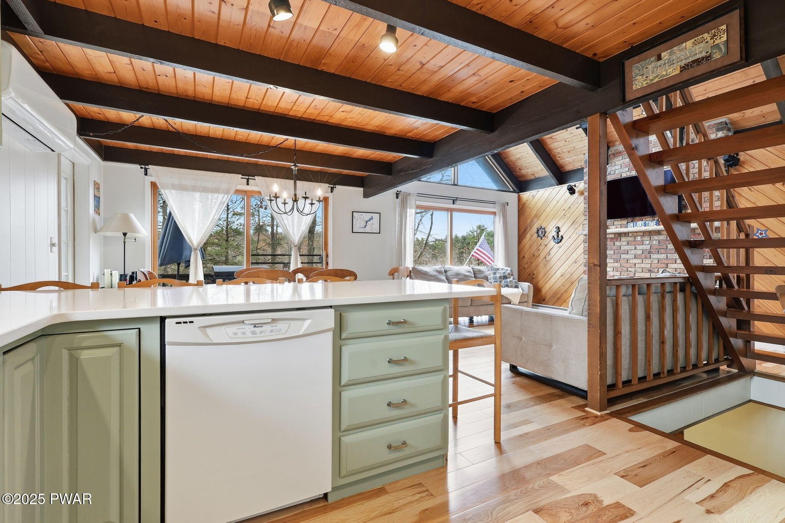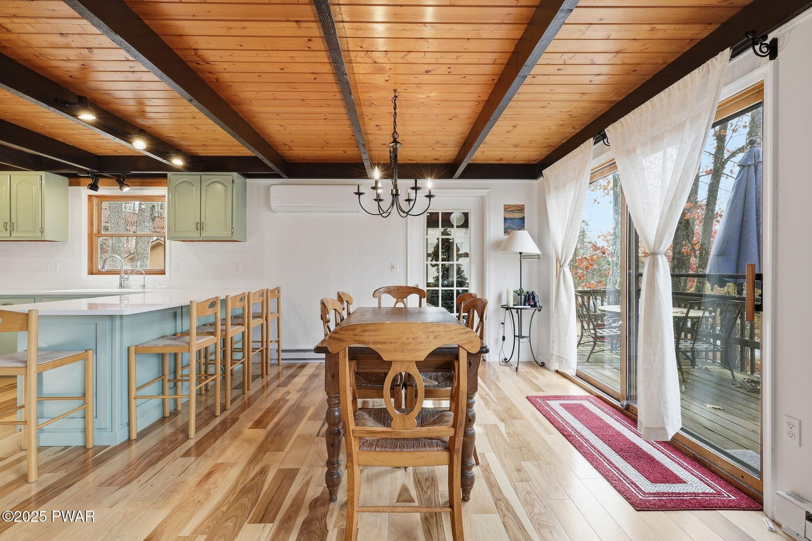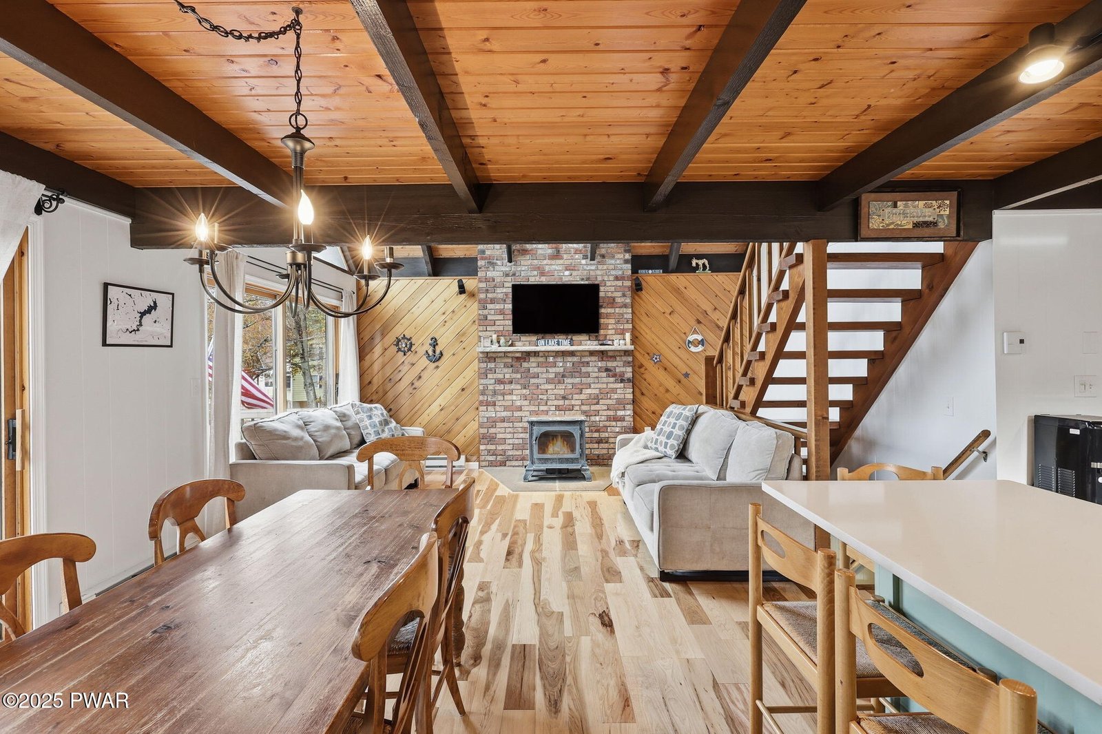 Dreaming of lake views? This one is a keeper! This Wallenpaupack Lake Estates chalet offers the best of both worlds - stunning views of Deer Lake from a corner lot, just across the street from lakefront homes, minus the lakefront price. Enjoy community perks like the pool and beach area, all within walking distance.This freshly remodeled chalet home boasts an open, airy feel with high ceilings and plenty of natural light. Features include wood floors, two cozy wood burning stoves, a primary suite with walk-in closet upstairs with a spacious loft, and two additional bedrooms on the main level. Relax in the four-season room or on the deck, soaking in those sunset lake views. Garage included for your toys, and a storage shed for your lake gear. There is also a firepit facing the lakeside. Wallenpaupack Lake Estates Community: Nestled in the beautiful Pocono Mountains, Wallenpaupack Lake Estates offers a tranquil retreat with endless opportunities for outdoor adventure. Enjoy lakeside amenities, beaches, indoor and outdoor pools, a marina on Lake Wallenpaupack, and a sense of community with neighbors who've become friends. Perfect for nature lovers, families, and anyone seeking a peaceful escape year-round or part time.