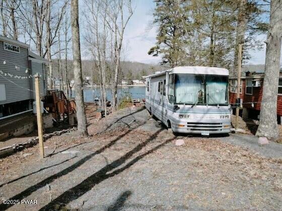 Rare superb lake side site for your new park model, motorhome or camper with water sewer and 30 amp electric hook ups. The oversized campsite is 67 percent larger than the average site in Lake Adventure. There is a fire pit near the lake's edge. You can launch your kayak or row boat right from the property's edge. A shed is included in the sale. There is ample room to construct a deck, screen room and/or tent platform. 1995 Motorhome available with purchase of site.