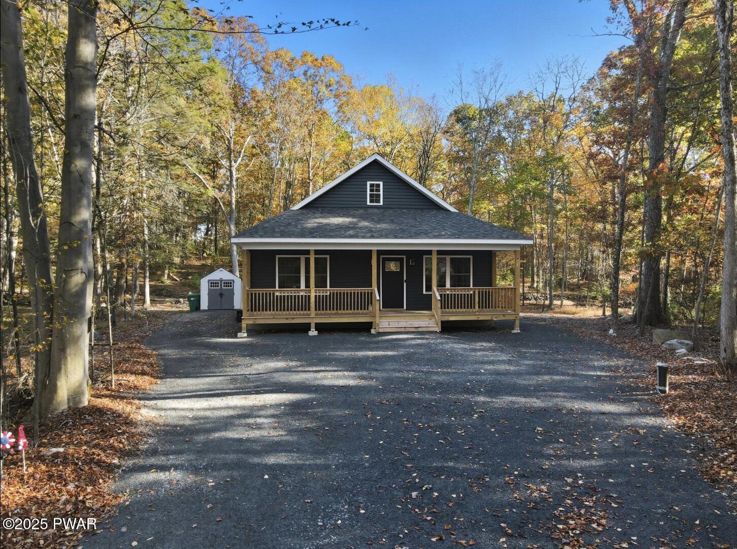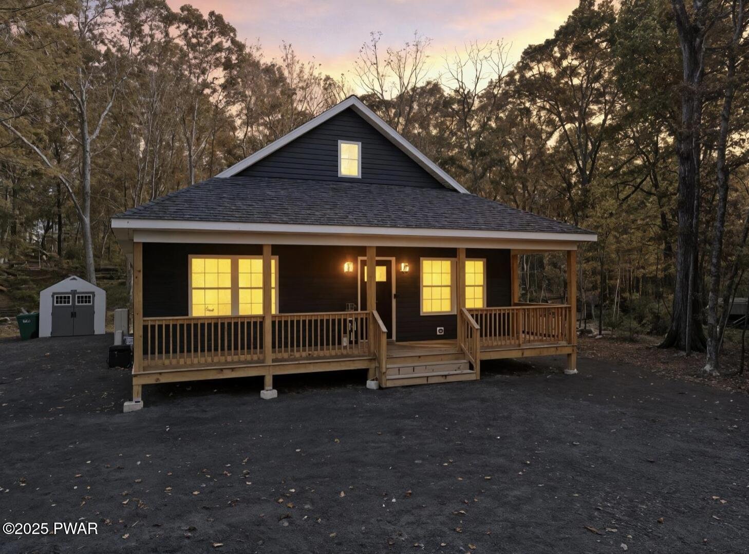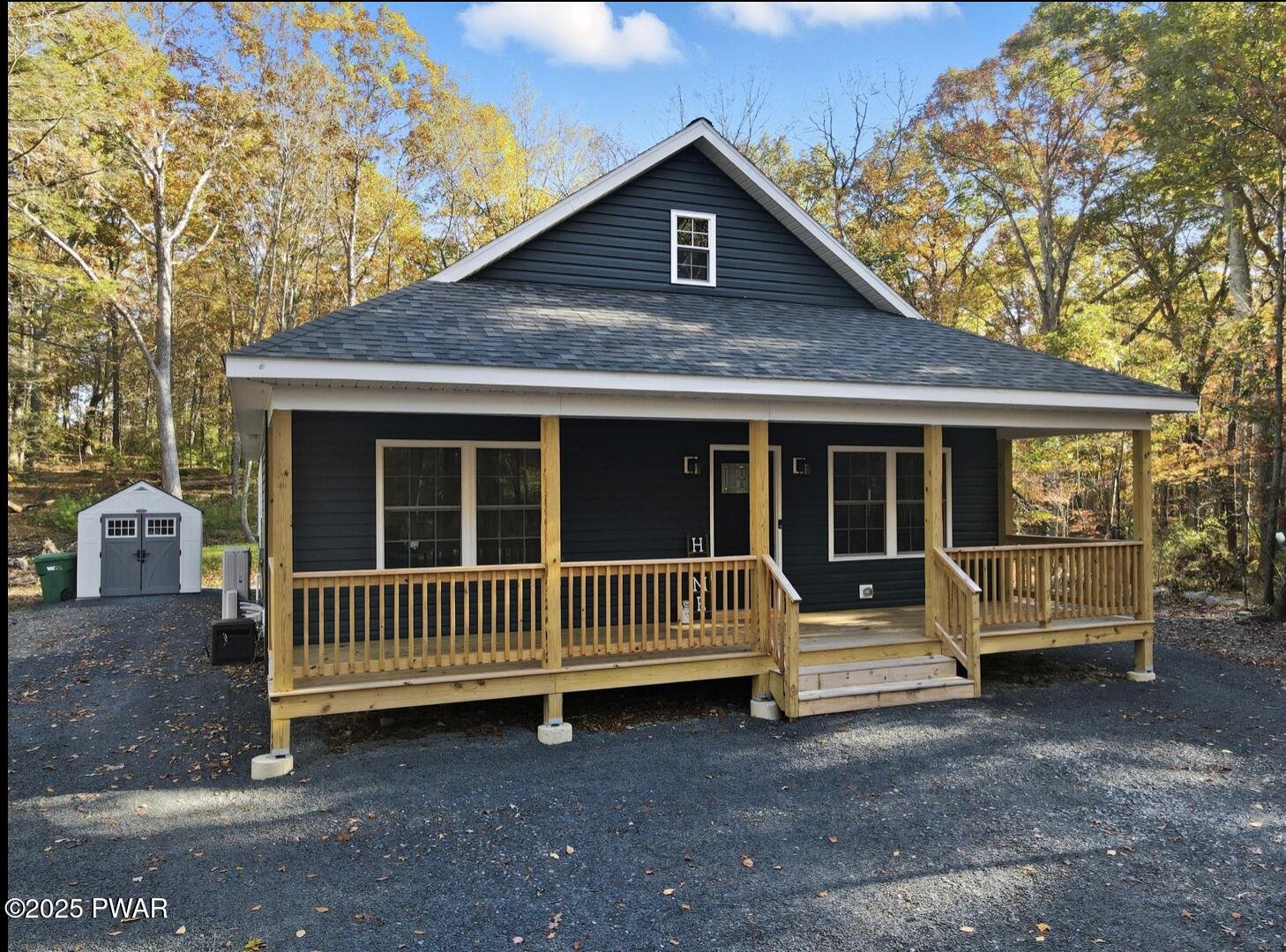 Charming Modern One-Story Ranch in Pocono Mountain Lake Estates Move-in ready ranch on a .33-acre lot backing up to thousands of acres of protected parklands. Perfectly located for comfort, convenience, and outdoor living with hiking, biking, hunting, and more nearby.This home features 3 bedrooms and 2 full baths, including a large primary suite with a walk-in closet and cozy floating fireplace. The living room also features a floating fireplace, and French doors open to an office or 3rd bedroom. There is Laminate flooring and ductless mini-split systems throughout the house which provide efficiency and comfort year-round.The kitchen offers beautiful stone countertops and modern finishes. The home comes fully equipped with ENERGY STAR qualified appliances, including a dishwasher, dryer, washer, refrigerator, and water heater. Additional appliances include a free-standing electric oven, ice maker, and microwave.Included home features:-2 fireplaces (primary bathroom and living room)-Mounted televisions-Napoleon gas grill-Fire pit with chairs-Backyard table and chair setThe attic area (14 x 47) offers flexible space for additional living or storage. Enjoy the oversized front porch or the backyard with views of the wooded area and state land, offering peace and privacy. Pocono Mountain Lake Estates amenities include indoor and outdoor pools, clubhouse, lake beach access, tennis courts, playgrounds, security, and low yearly dues. The property also has low taxes, adding to its value.With community amenities, energy-efficient features, low taxes, move-in readiness, and access to outdoor activities, this home is an ideal choice for all buyers. Call or text me, Glenda Kruse today at 570-618-2160 to schedule your showing and make this exceptional Pocono home yours!