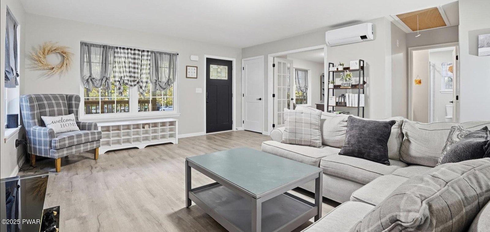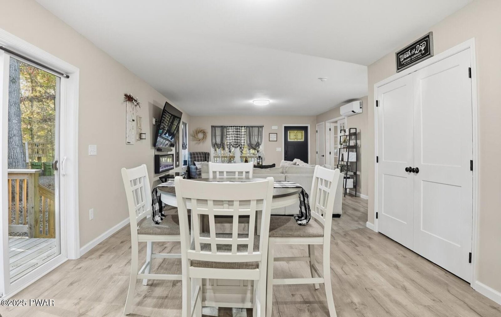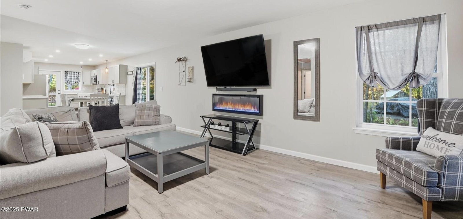Charming Modern One-Story Ranch in Pocono Mountain Lake Estates Move-in ready ranch on a .33-acre lot backing up to thousands of acres of protected parklands. Perfectly located for comfort, convenience, and outdoor living with hiking, biking, hunting, and more nearby.This home features 3 bedrooms and 2 full baths, including a large primary suite with a walk-in closet and cozy floating fireplace. The living room also features a floating fireplace, and French doors open to an office or 3rd bedroom. There is Laminate flooring and ductless mini-split systems throughout the house which provide efficiency and comfort year-round.The kitchen offers beautiful stone countertops and modern finishes. The home comes fully equipped with ENERGY STAR qualified appliances, including a dishwasher, dryer, washer, refrigerator, and water heater. Additional appliances include a free-standing electric oven, ice maker, and microwave.Included home features:-2 fireplaces (primary bathroom and living room)-Mounted televisions-Napoleon gas grill-Fire pit with chairs-Backyard table and chair setThe attic area (14 x 47) offers flexible space for additional living or storage. Enjoy the oversized front porch or the backyard with views of the wooded area and state land, offering peace and privacy. Pocono Mountain Lake Estates amenities include indoor and outdoor pools, clubhouse, lake beach access, tennis courts, playgrounds, security, and low yearly dues. The property also has low taxes, adding to its value.With community amenities, energy-efficient features, low taxes, move-in readiness, and access to outdoor activities, this home is an ideal choice for all buyers. Call or text me, Glenda Kruse today at 570-618-2160 to schedule your showing and make this exceptional Pocono home yours!