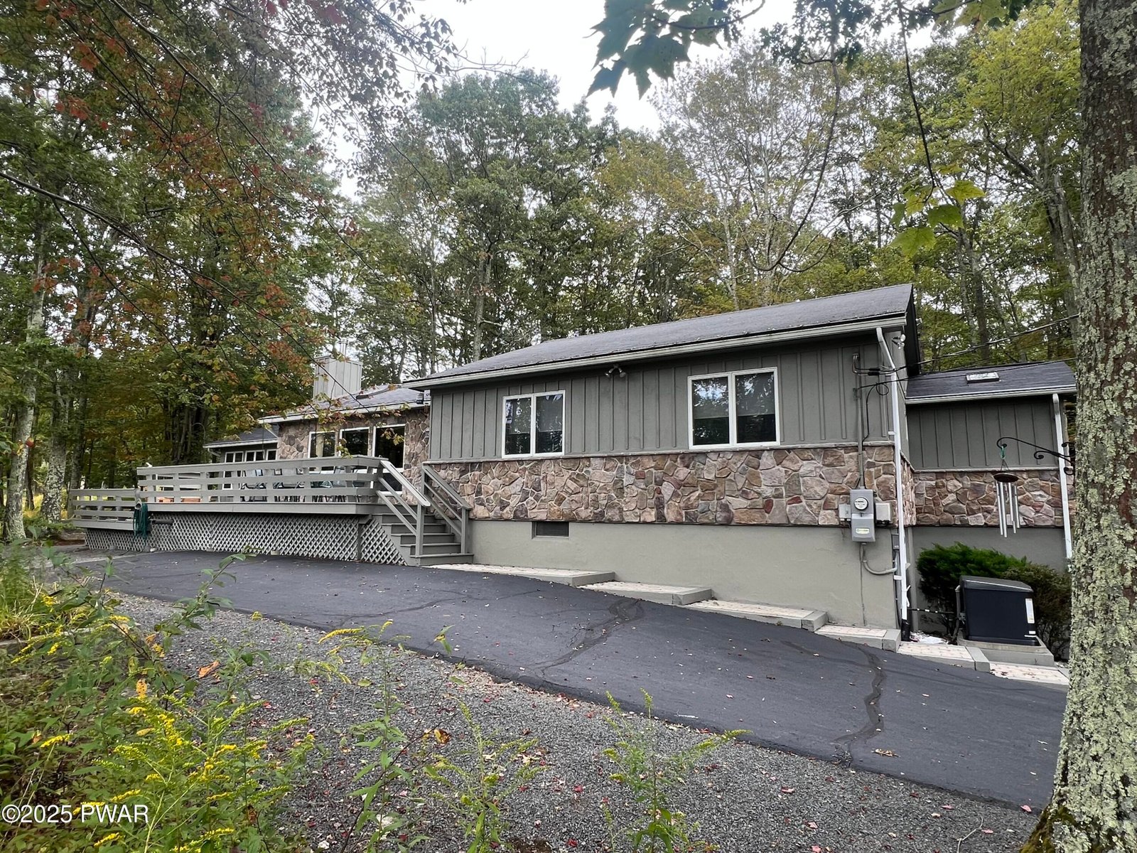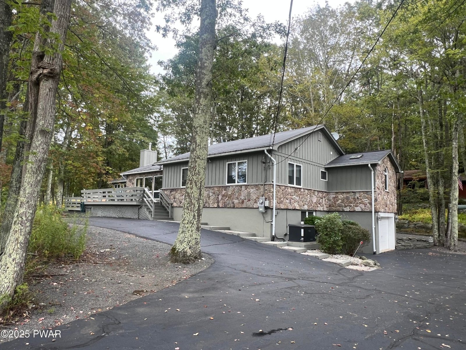 This home was purchased in 2002 by the seller who spent many hours and lots of money between renovations and upgrades making it the perfect year round or vacation residence. Make sure to read the documents and disclosures that lists everything that was done. The moment you enter the foyer and see the formal living room with the glistening hard wood floors you will feel warm and at home. The floor to ceiling bluestone fireplace with slate mantel and hearth surround a top of the line wood stove. Enter the French doors to an amazing glass year round sunroom filled with light and tongue and grove cathedral ceilings this will turn out to be the favorite entertaining space. The formal dining area leads into the very spacious eat in kitchen with plenty of counters and storage space. Down the hall you will find spacious bedrooms, laundry area and pantry. The large primary suite with an ensuite bath with whirlpool tub and steam shower is very inviting for sure. The lower level has a large bonus room, 1/2 bath and plenty of storage space as well as an oversized garage. Make time to see this home that has been so very well taken care of inside and out today.