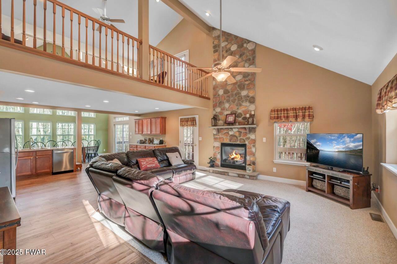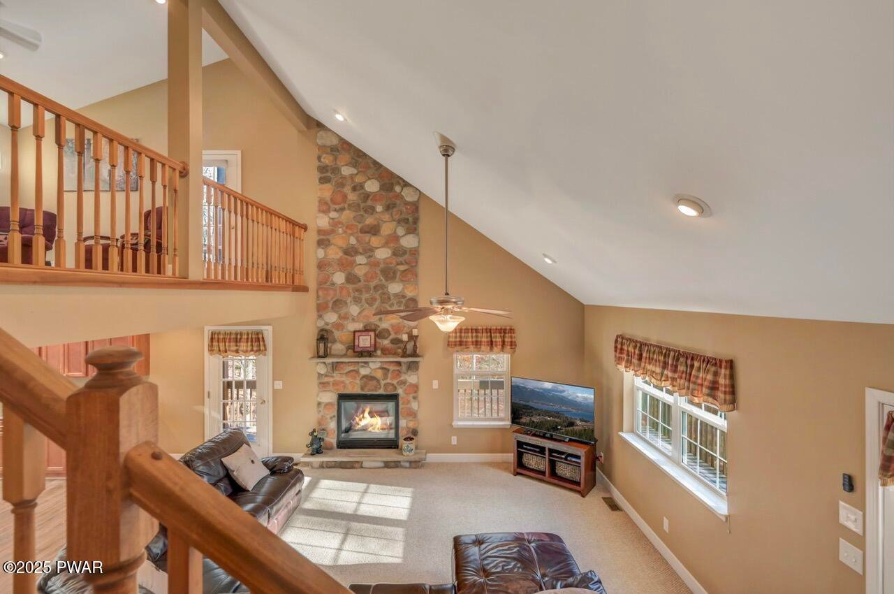 Well-maintained and privately located, this home is within walking distance to the lodge and pool area, situated on a quiet road that borders a greenbelt for added privacy.Lovingly cared for, this spacious home features 3-4 bedrooms, 3.5 bathrooms, and a one-car garage. The open floor plan includes a primary suite on the main level, a paved driveway, and expansive decking perfect for outdoor entertaining. Large windows fill the home with beautiful natural light.Upstairs, you'll find spacious bedrooms and a massive double overlook loft, providing additional living or recreation space for family and guests. The fully finished lower level offers even more room to relax or entertain.Enjoy evenings around the outdoor fire pit area or cozy up by the stone fireplace inside. Additional highlights include thoughtful finishes throughout, and the home is being sold mostly furnished, offering a wonderful turnkey opportunity.