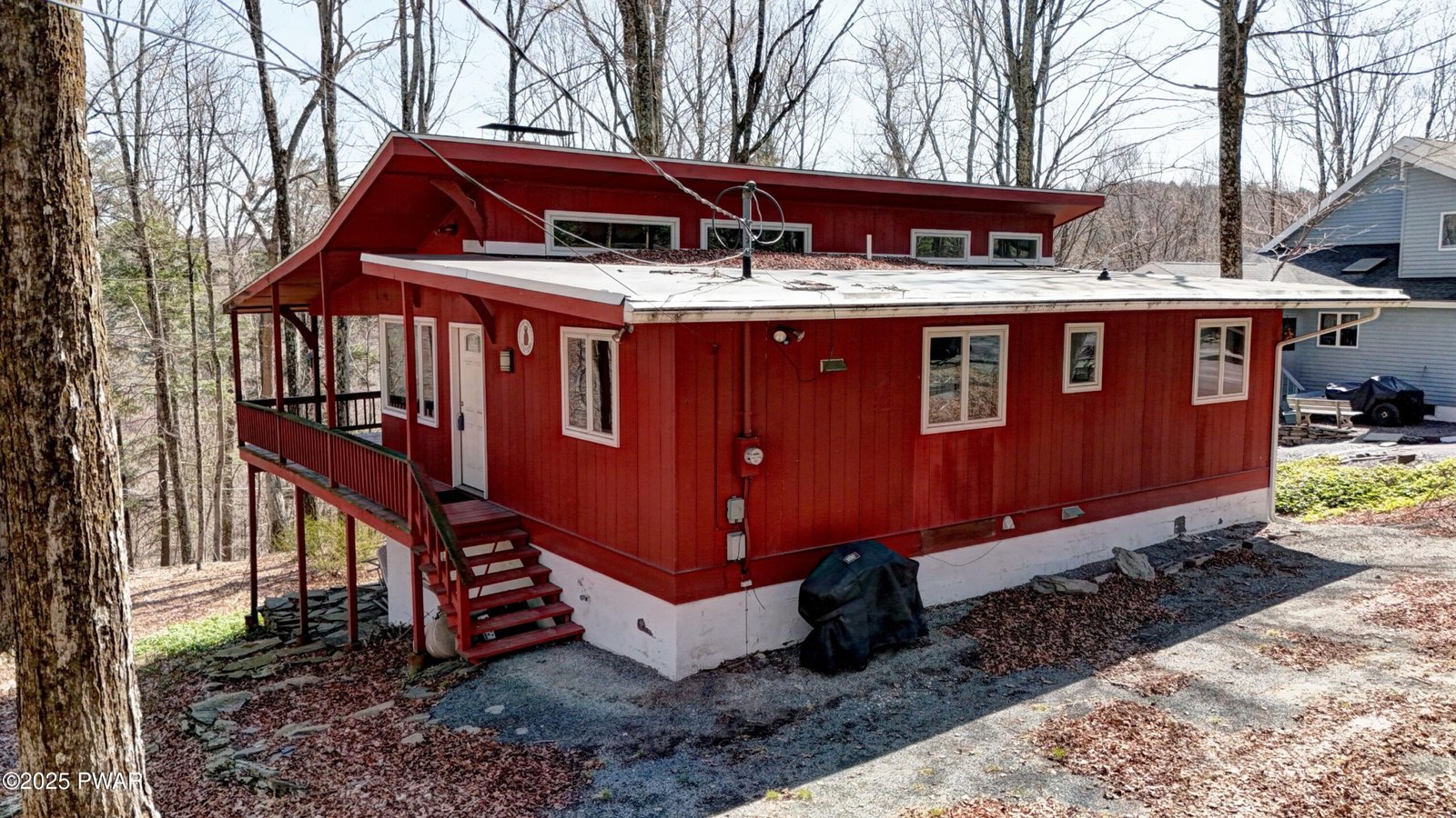 Tucked in the trees just a short walk from the shores of Lake Wallenpaupack, this updated 4-bedroom, 2-bathroom cabin blends cozy charm with modern comfort. Enjoy seasonal lake views from the covered deck--perfect for morning coffee or evening relaxation.Inside, the main level offers an inviting living room with a wood-burning fireplace, two spacious bedrooms, and a beautifully renovated kitchen and bathroom featuring modern finishes and thoughtful upgrades. The lower level adds extra living space with a family room, two additional bedrooms, laundry/utility area, and direct walk-out access to the outdoors--ideal for guests or extended stays.With lake rights to Lake Wallenpaupack, you'll enjoy easy access to boating, fishing, and year-round recreation. Whether you're looking for a full-time residence or a weekend escape, this cabin offers the perfect blend of location, comfort, and lake lifestyle.