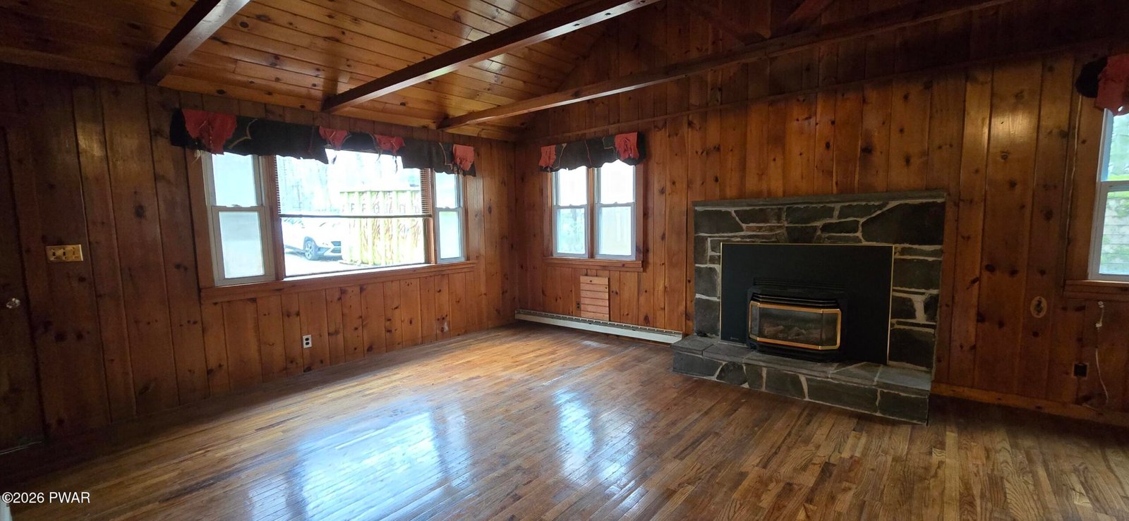 This quintessential 3 bedroom ''Lake Cabin'' has it all - cathedral ceiling with knotty pine and walls and ceiling, hardwood floors, loft overlooking the open living/dining area featuring a stone-faced fireplace, and screened front and back porches. Take a short walk to Twin Lakes, the community's private lake, where you can boat, swim, fish, sail, or kayak. There are no motorboats allowed on this very clean, clear, natural glacial lake, which is known to be one of Pike County's most beautiful lakes. This is a perfect home for summer living, a weekend getaway or a year-round residence.