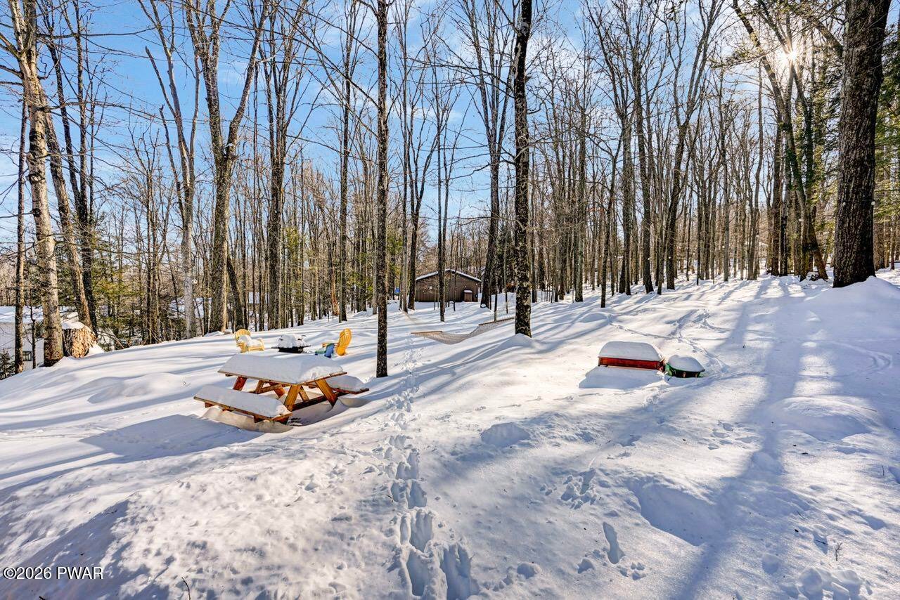 Arrive, exhale, and stay awhile. Tucked into a private, peaceful setting, this fully furnished modern retreat is designed to be felt the moment you step inside. Clean lines, thoughtful updates, and a natural indoor-outdoor flow create a space that feels both elevated and effortless. Whether you're gathering with friends, unwinding after a long day, or simply enjoying the quiet, this home offers a lifestyle that's calm, comfortable, and intentionally designed -- a rare find in Wallenpaupack Lake Estates. The main level features beautiful hardwood floors, vaulted ceilings, and an open floor plan that flows naturally through the living, kitchen, and gathering areas -- perfect for entertaining friends or simply relaxing after a day at the lake.Natural light fills the home, creating warm, comfortable spaces throughout. The finished lower level expands the living area with a large recreation room, a beautifully updated bathroom, and a third bedroom, ideal for guests or extended stays. A fourth versatile room offers flexibility for a home office, den, or additional sleeping space.Step outside and enjoy the added privacy of community property bordering one side of the home, providing a quiet, wooded buffer and a true sense of seclusion rarely found in amenity communities.Located in Wallenpaupack Lake Estates, a four-season, amenity-filled community in the Northern Poconos, owners enjoy lake rights to Lake Wallenpaupack, a 5,700-acre powerboating lake, along with pools, beaches, clubhouse, fitness center, tennis, and year-round recreation.Move-in ready and being sold fully furnished -- just bring your suitcase and start enjoying lake life. A rare opportunity for modern comfort, privacy, and turnkey convenience in one of the area's most desirable communities.