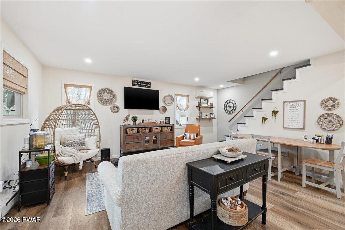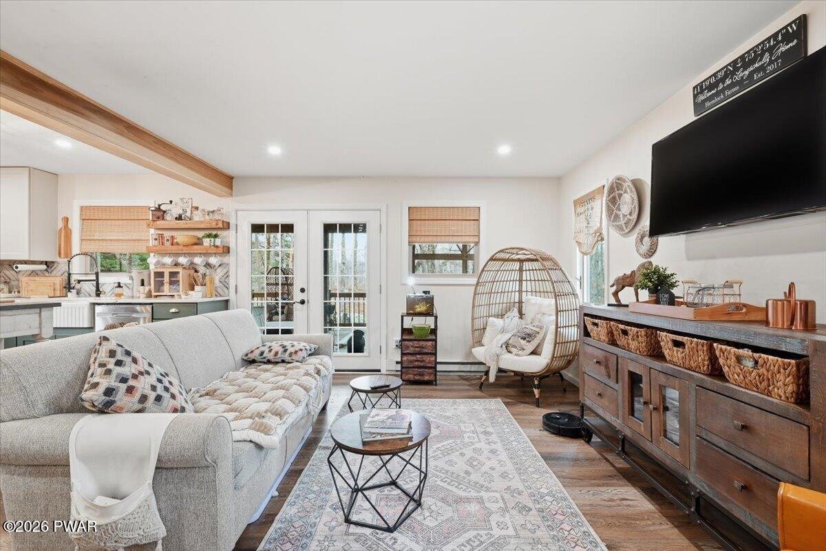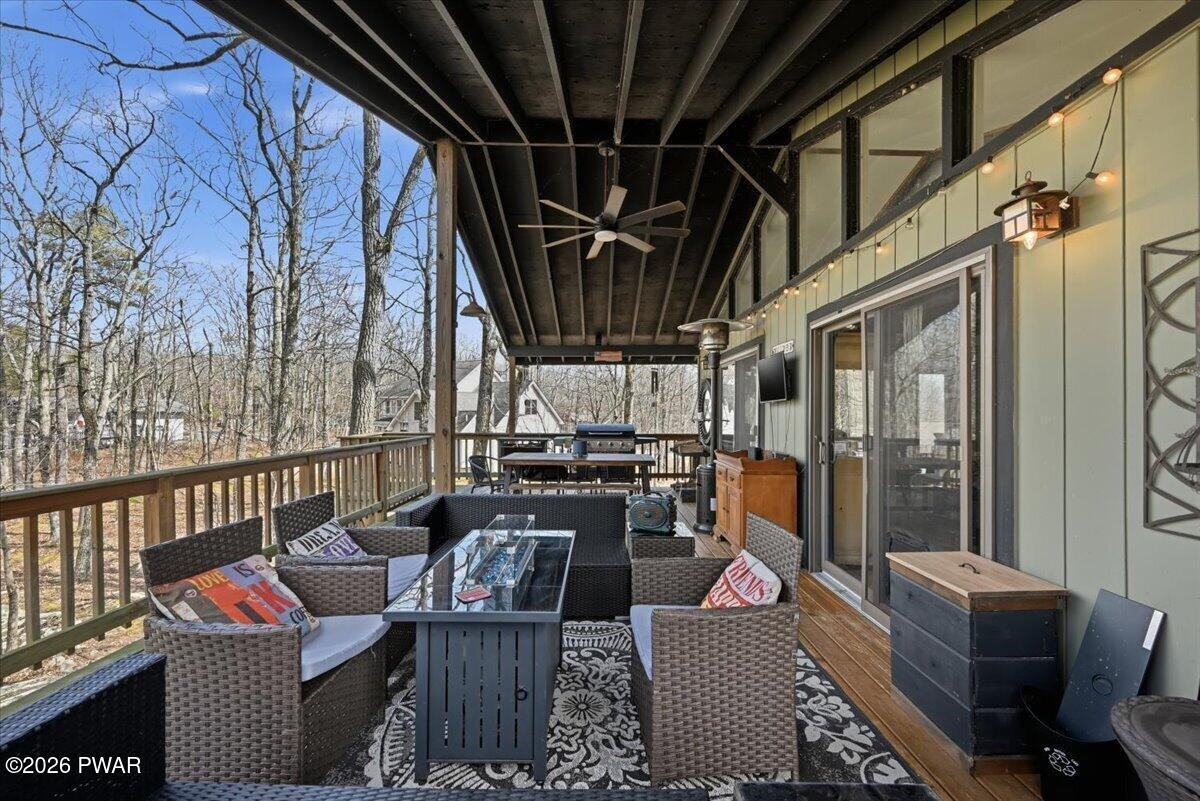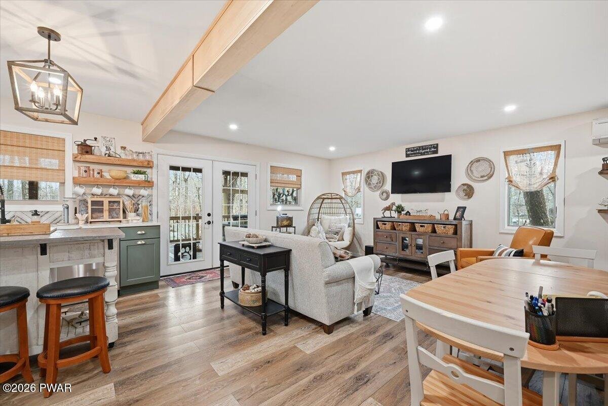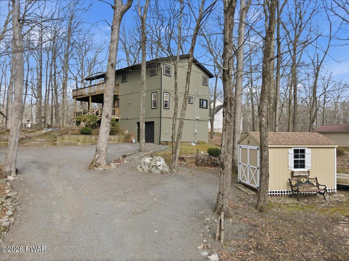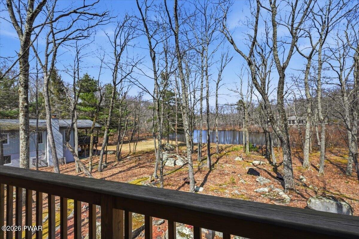 Rare waterfront home offering multigenerational living opportunities in Hemlock Farms! This beautifully updated property blends flexibility, comfort, and an unbeatable setting with two kitchens--including one newly renovated with new appliances, center island, and pot-filler--plus updated bathrooms throughout. The home features a spacious living room, a warm family room with a wood-burning fireplace, and a relaxing primary suite with walk-in closet, walk-in shower, and soaking tub! With two additional bedrooms and 1.5 more bathrooms, there is room for guests or family. Outside, enjoy two stunning wraparound covered decks overlooking the pond, perfect for entertaining or peaceful mornings surrounded by nature. A gentle stroll leads right to the waterfront for campfires, stargazing, kayaking, or fishing. With a 1-car garage, storage shed for all your toys, and many recent updates throughout, this is a standout opportunity inside the amenity-rich gated community of Hemlock Farms, offering pools, lakes, courts, a fitness center, library, and more. A true waterfront retreat that's hard to find--and even harder to leave!