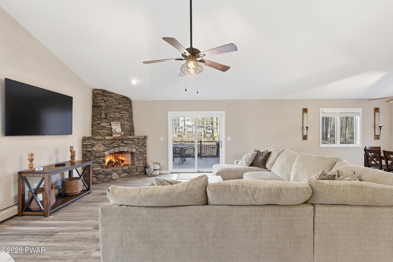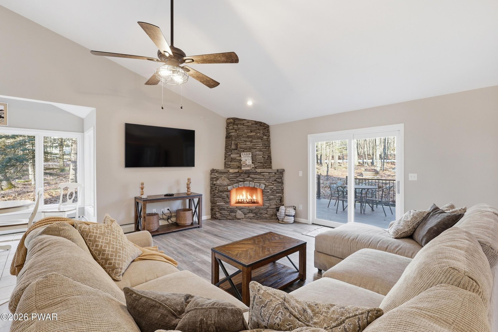Welcome to 1197 Dewberry Drive in Hawley, PA, a stunning fully furnished retreat in Hidden Lake Estates set on over 3 private acres 1 mile from Lake Wallenpaupack and some of the Poconos' most sought after year round attractions. This beautifully updated home is filled with natural light and features soaring vaulted ceilings, inviting living spaces, and a layout that perfectly balances comfort and style. The spacious primary bedroom offers apeaceful escape, complete with a gorgeous ensuite featuring a soaking tub, stand up shower, and two walk in closets, while the finished lower level familyroom provides additional space for entertaining, hosting guests, or enjoying cozy nights in. Step outside to enjoy the sprawling Trex deck, picture perfectwooded surroundings, and the privacy of a desirable corner lot. Located close to ski resorts, lakes, outdoor recreation, restaurants, and shopping in Hawley.Whether you are looking for a full time residence, vacation home, or personal getaway in the heart of the Poconos, 1197 Dewberry Drive is a must see.