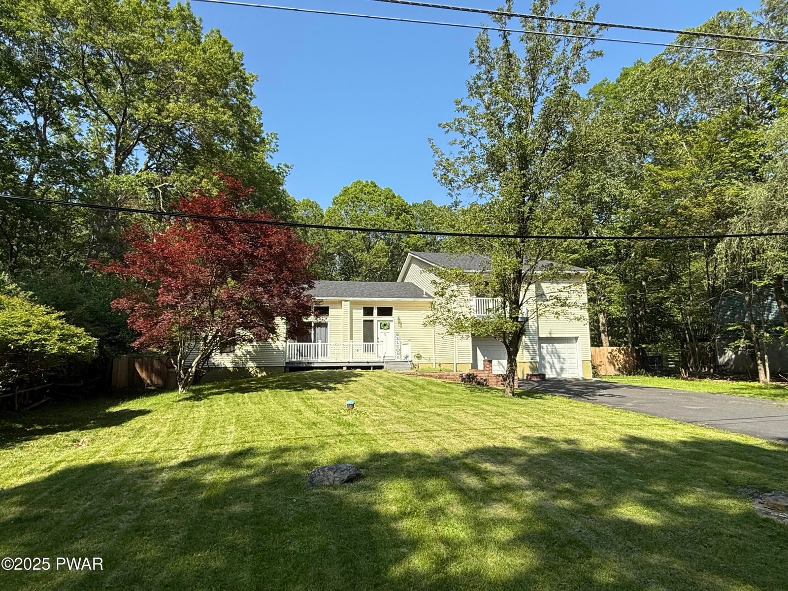 Over 4300 square feet, Located in the private community of Pocono Wild Haven and bordering 470 acres of pristine private land, this beautifully updated split-level home offers comfort, style, and a serene retreat. This property is within feet of over 2,500 acres of State Game Land. The home features 5-bedrooms and includes two primary suites, each with a private bath. The living room features striking wood-beamed ceilings, a cozy stone-faced fireplace, and polished hardwood flooring, creating an inviting space to relax. The kitchen was updated in 2023 with newer cabinets, granite countertops, and ceramic tile flooring. Open to the dining area, the kitchen flows seamlessly to the outdoors, where glass doors lead to one of several decks perfect for entertaining. The first primary suite is handicap-accessible, complete with an en-suite bathroom featuring a walk-in shower and private access to a deck. The second primary suite includes sliding glass doors to its own deck, an en-suite bathroom with dual vanities, a soaking tub, a separate shower, and a private toilet area, plus a spacious walk-in closet. Three additional bedrooms are generously sized and share a full bathroom. The lower-level family room offers ample space for entertaining, enhanced by newer laminate flooring for a comfortable and inviting feel. This home has been thoughtfully updated, including a new roof, a updated modern kitchen, a new Propane Navien boiler -controls hot water and heat. Green leaf water filtration system - whole house, outside of home has been resealed and new gutters were installed. Conveniently located near I-80, this home provides an easy commute to New Jersey and New York City while offering the tranquility of a private, natural setting. Experience the perfect blend of modern upgrades and serene living--schedule your visit today!