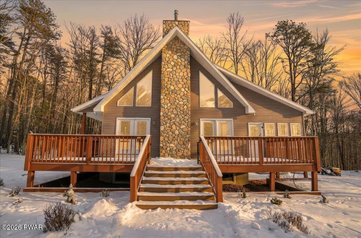 Warm, inviting, and move-in ready, this chalet-style home offers the perfect blend of mountain charm and modern comfort. The open-concept main level features hardwood floors, a striking floor-to-ceiling stone fireplace, vaulted ceilings, and abundant natural light. The updated kitchen includes granite countertops, stainless steel appliances, and a breakfast bar ideal for entertaining.The finished lower level provides flexible space for a family room, gym, or game area, while a dedicated laundry room adds everyday convenience. Outside, enjoy expansive decks overlooking a peaceful wooded setting--perfect for relaxing or hosting gatherings year-round. Located in the amenity-rich Masthope Community with access to skiing, pools and other outdoor fun, this home is ideal as a full-time residence, weekend escape, or investment property. With 4 bedrooms and 3 bathroom, there is plenty of space for all your needs.