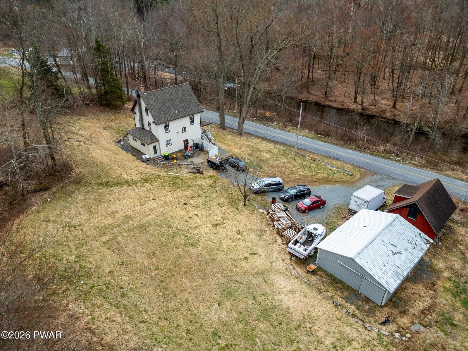 Welcome to this charming 4-bedroom, two-story home nestled on 4.53 semi-private acres, perfect for those seeking space and comfort. This property features numerous updates and an open floor plan, highlighted by beautiful hardwood floors throughout.Enjoy peaceful moments on the expansive front porch, listening to the gentle sounds of the creek across the street, or unwind beside the delightful small hobby pond. Recent upgrades include a brand new well pump, a new hot water heater, and a rebuilt furnace, ensuring peace of mind for years to come.The inviting dining room is equipped with a new wood stove, and the freshly painted bedrooms provide a cozy retreat. The kitchen is a chef's dream, featuring modern stainless-steel appliances. Additionally, an extra spacious detached garage offers ample storage and workspace.Don't miss the opportunity to make this lovely property your new home! Schedule a showing today!*Seller is a licensed real estate agent.