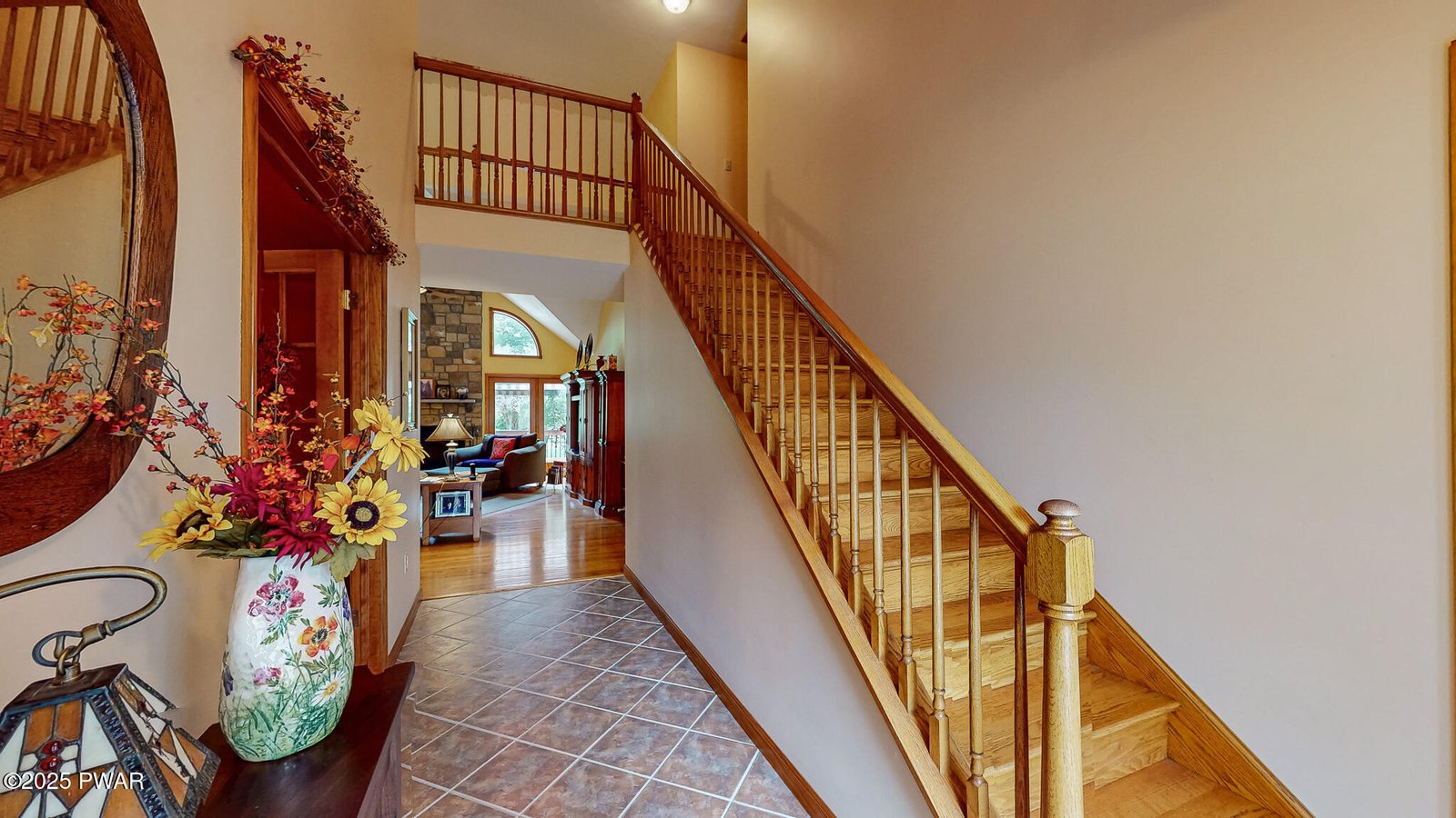 Welcome to this stunning 4-bedroom, 3.5-bathroom home situated on 2.42 acres in a highly sought-after location. Perfectly blending charm, comfort, and functionality, this property offers both privacy and convenience, just a mile from the heart of Milford, PA.Inside, you'll find a first-floor primary suite with ensuite bathroom, additional first floor bedroom with ensuite, and two additional upstairs bedrooms sharing a full bath. The main living area boasts vaulted ceilings and a wood-burning stone fireplace, creating a warm and inviting atmosphere. The spacious kitchen features granite countertops, stainless steel appliances, and plenty of cabinetry, flowing seamlessly into the open living space. A separate dining room and an additional sitting room with a wood-burning stove provide multiple gathering spaces.Convenience meets function with a first-floor laundry room, a large unfinished basement with tall ceilings, and an attic area for extra storage. The two-car garage offers additional practicality.Step outside to enjoy the covered front porch, back deck, and patio overlooking the pool and landscaped pond with a waterfall feature. The fenced-in backyard is perfect for pets, offering a safe and secure area.This home truly has it all--spacious living, thoughtful design, and a serene outdoor retreat--all within minutes of dining, shopping, and cultural attractions in historic Milford, PA.