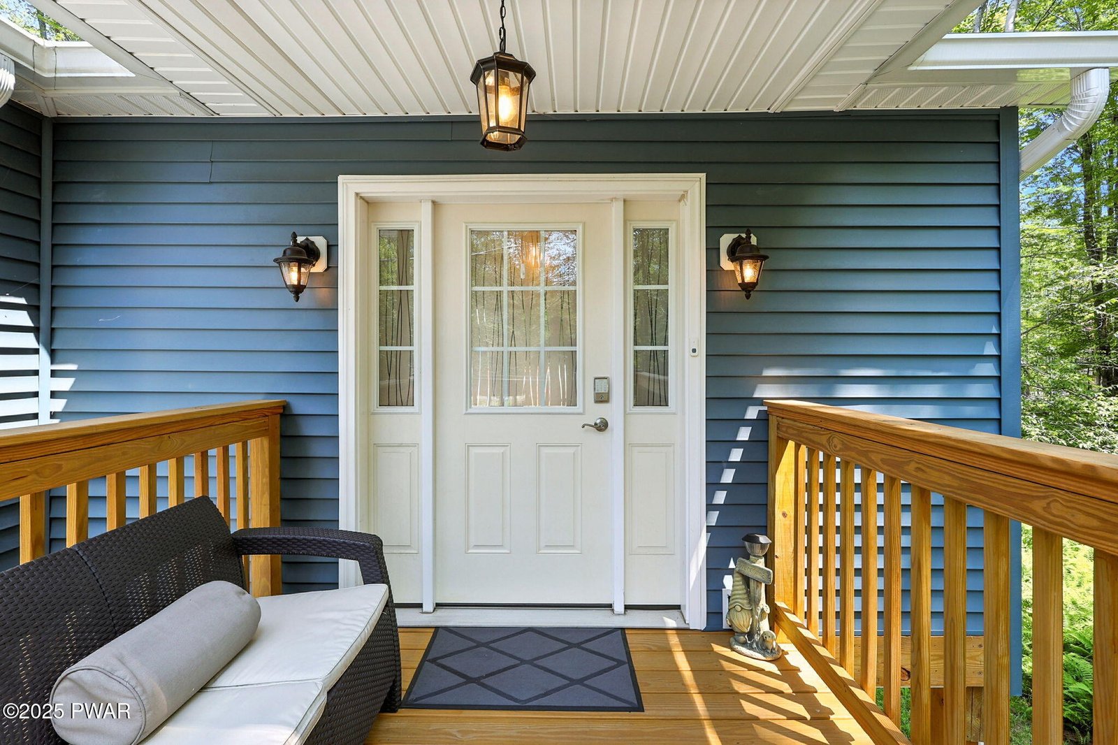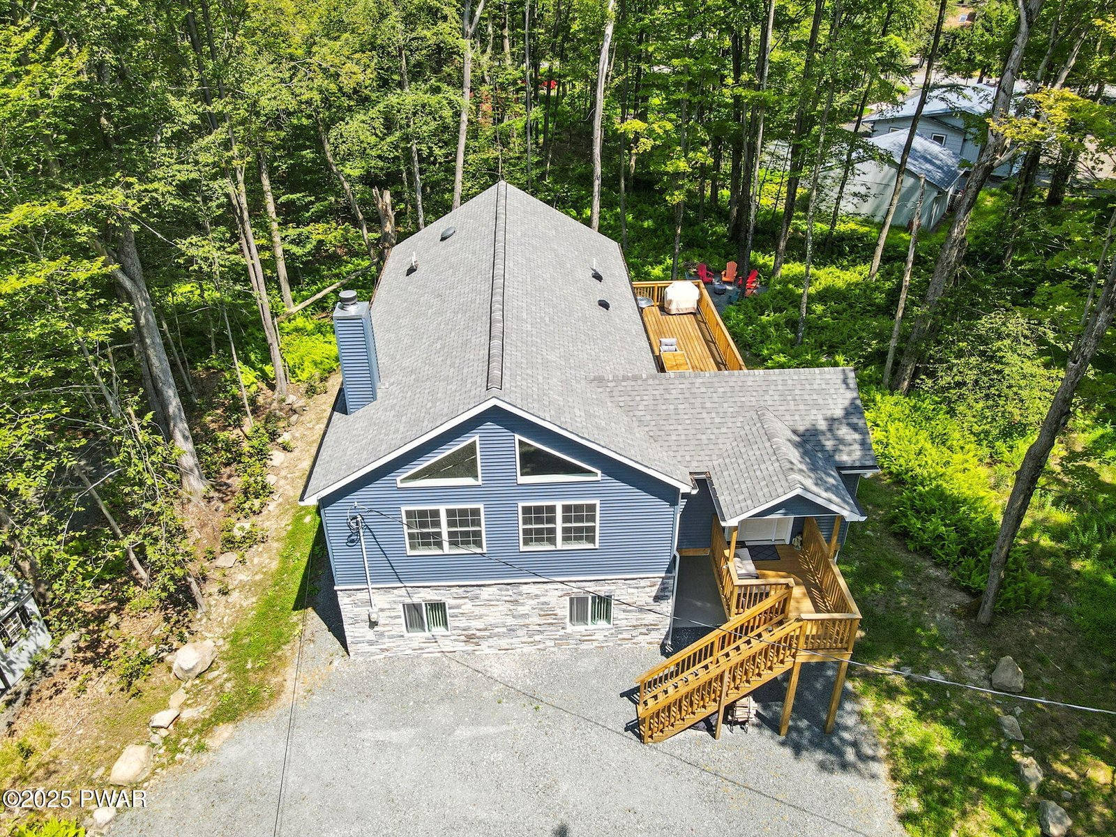 TURN KEY, FULLY FURNISHED -- INCLUDING THE GAME ROOM!Better than new construction, this stunning home was built in 2023 and is loaded with upgrades and thoughtful custom finishes throughout. Perfectly positioned on highly desirable Oak Circle in the ''Golden Triangle'' of The Hideout--one of the Northern Poconos' most vibrant, amenity-rich communities--this home delivers both style and comfort in a prime location.Offering 4 bedrooms and 3 full bathrooms, the home includes a beautiful primary suite with an en suite bath, plus a versatile lower-level den/office that can easily serve as a 5th bedroom. The main living area welcomes you with a bright, open great room featuring soaring vaulted ceilings, a true wood-burning fireplace with a knotty wood accent wall, and seamless flow into the dining area and show-stopping kitchen. The kitchen is outfitted with a farmhouse sink, custom tiled backsplash, large island with knotty wood detail, and luxury vinyl flooring that continues throughout the home. All bathrooms are enhanced with sleek, modern lighted mirrors.Designed for indoor-outdoor living, the property boasts a covered front porch, covered lower-level patio, expansive rear deck, and a cozy firepit area--perfect for entertaining or relaxing year-round. The lower level is built for fun and flexibility, featuring a spacious recreation/game room with custom walls, a large laundry room, a fourth bedroom, and a multi-use den/playroom.Additional features include a low-maintenance vinyl and stone exterior, screened gutter system, circular gravel driveway, central A/C on the upper level, and a mini-split system on the lower level. This is a rare opportunity to own a truly move-in-ready, fully furnished, like-new home in one of The Hideout's most sought-after locations.