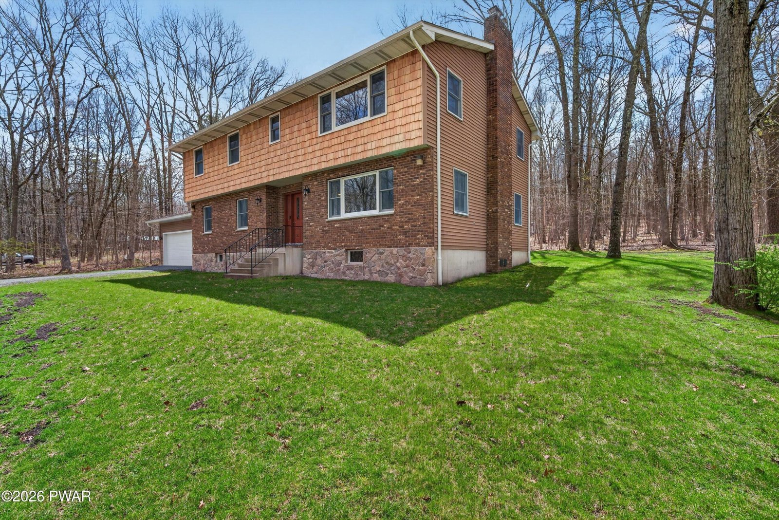 Welcome to this lovingly cared-for and meticulously maintained three-bedroom, 2.5-bath colonial home, nestled on a combined generous 4.9 acres in the serene community of Meadow View Acres, Shohola, Pennsylvania. This property is a true haven, backing up to thousands of acres of state game lands, offering unparalleled privacy and natural beauty. As you step into the spacious foyer, you are greeted by an inviting atmosphere that sets the tone for warmth and comfort throughout the home. The expansive living room features large picture windows that frame stunning views of the surrounding nature, creating a perfect backdrop for relaxation and gatherings. The first floor includes a charming kitchen with a cozy eating area, ideal for casual meals, as well as a formal dining room for hosting special occasions. Additionally, there is a convenient half bath, a dedicated laundry area, and an office space, perfect for remote work or study. Upstairs, the huge primary bedroom boasts a beautifulensuite bathroom and a spacious walk-in closet, ensuring comfort and convenience. The two additional bedrooms are generously sized, with windows that invite natural light and showcase the picturesque scenery. This property also features a two-car garage and an unfinished basement with direct access to the garage, providing ample storage and potential for future expansion. Built in 1987, this home reflects a thoughtful design emphasizing generous living spaces and a connection to the wooded Pocono landscape. The original owners have maintained its charm over the years. A central chimney serves all three levels, adorned with brick accents and stone hearth bases in both the living room and primary bedroom, offering options for future wood stove or fireplace installations. More than just a home, this property is a retreat into nature, perfectly situated for those seeking tranquility in a quiet community. Don't miss your chance to own this slice of paradise!