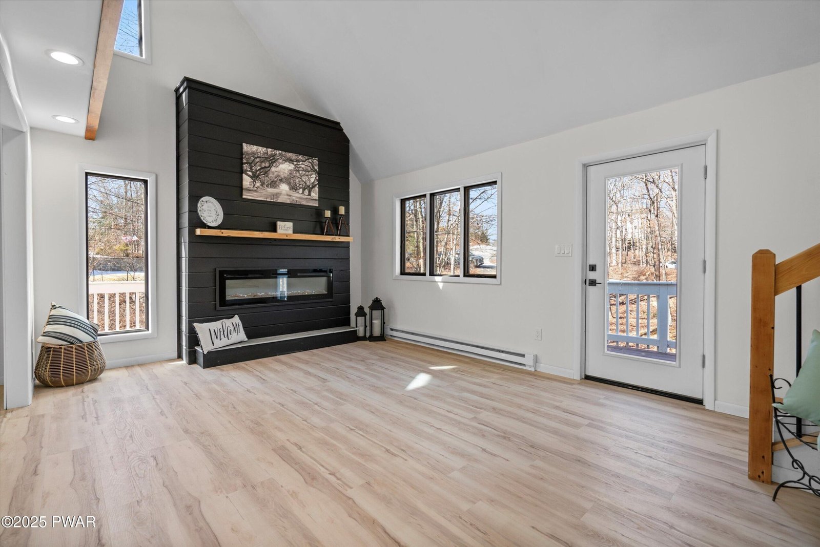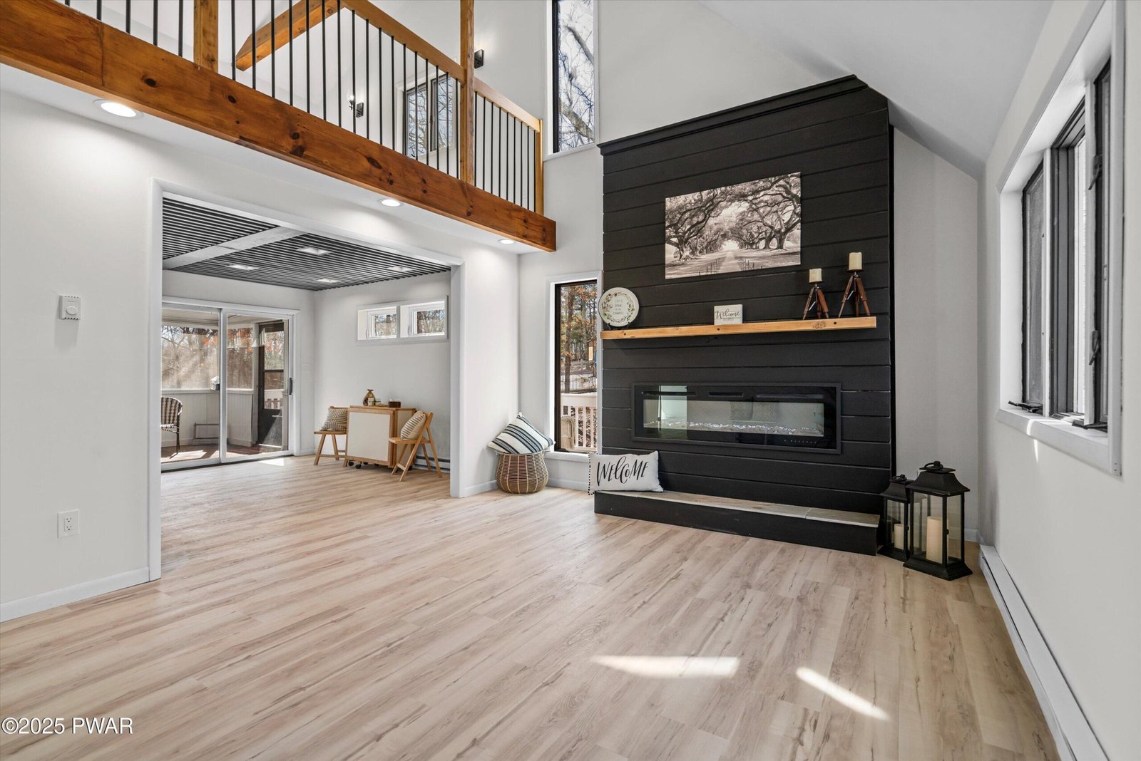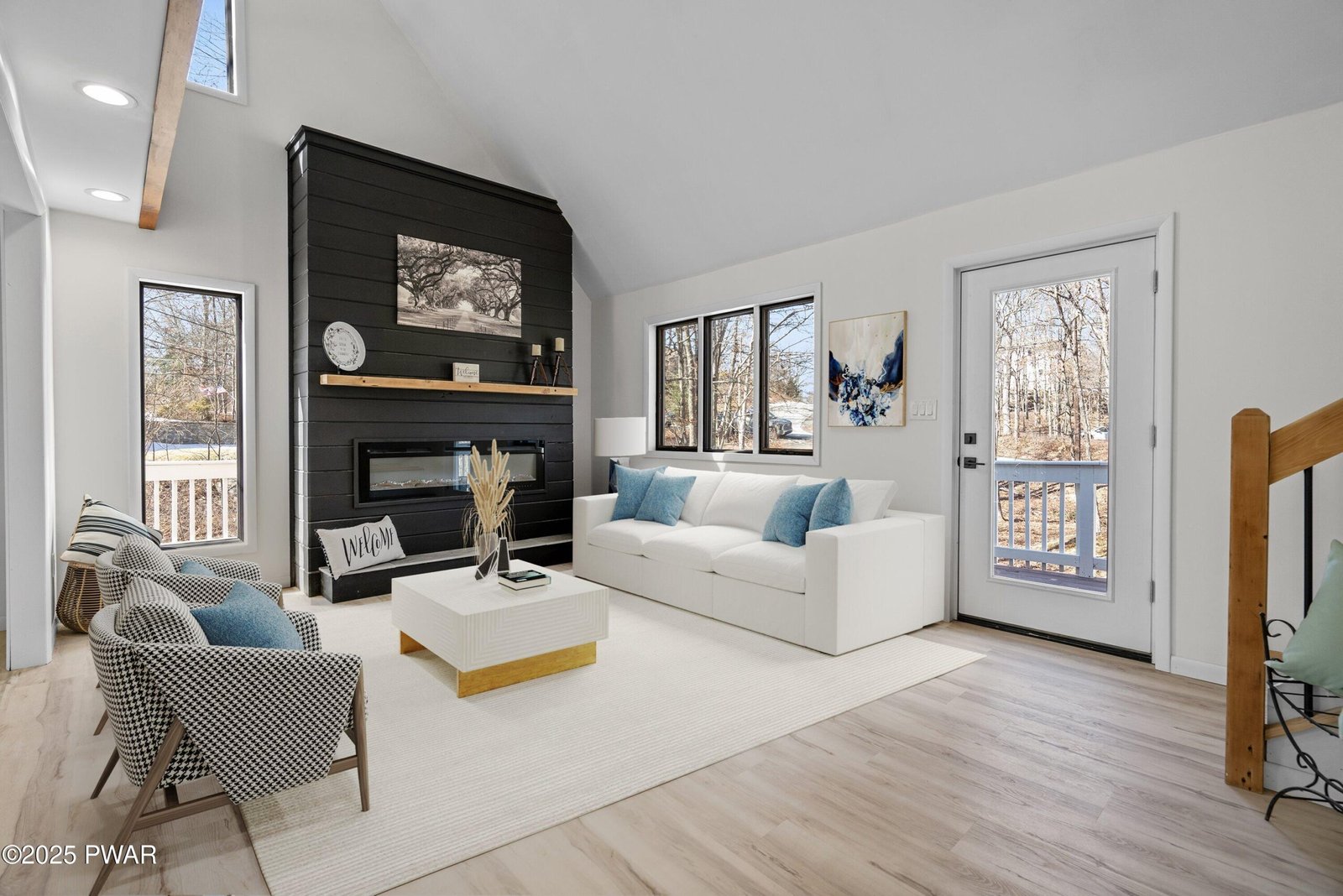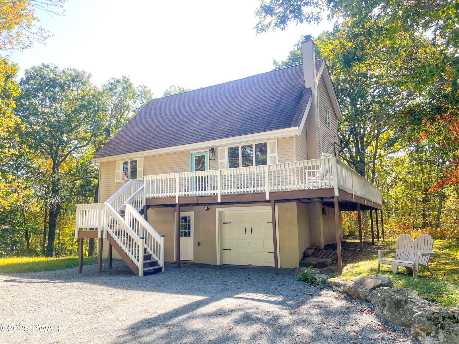 Welcome to the good life in Hemlock Farms! This completely remodeled home is a true gem, designed for both comfort and privacy. Paired with an open-concept main living area, find a beautiful, modern fireplace that creates a cozy centerpiece. Following the custom-crafted kitchen ceiling that leads directly to a peaceful screened porch--perfect for morning coffee or evening relaxation. * Home is virtually staged for visualization* The main floor features the primary bedroom, complete with a personal balcony, and closet so spacious it could easily double as an office or nursery. A convenient half-bath on this level is perfect for guests. Upstairs, a spacious loft provides an ideal flex space, along with a guest bedroom and full bath. The lower level is an entertainer's dream, featuring a charming coffee bar, a family room with a propane stove, a third bedroom, and a third full bath. With an attached garage, this home truly has it all.