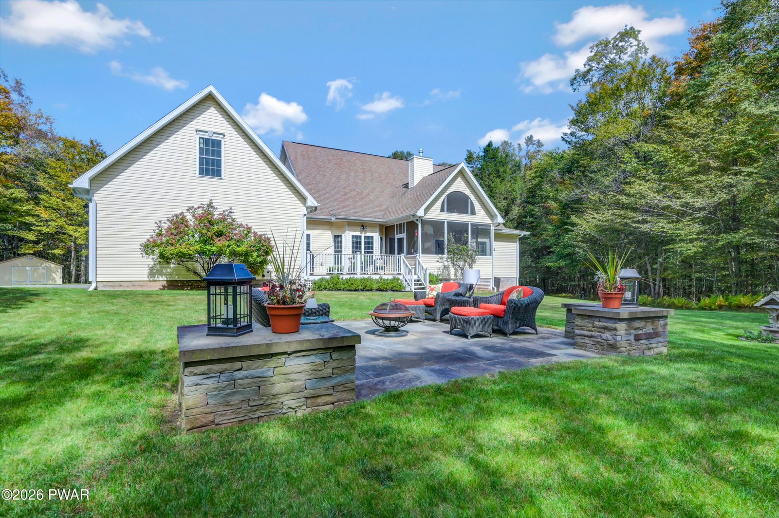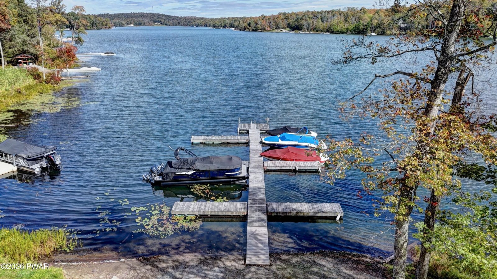 Set behind the privacy of a gated community called The Woods at Duck Harbor, and set on 5.37 wooded acres, this stately 4-bedroom, 2.5 bath colonial commands attention from the moment you turn onto the paved drive. A natural stream traces the edge of the property, a living boundary that marks this land as something genuinely apart.Inside, the main level opens with a well-considered floor plan anchored by a high-end kitchen with breakfast nook, a large living room with floor-to-ceiling stone faced fireplace and vaulted ceilings, a formal dining room, and a primary suite offering a clawfoot tub, walk-in shower, and true sanctuary. A whole-house generator ensures the comforts of home are never interrupted, and a 2-car attached garage keeps your vehicles protected from elements and warm in the winter. The lower level delivers an expansive family room, space for a home gym, generous entertaining storage, and a large unfinished space for future expansion or plenty of storage. Two guest bedrooms and a full bath occupy the upper level.Outside, a screened-in porch, fire pit patio, and front and rear decks extend the living space into the landscape. And beyond the tree line: a private boat slip on Duck Harbor Pond, a motorboat-friendly lake where this kind of access is rare and genuinely irreplaceable.Gated seclusion. Five private acres. A stream-bordered setting. An included boat slip that is entirely your own.Some properties offer a place to live. This one offers a way of living!