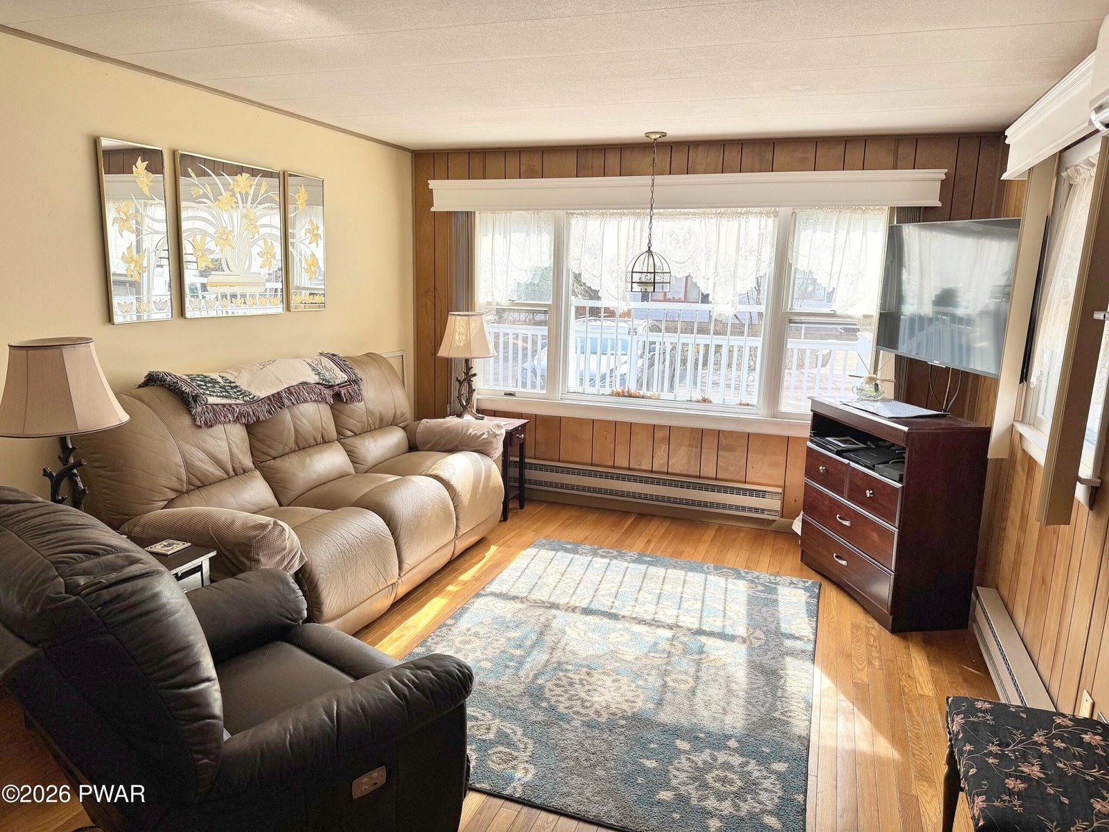 Boat Slip Included! Sunny Point Ranch at Lake Wallenpaupack. --where lake living meets comfort, convenience, and charm. This well-maintained 3-bedroom, 1-bath style cottage offers easy one-level living with a welcoming eat-in country kitchen and a bright, comfortable living room featuring a split heating and air conditioning unit for year-round enjoyment. The home is thoughtfully designed to maximize space and functionality plus has a New roof. Step outside and experience what truly sets this property apart. A spacious 28' x 12' composite Trex sun deck creates the perfect setting for entertaining, relaxing, or enjoying the peaceful surroundings. The newly paved driveway adds to plenty of parking for the toys and a 12'x22' garage with built in work bench, new garage door with opener and outside attached storage completes the design. The large backyard, has a generous picnic table, invites gatherings, games, outdoor dining and camp fire s'mores. There is a 14' x 12' barn-style shed with electric--ideal for hobbies or extra storage and the home's 5-foot-high crawl space with built-in workbenches, slop sink and multiple shelving for projects and storage needs are fulfilled. Whether you're seeking a weekend getaway, seasonal retreat, or year-round home, this property offers the ideal blend of lake lifestyle and practical amenities--all just a short golf cart ride to the water. Start making your Lake Wallenpaupack memories today.